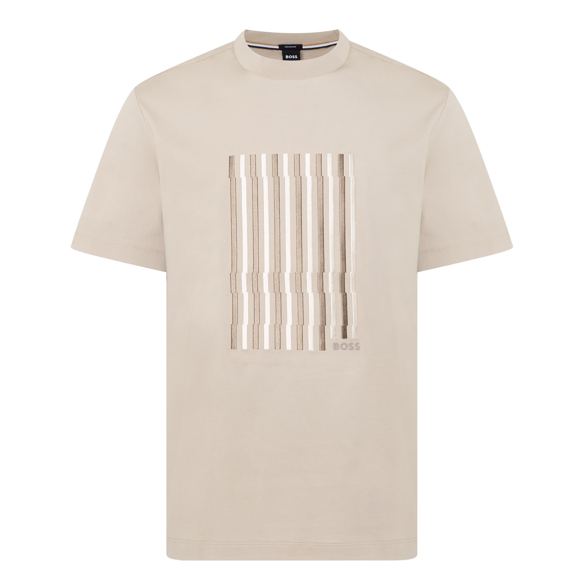 - Round neckline, short sleeves, straight hemline, graphic print at chest, logo details, branded tab at side seam