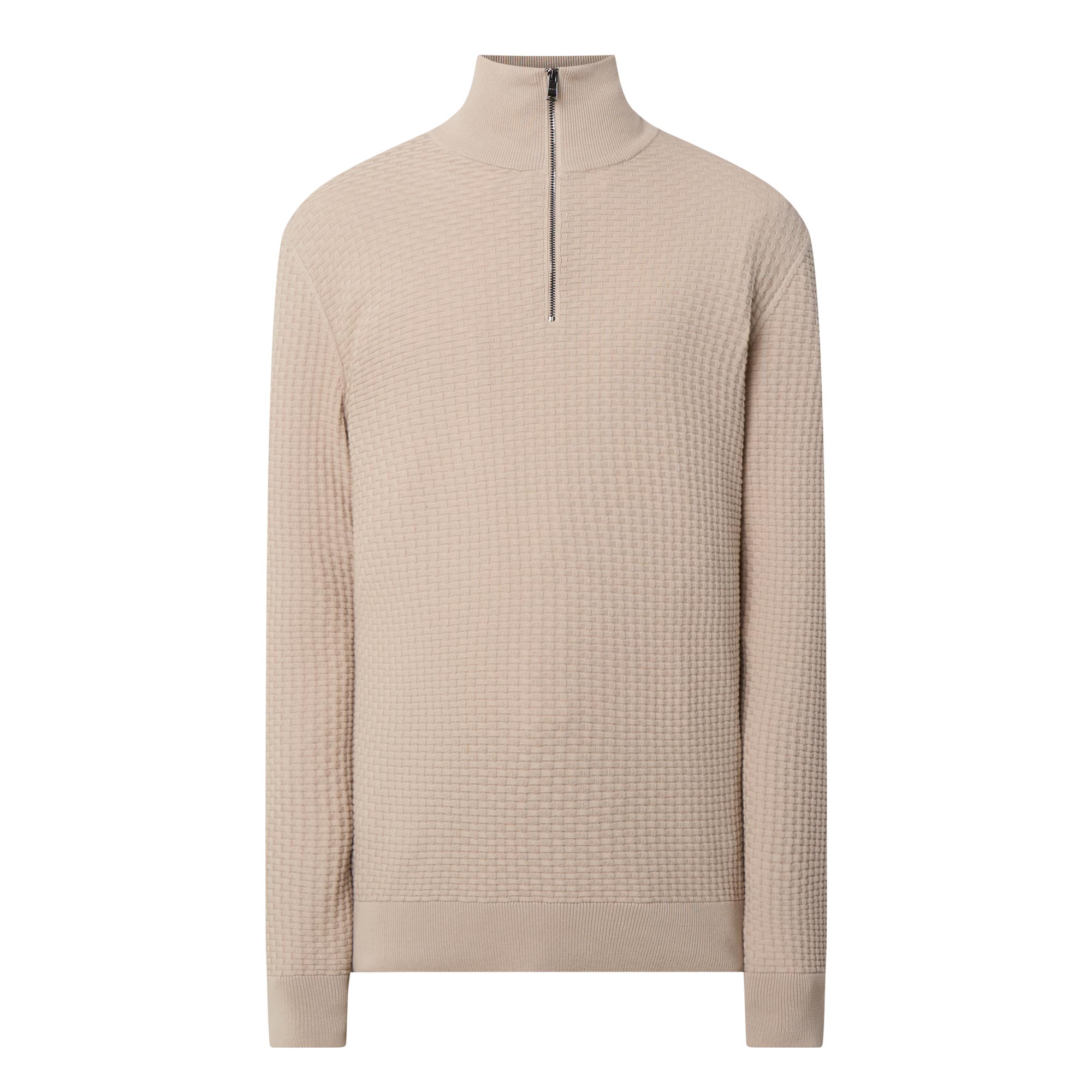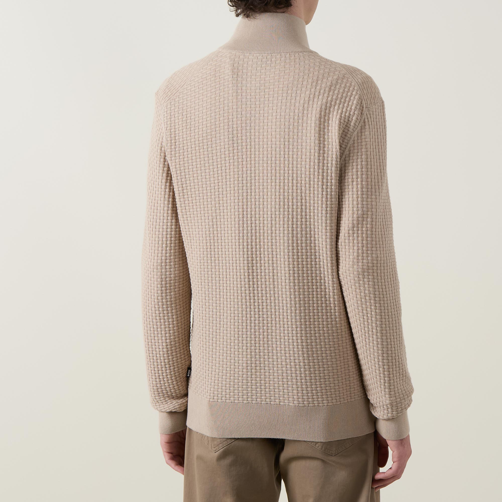 - High neckline, half-zip fastening, long sleeves, dropped shoulders, ribbed trims, textured finish, logo details