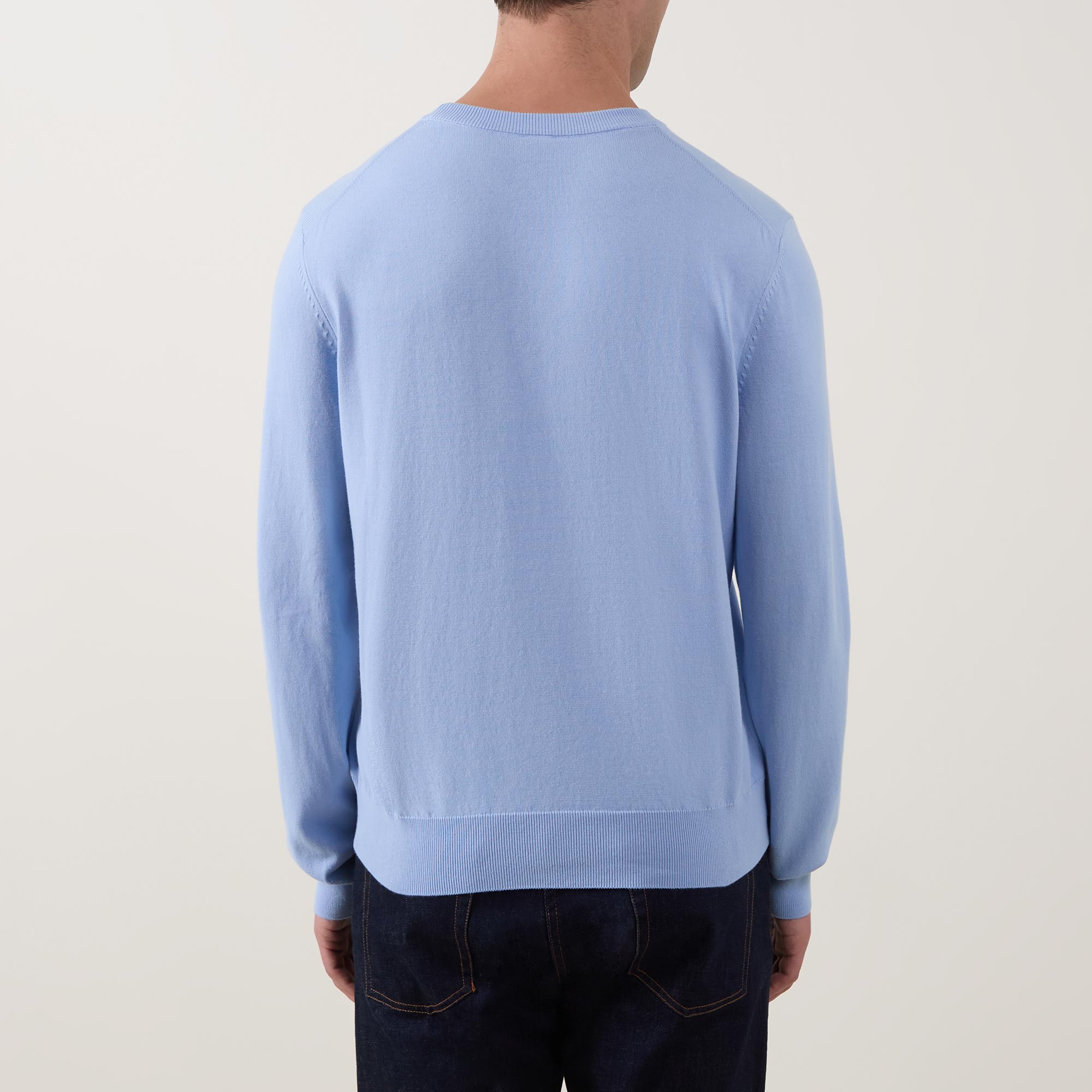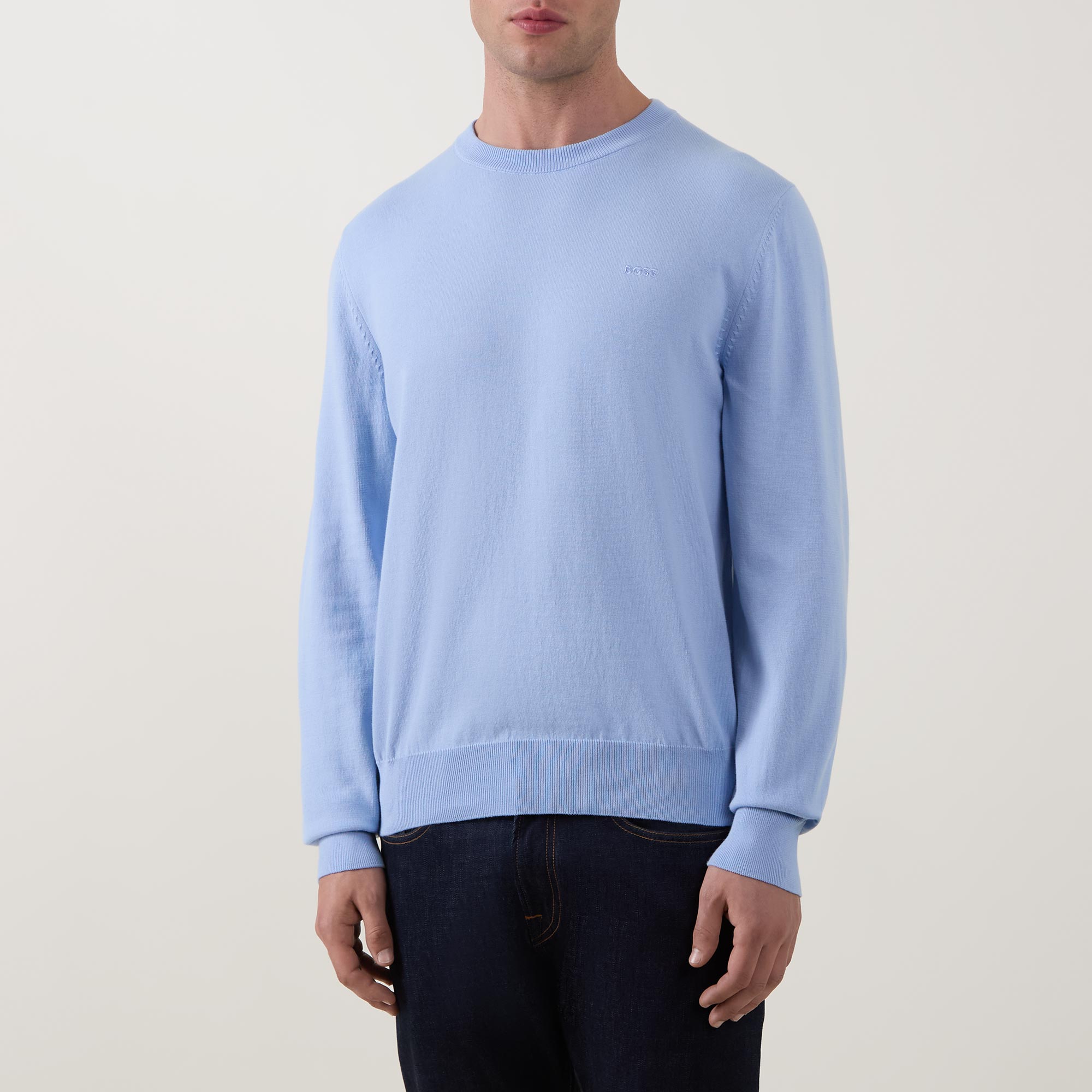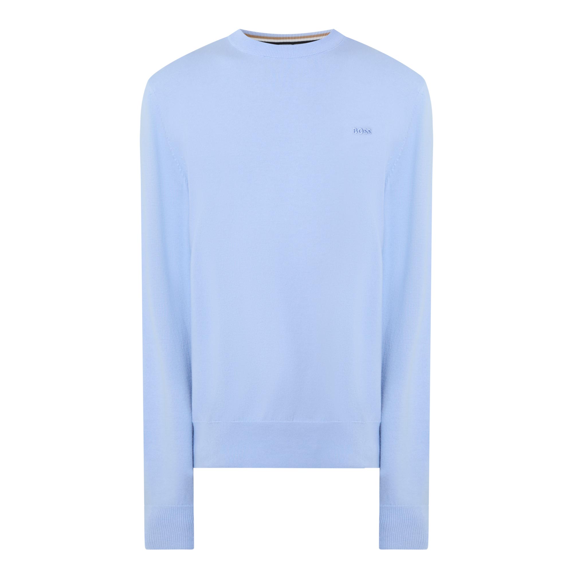 - Round neckline, long sleeves, ribbed trims, logo detail, fine knit structure