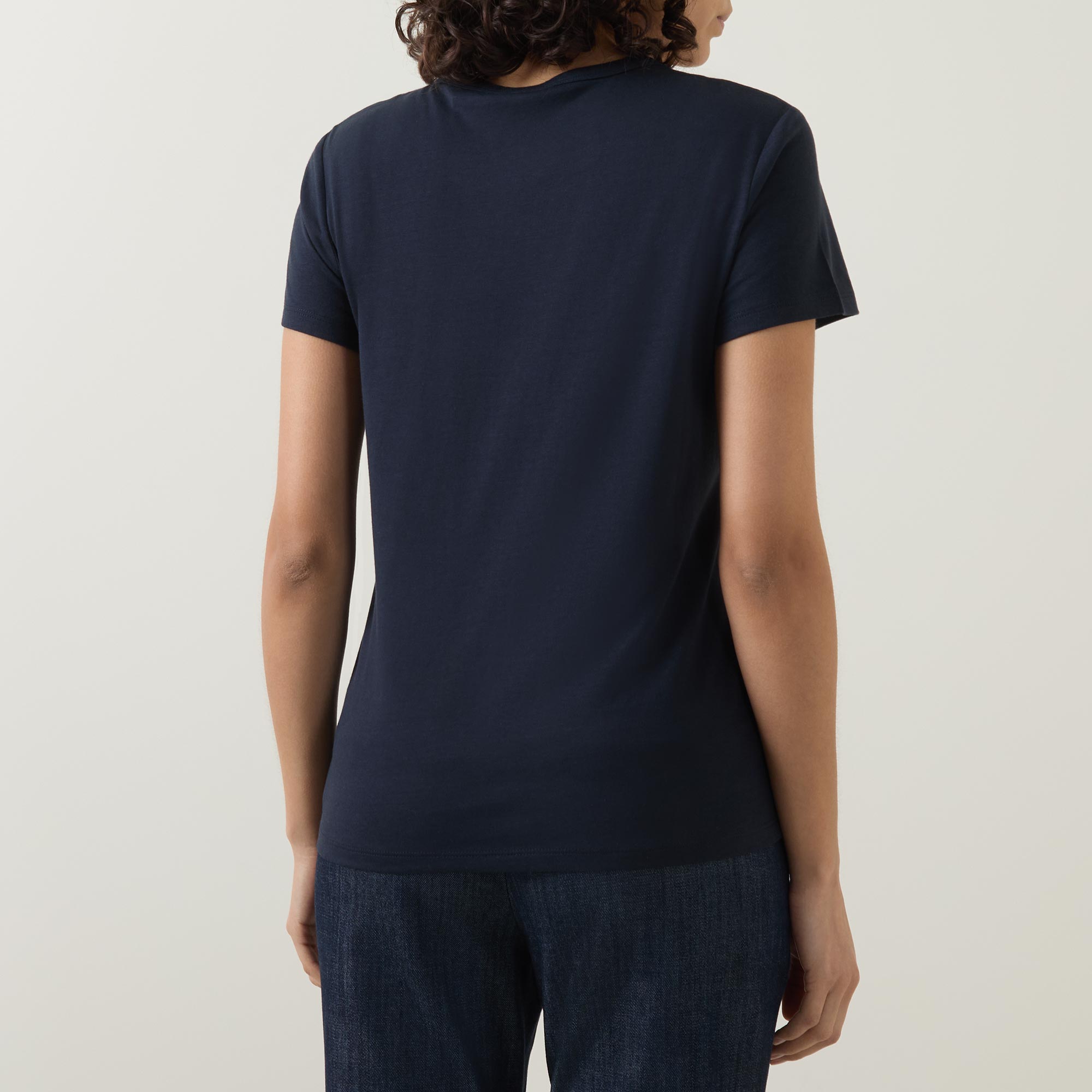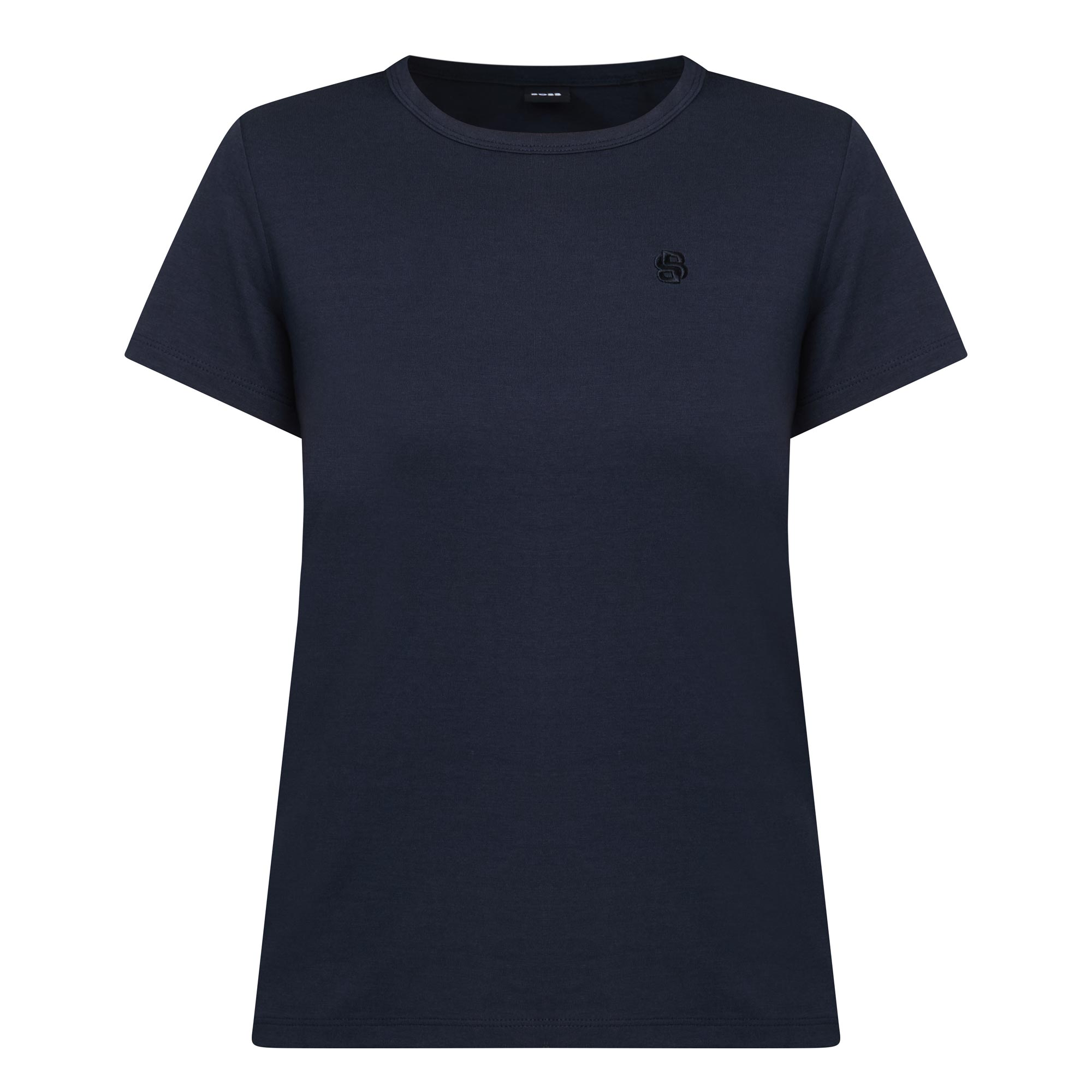 - Shirt sleeves, round neckline, logo detail on chest, tonal stitching, straight hemline, smooth fabric