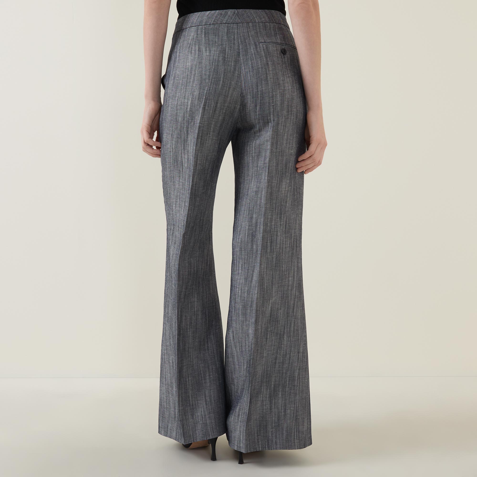 - Concealed zip-fly and hook-and-bar fastening, two side in-seam pockets, one rear welt pocket with button fastening, pressed creases, flared-cut leg, soft melange denim finish