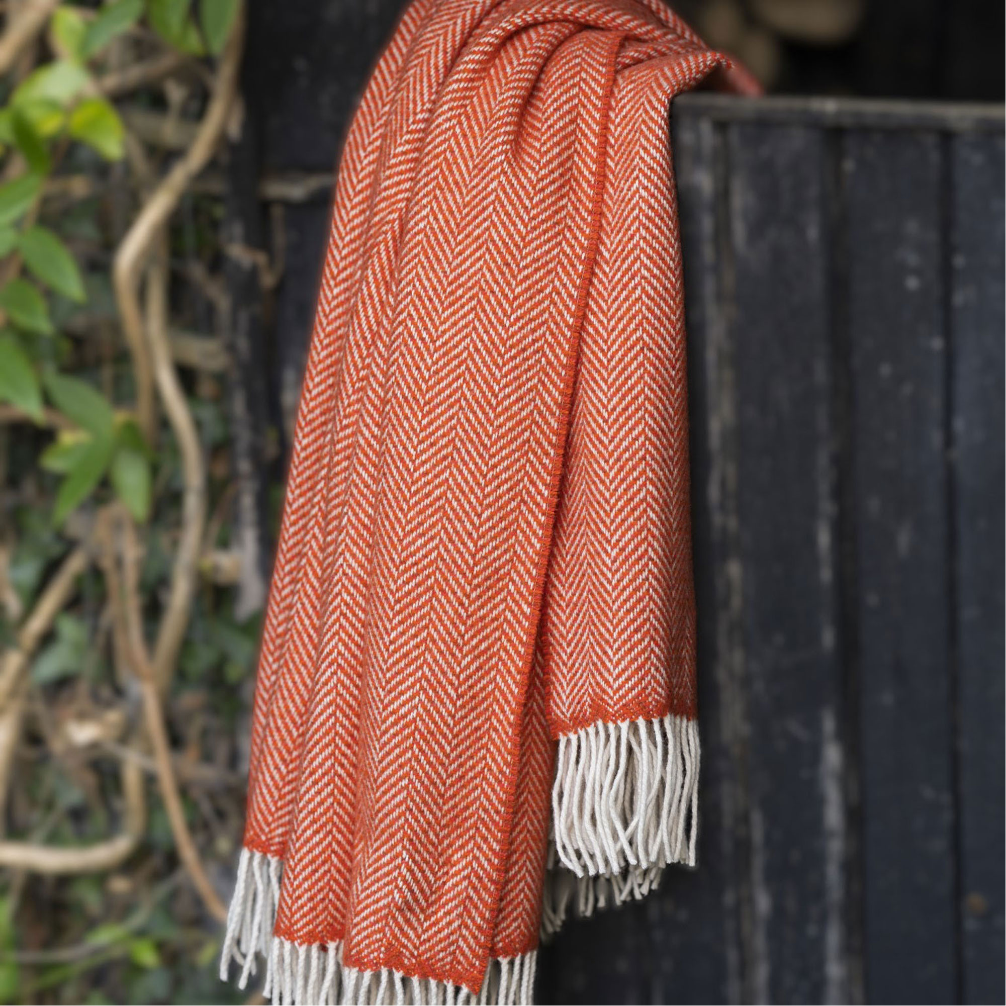 JOHN HANLY Wool Herringbone Throw Orange