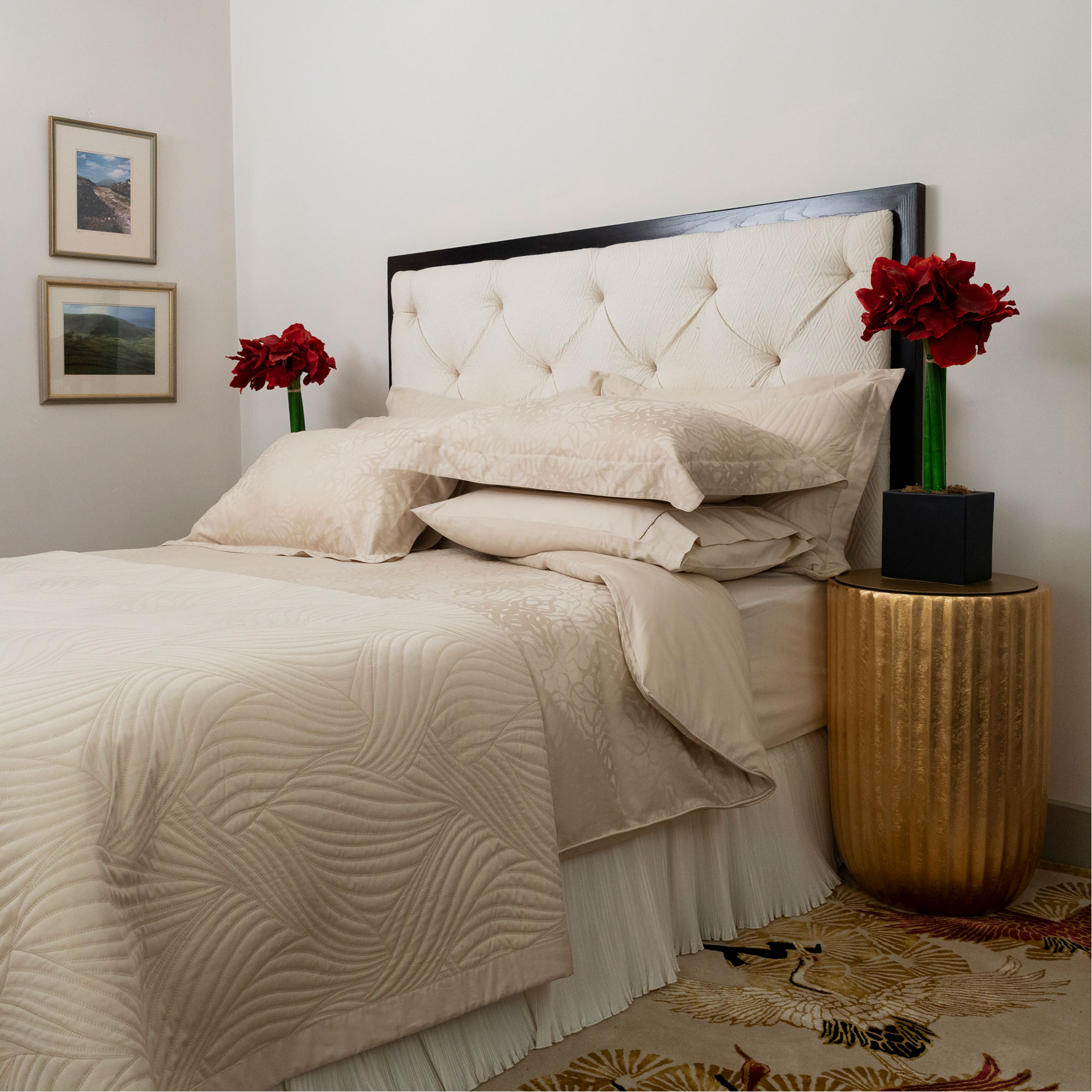 The Valeron brand is synonymous with fine tailoring and impeccable craftsmanship. Made from finest cotton sateen, the Valois light bedspread features a beautiful swirling embroidery, edged with a cotton sateen border. The bedspreads are sized to reach just off the floor and to cover the whole bed. Alternatively the bedspread can be folded at the end of bed for a luxurious layered style.