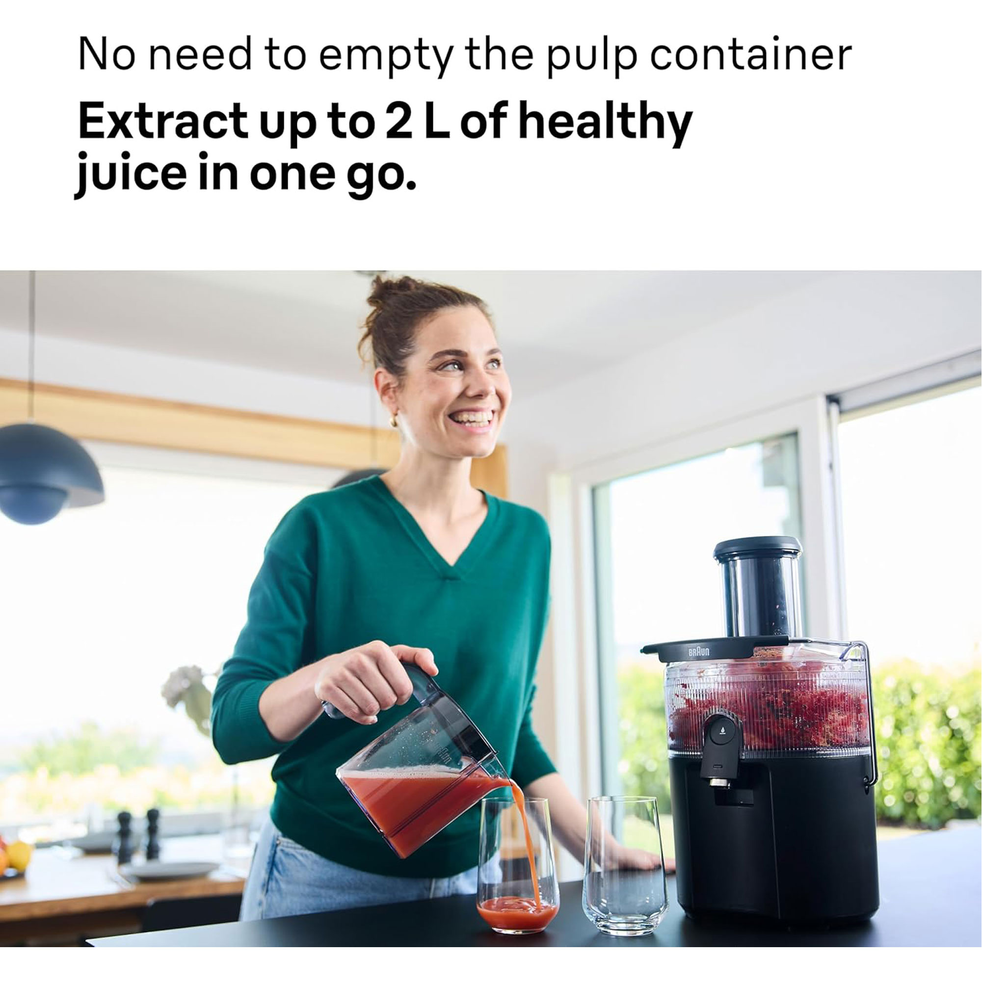 Turn your mornings into a burst of freshness with MultiJuice 5. Enjoy continuous juicing to finish faster - extract up to 2L of healthy juice without stopping to empty the pulp container.