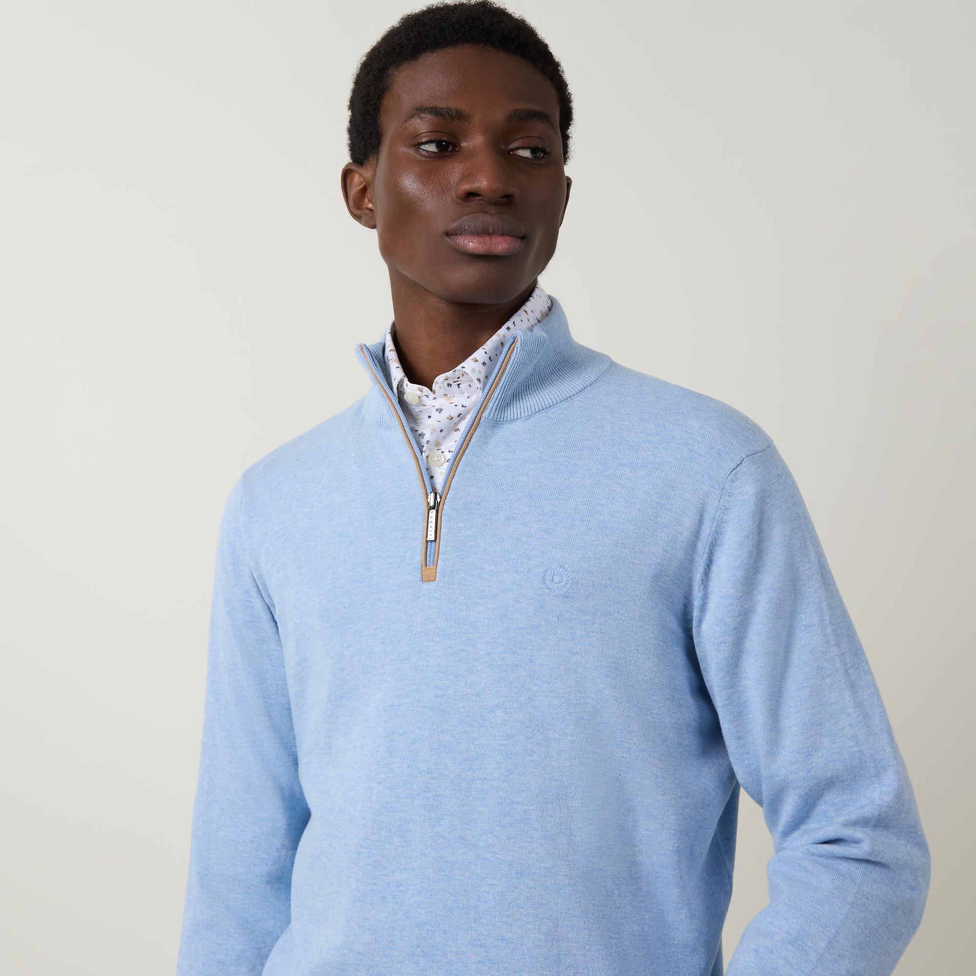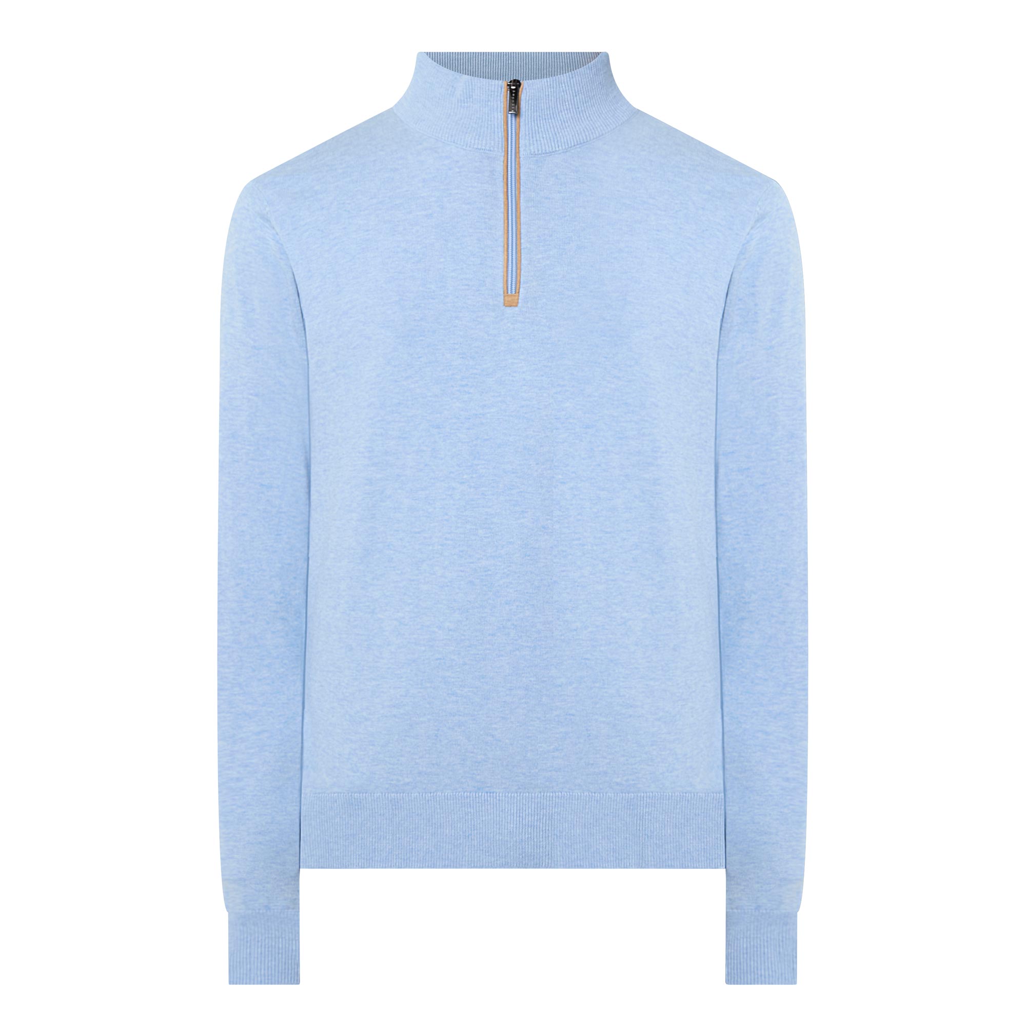 • Funnel neckline, long sleeves, half zip-fastening placket, tonal logo detail, ribbed trims, fine-knit finish