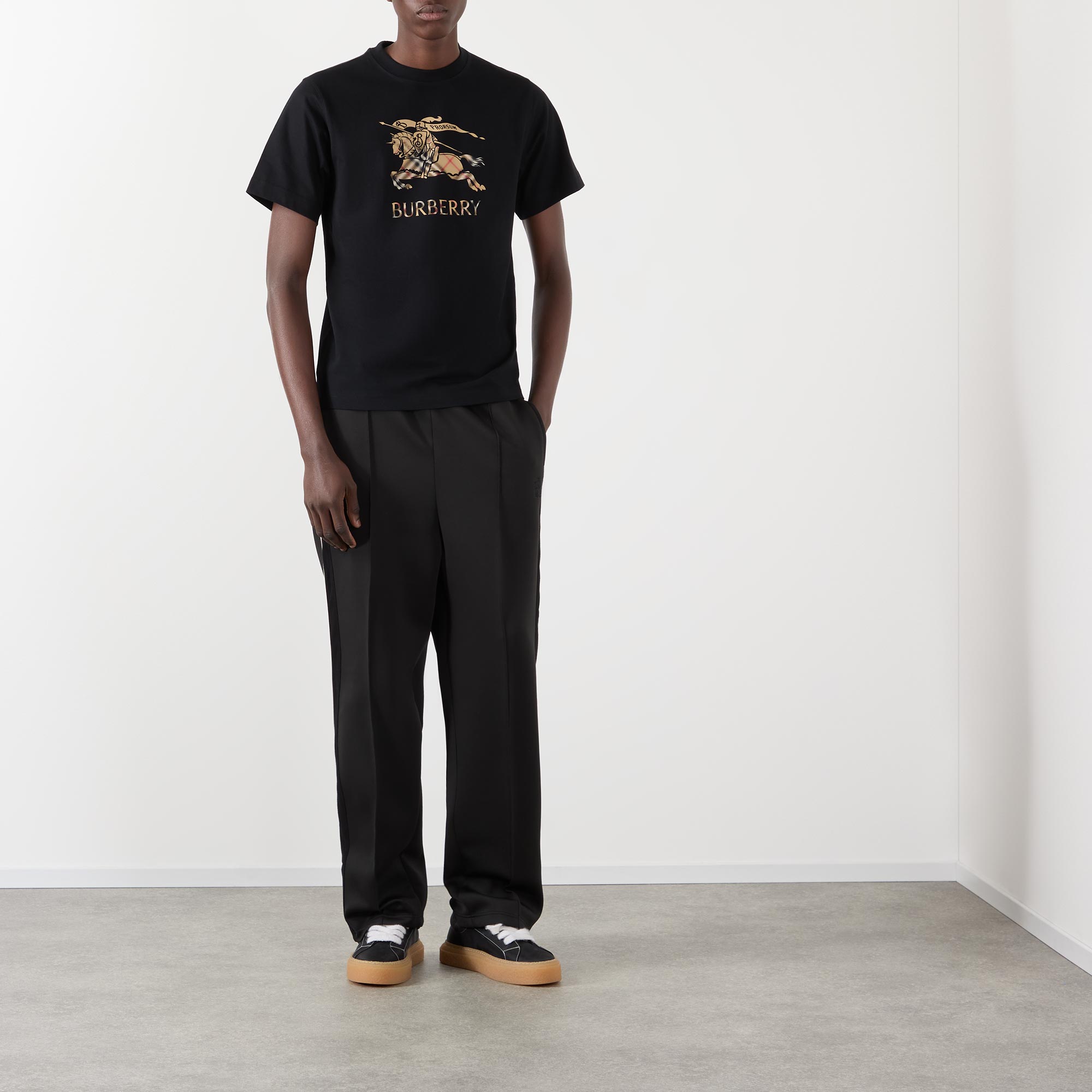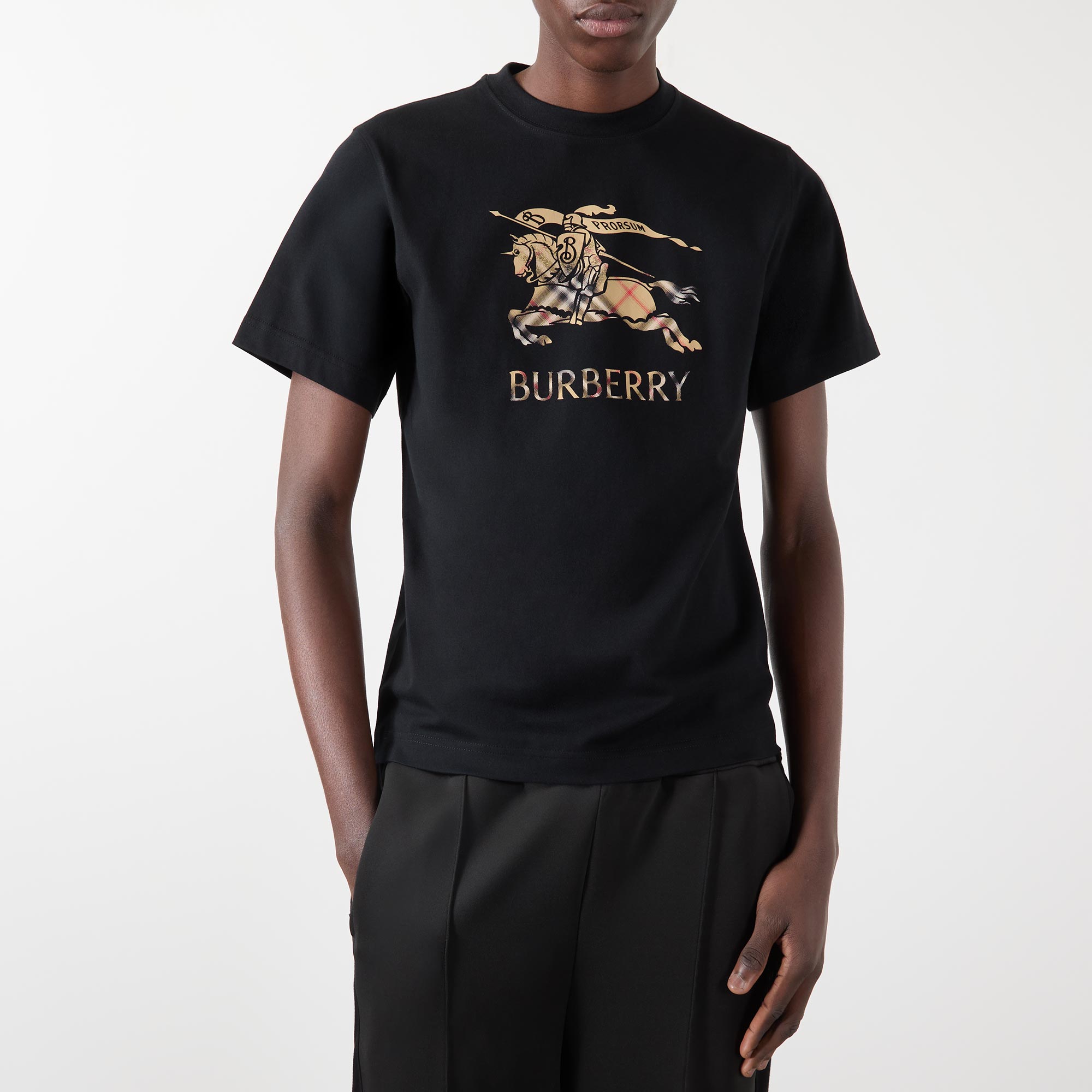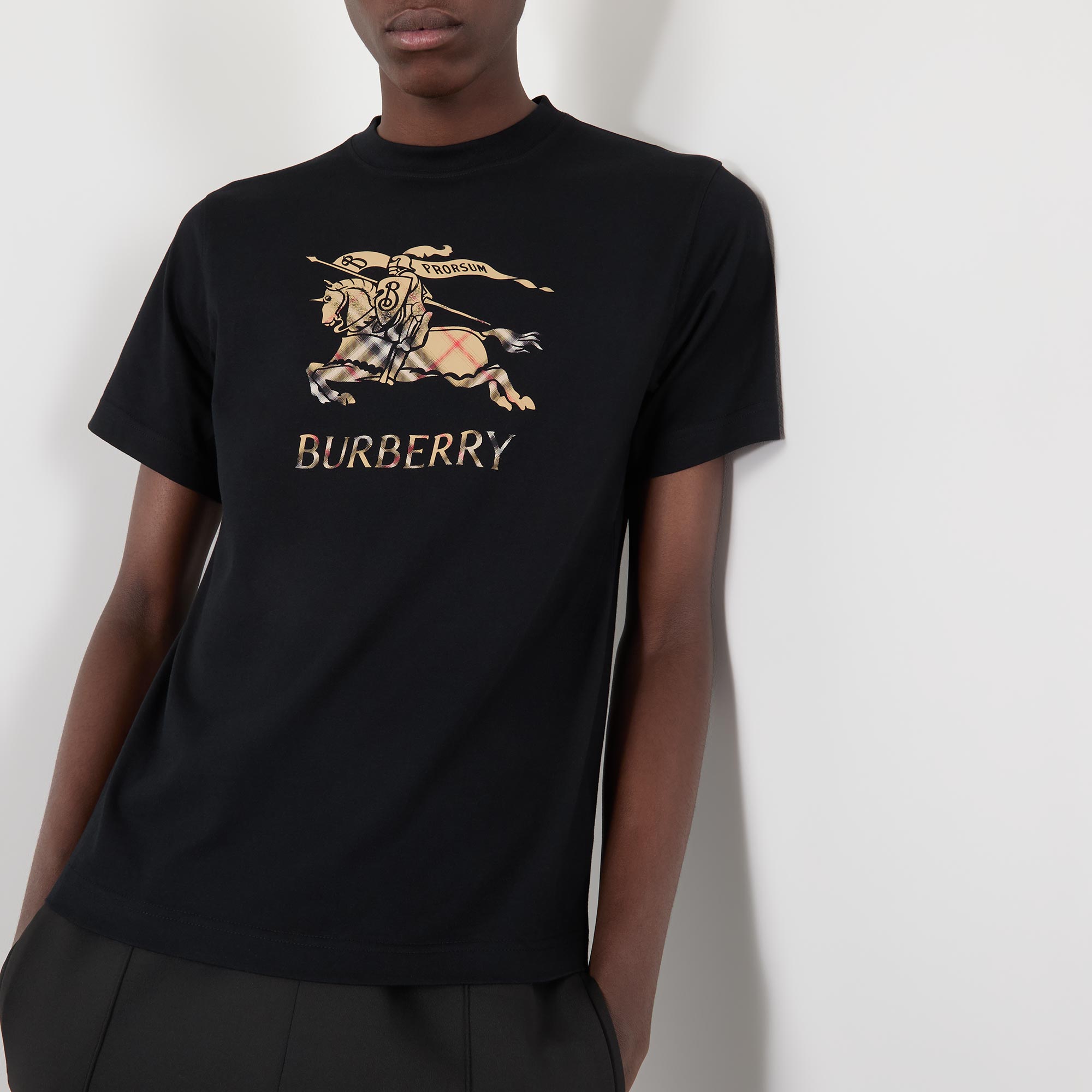 - Crew neck, short sleeves, straight hem, EKD logo graphic on the front, ombré Burberry check design, tonal stitching, lightweight