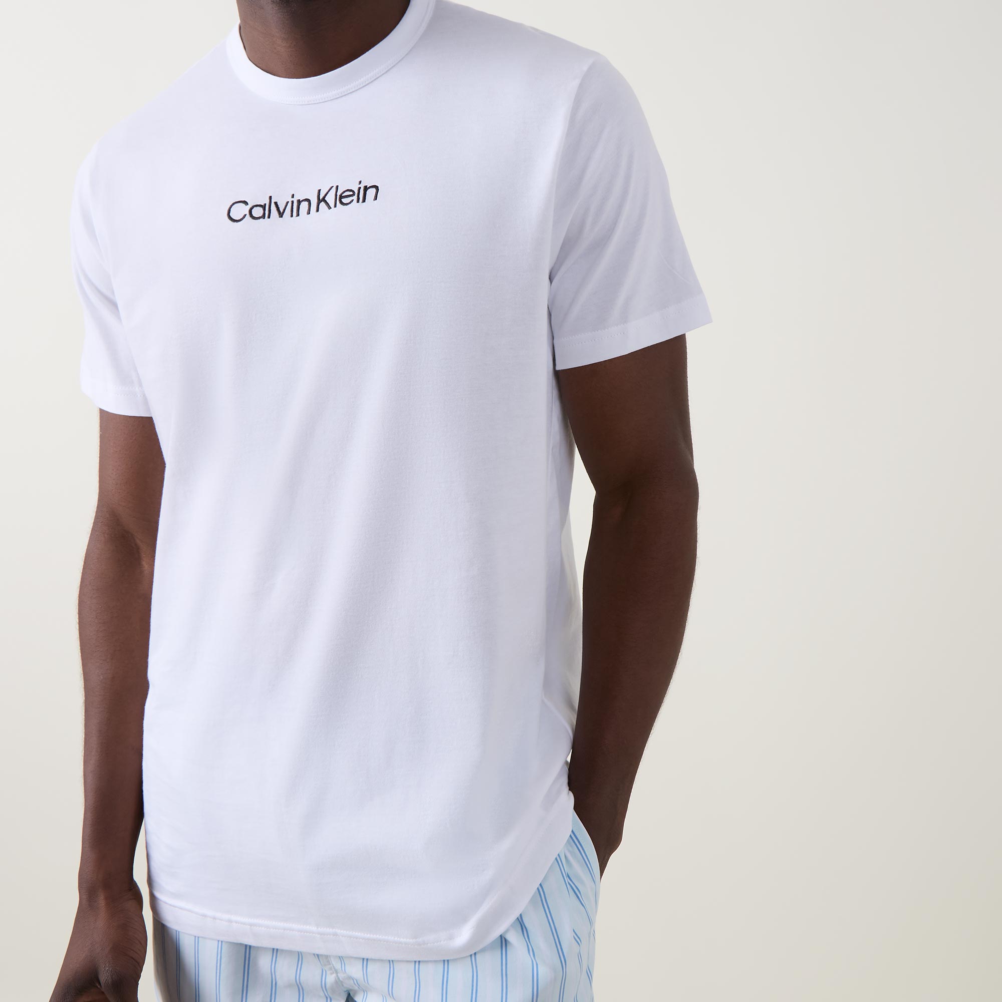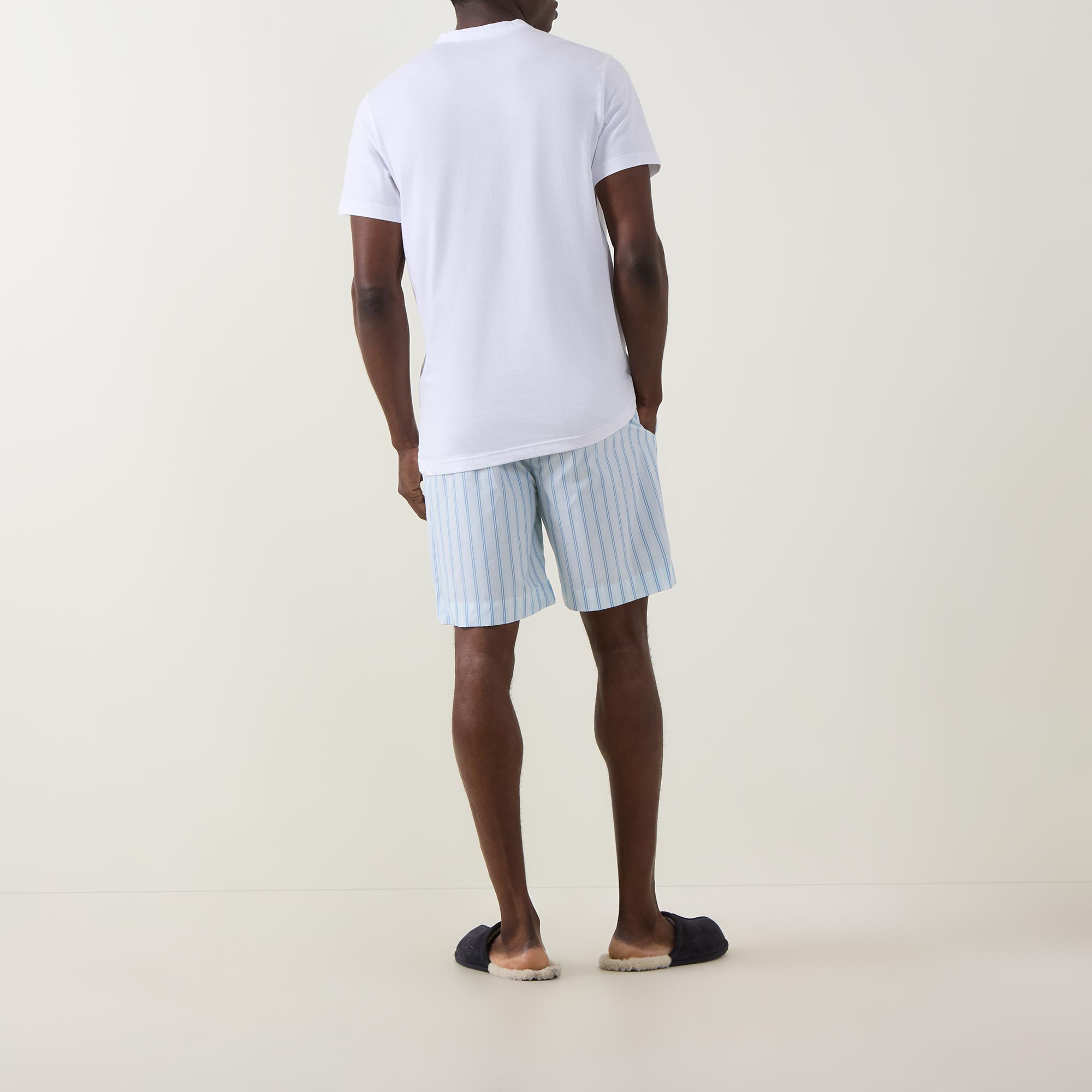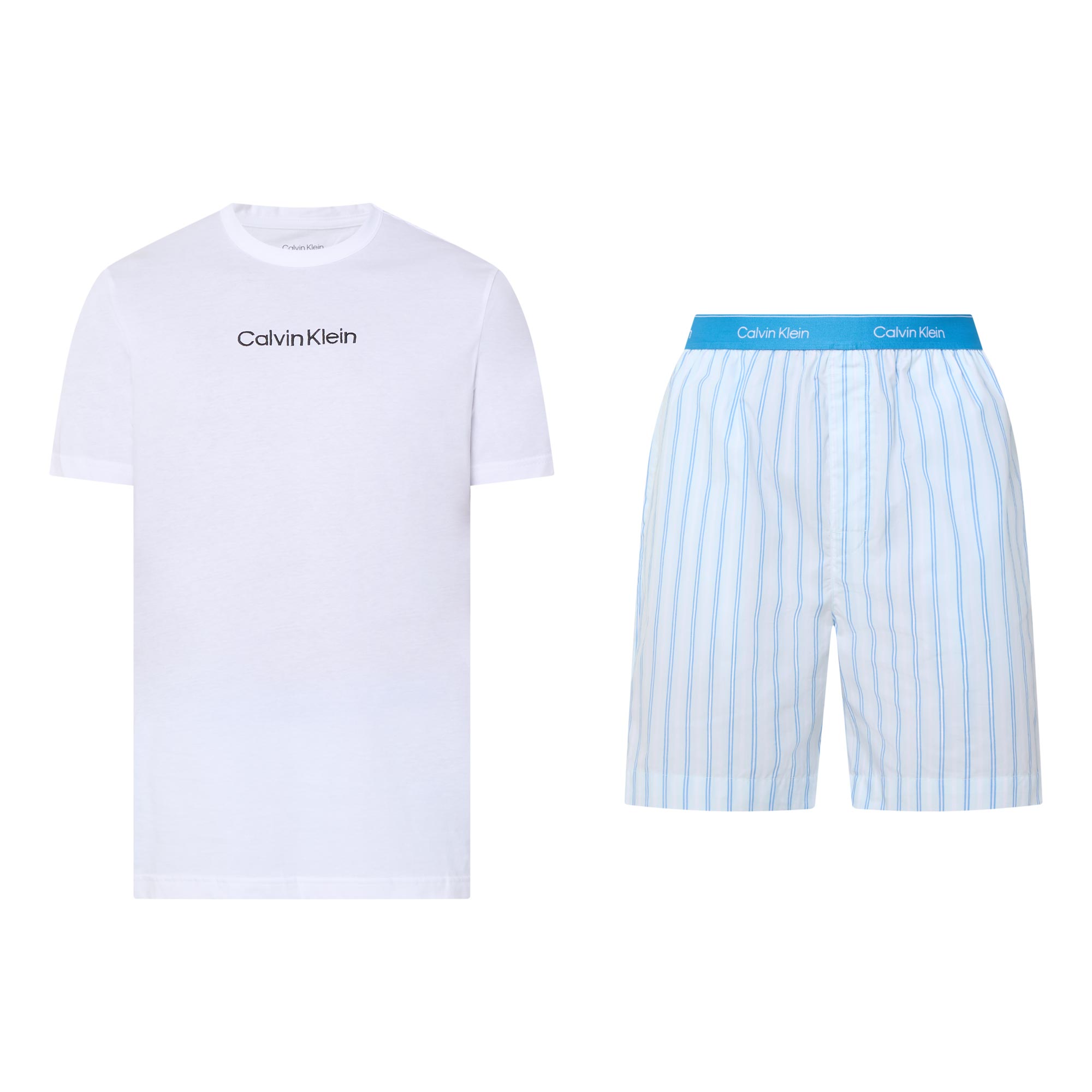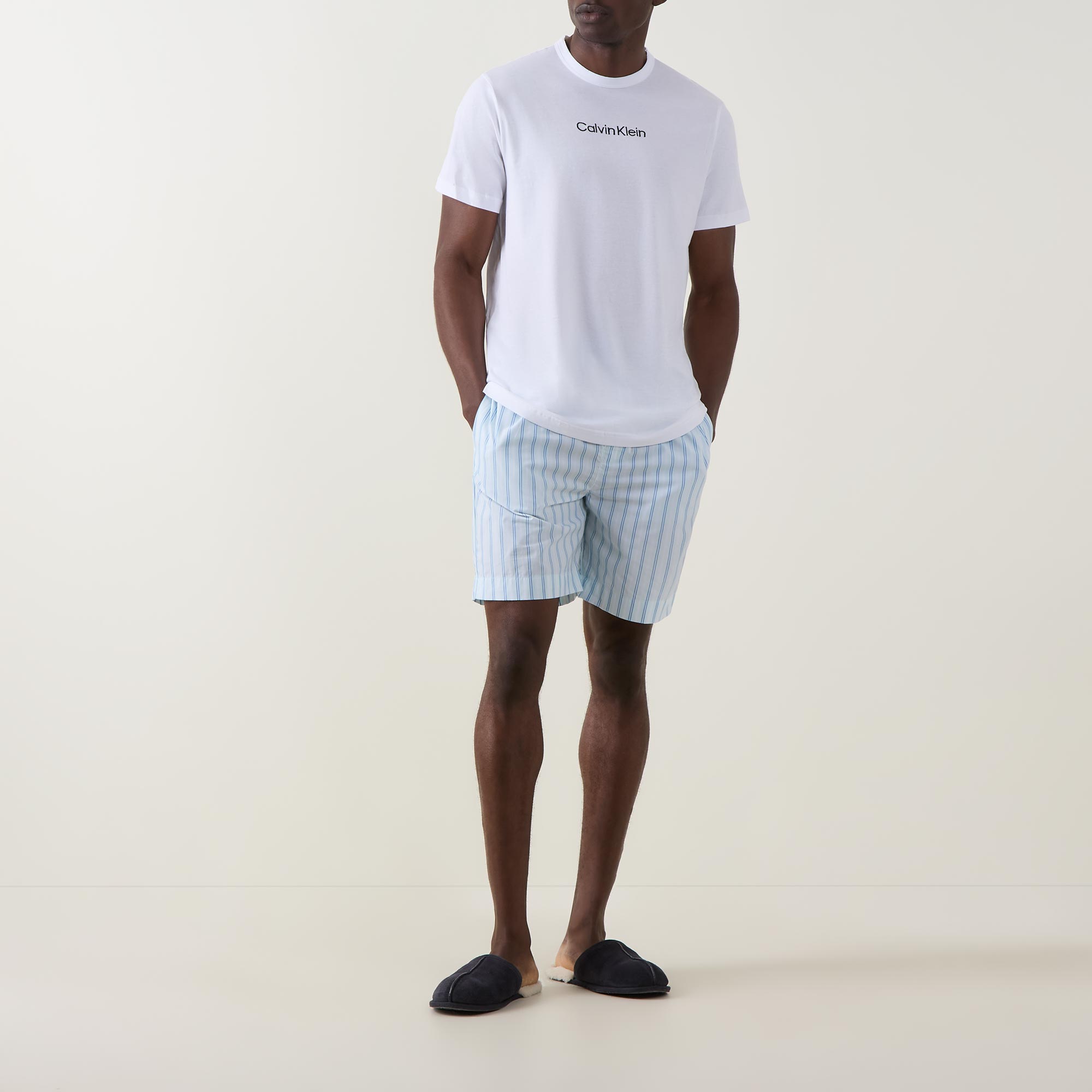 - Two-piece, short sleeves, round neck, logo print, striped shorts, elasticated logo waistband