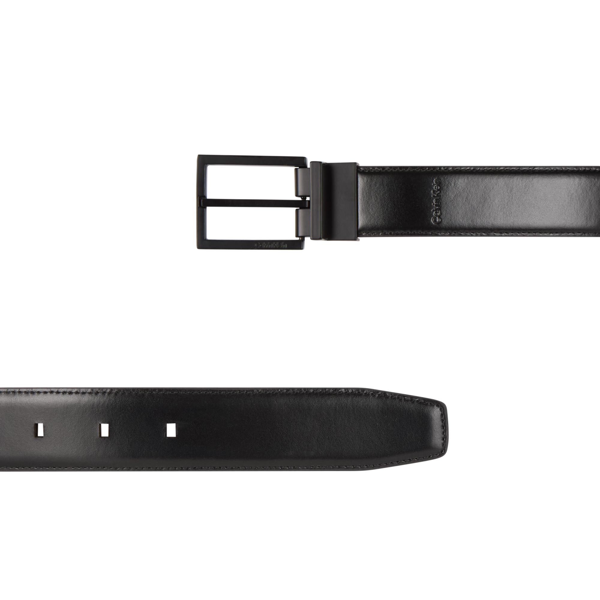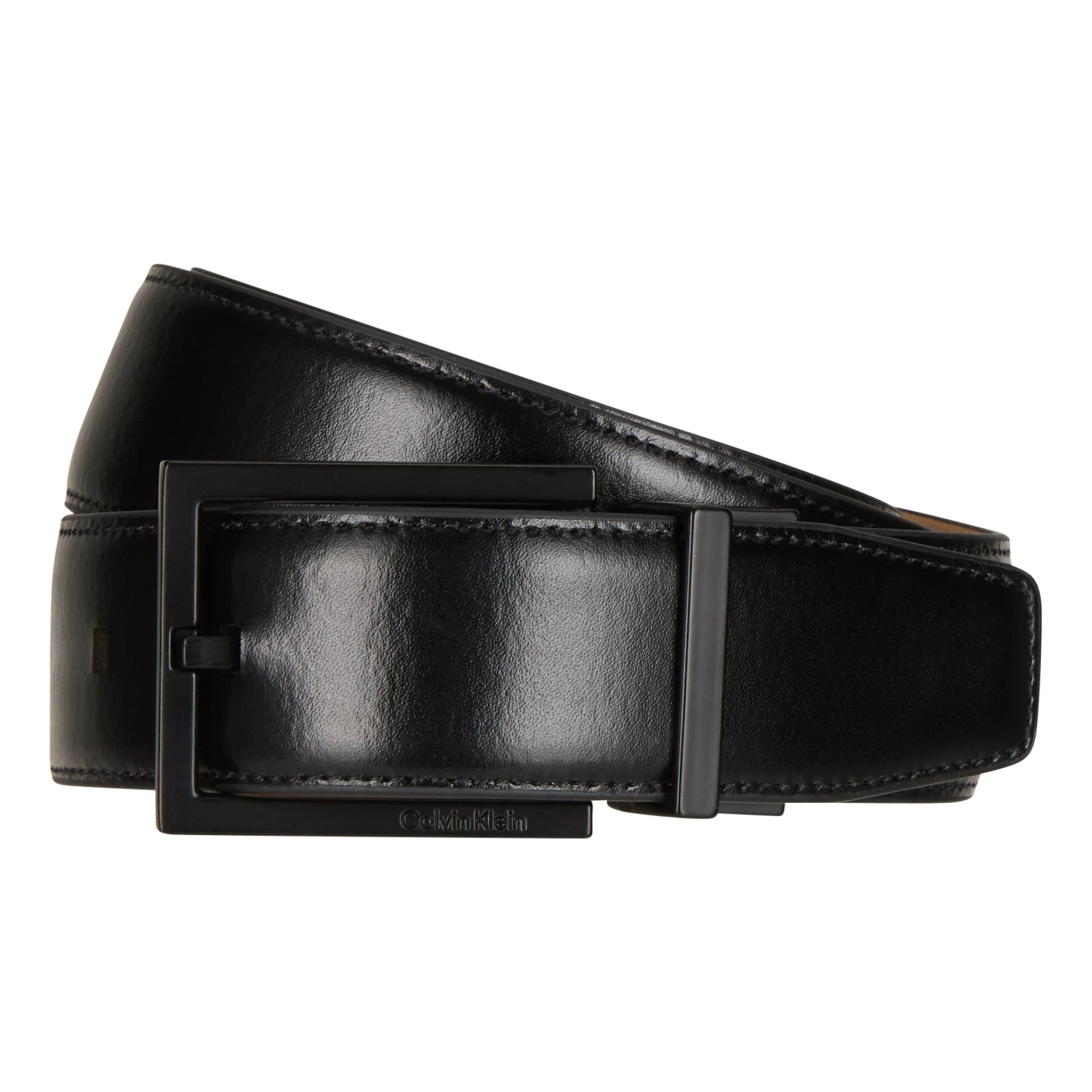 - Engraved logo, square buckle, tonal hardware, adjustable fit, tapered tip, smooth leather finish