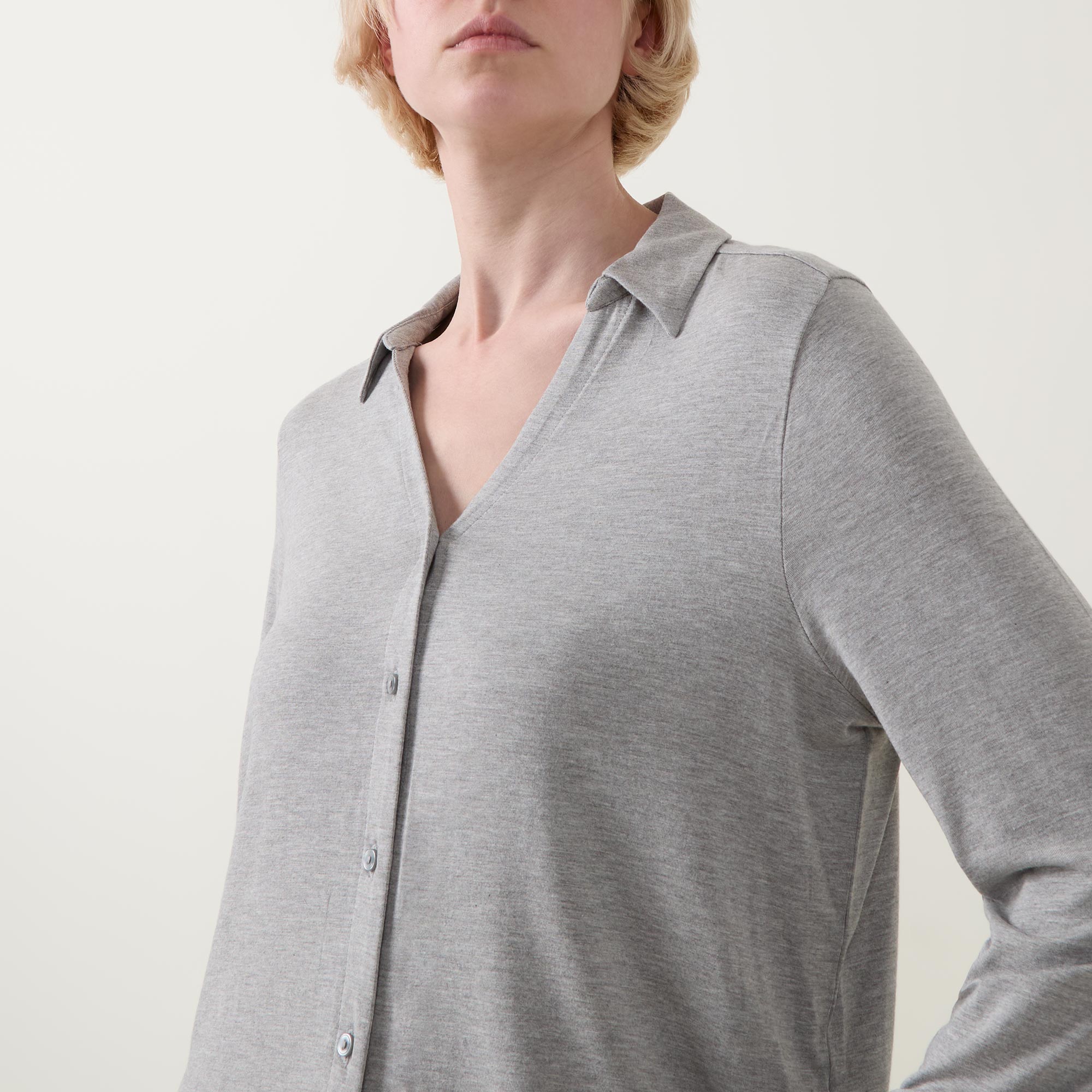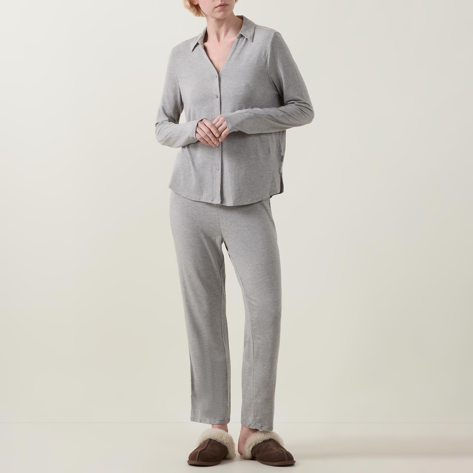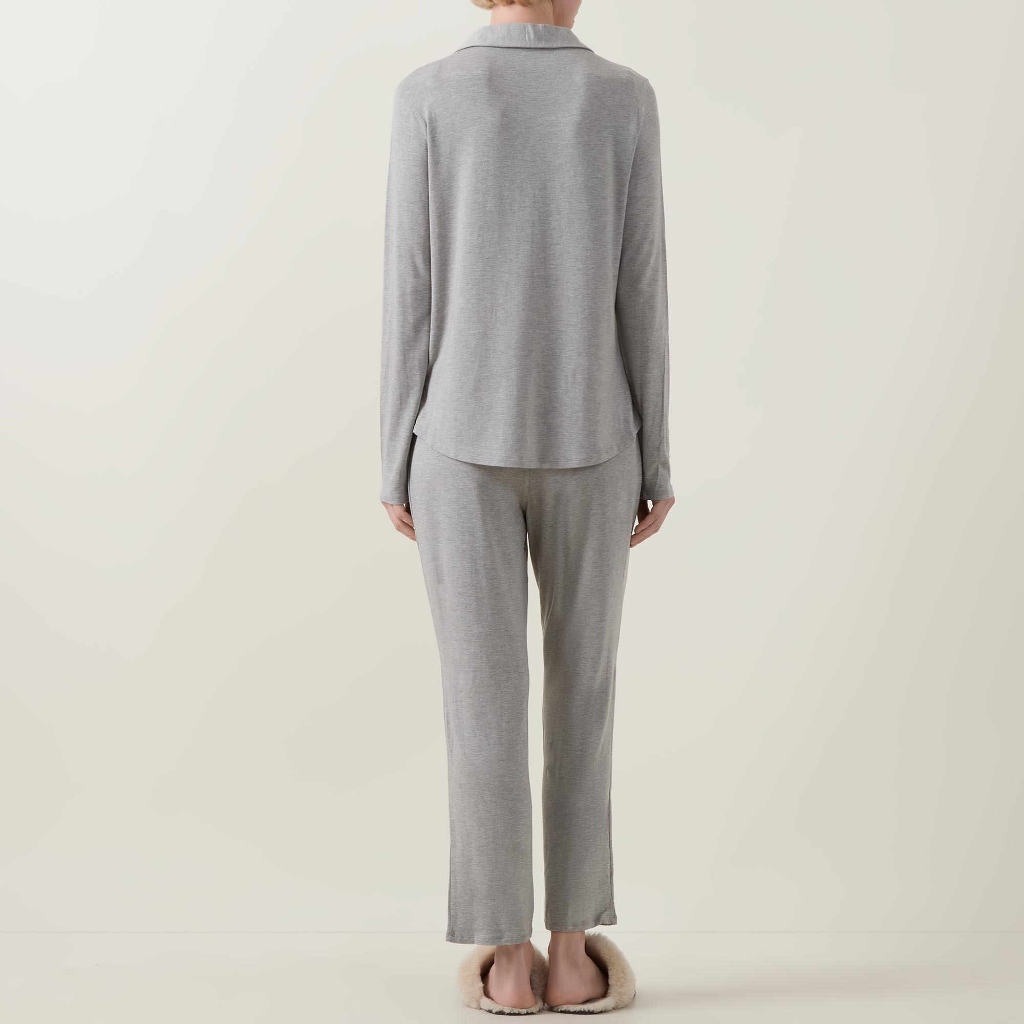 - Pyjama top: Collared neckline, long sleeves, button fastening, curved hemline, breathable and ultra soft stretch-fused fabric