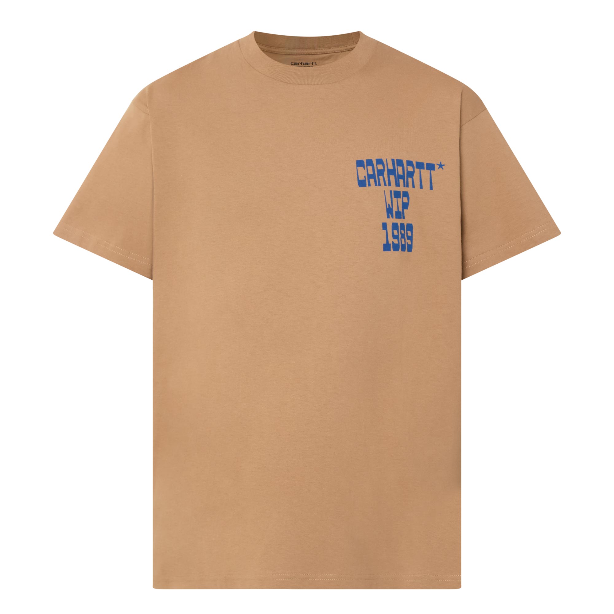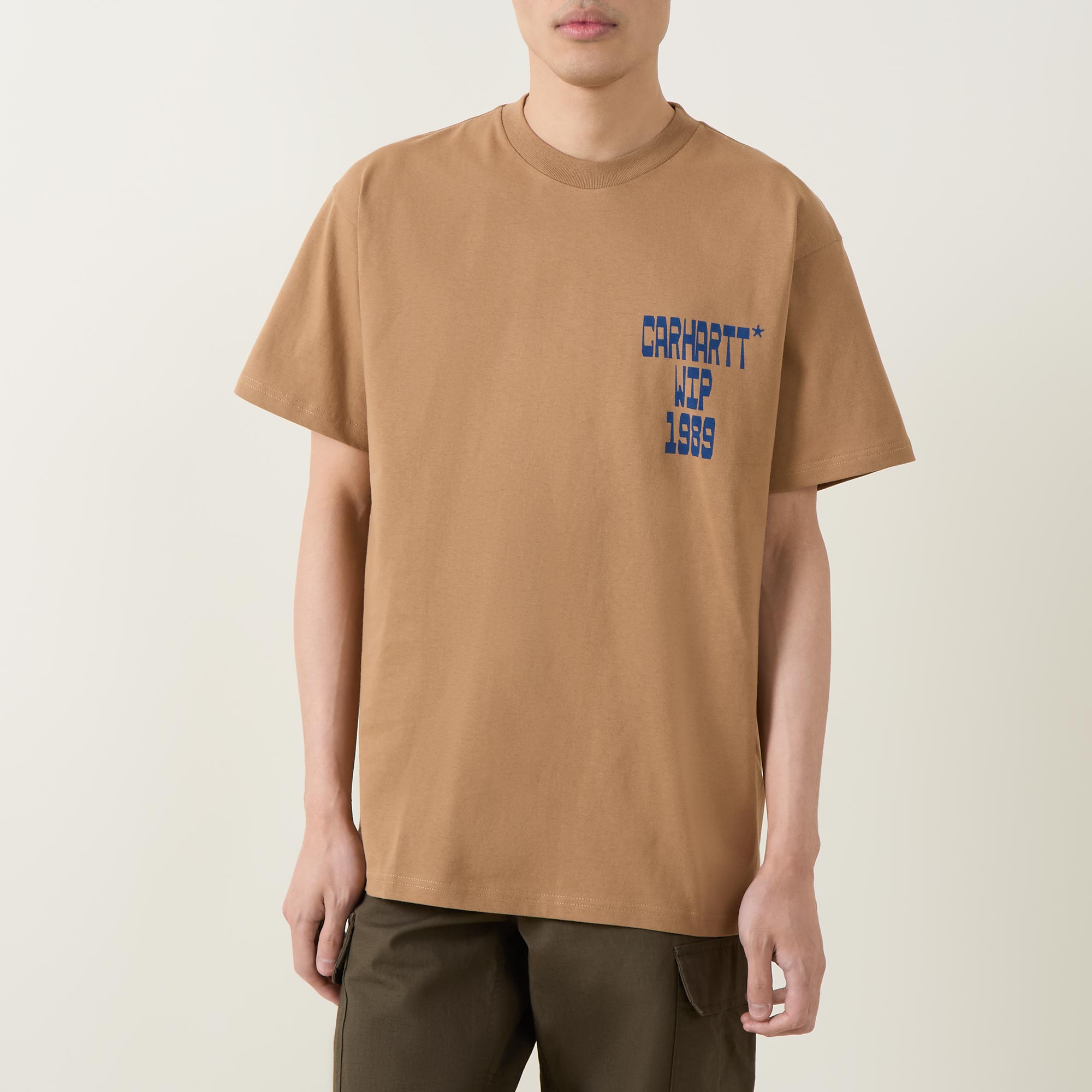 - Crew neck, short sleeves, straight hem, graphic logo lettering on the chest, graphic logo lettering on the back, tonal stitching, smooth finish