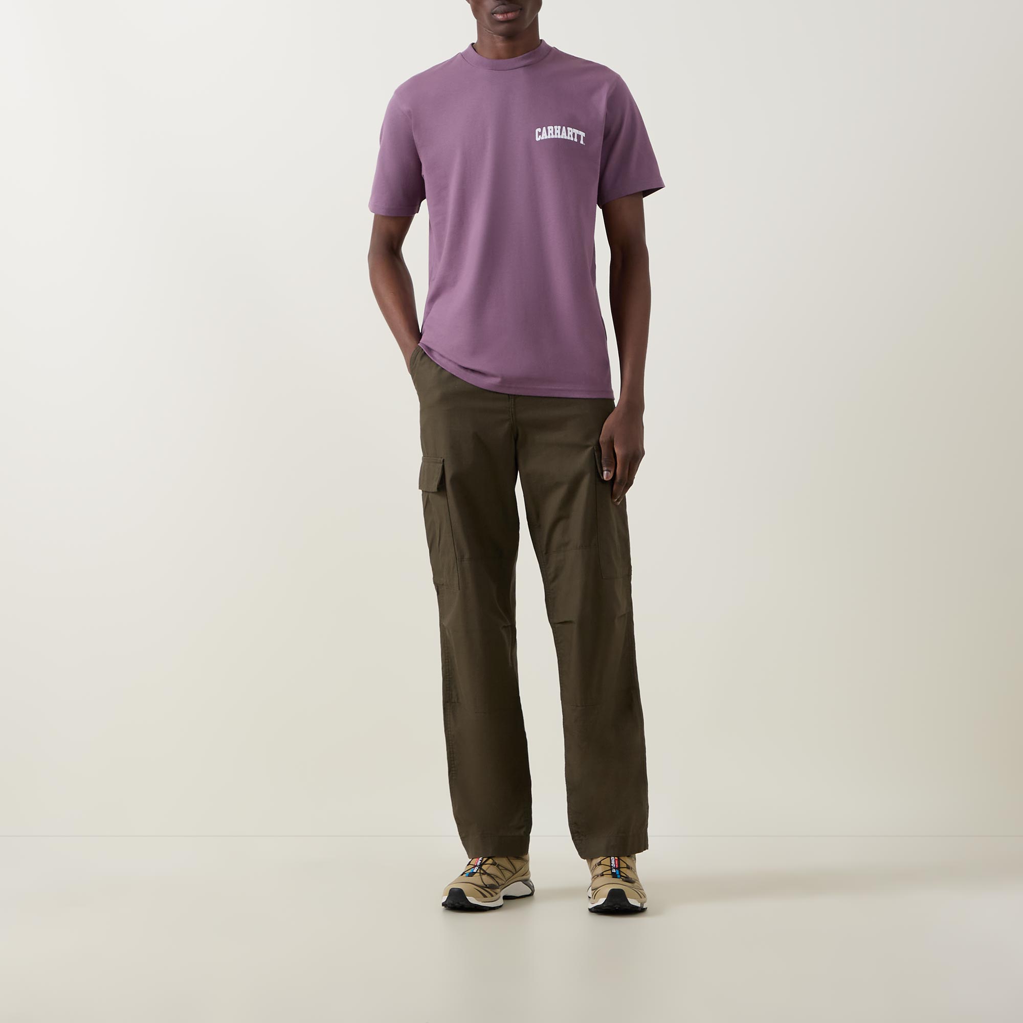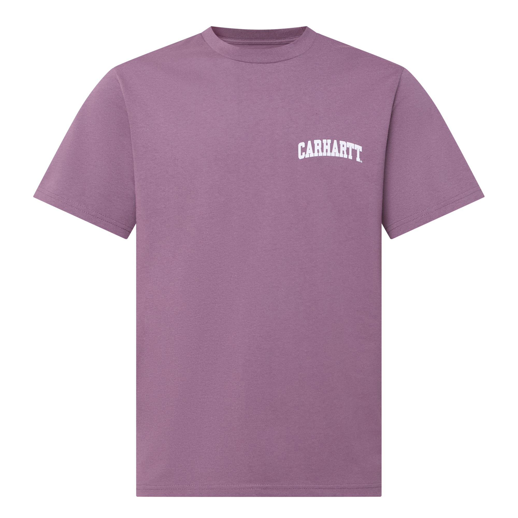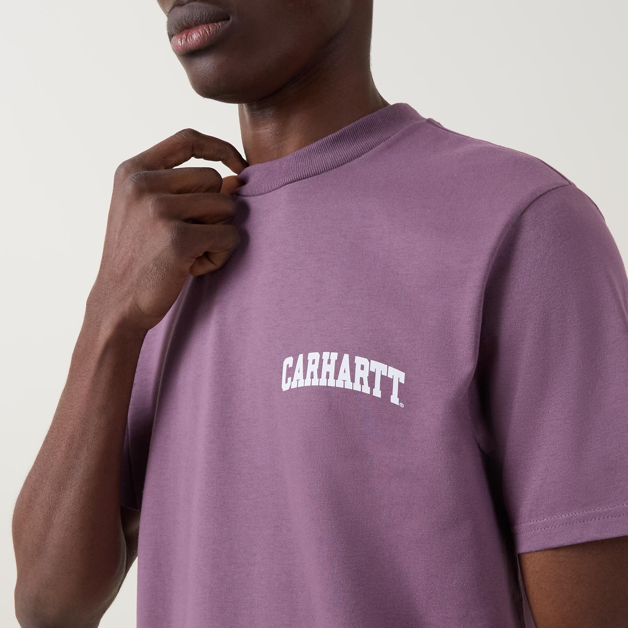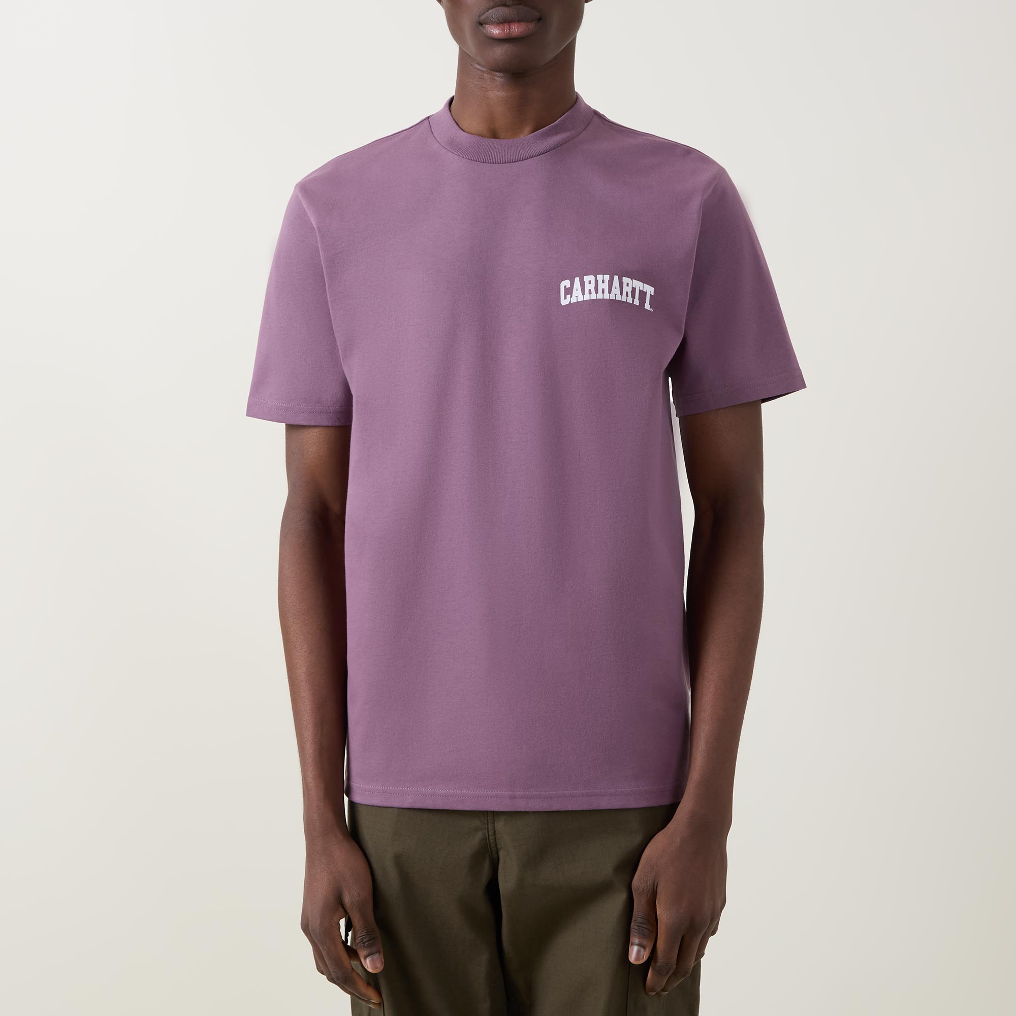 - Round neckline, short sleeves, straight hemline, university script logo detail