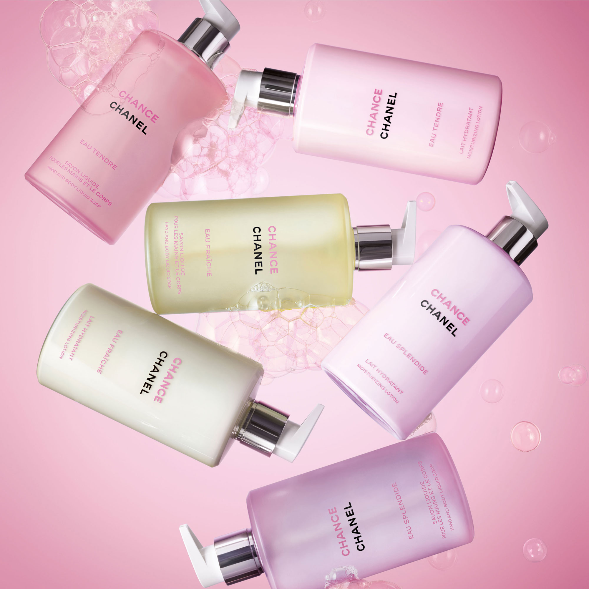 Description: CHANCE EAU SPLENDIDE Liquid Soap cleanses the hands and body, leaving them lightly scented with the fruity-floral notes of the iconic fragrance. Its fluid gel texture transforms into a refreshing foam on contact with water.