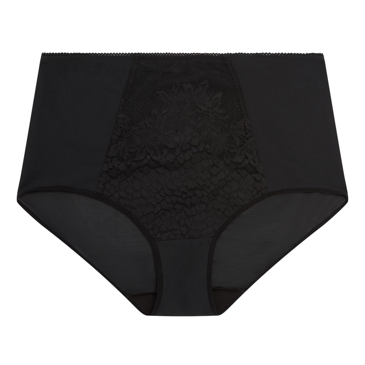 - High-rise, ultra-soft and breathable fabric, moderate coverage, sheer lace details, seamless edges, sculpted fit