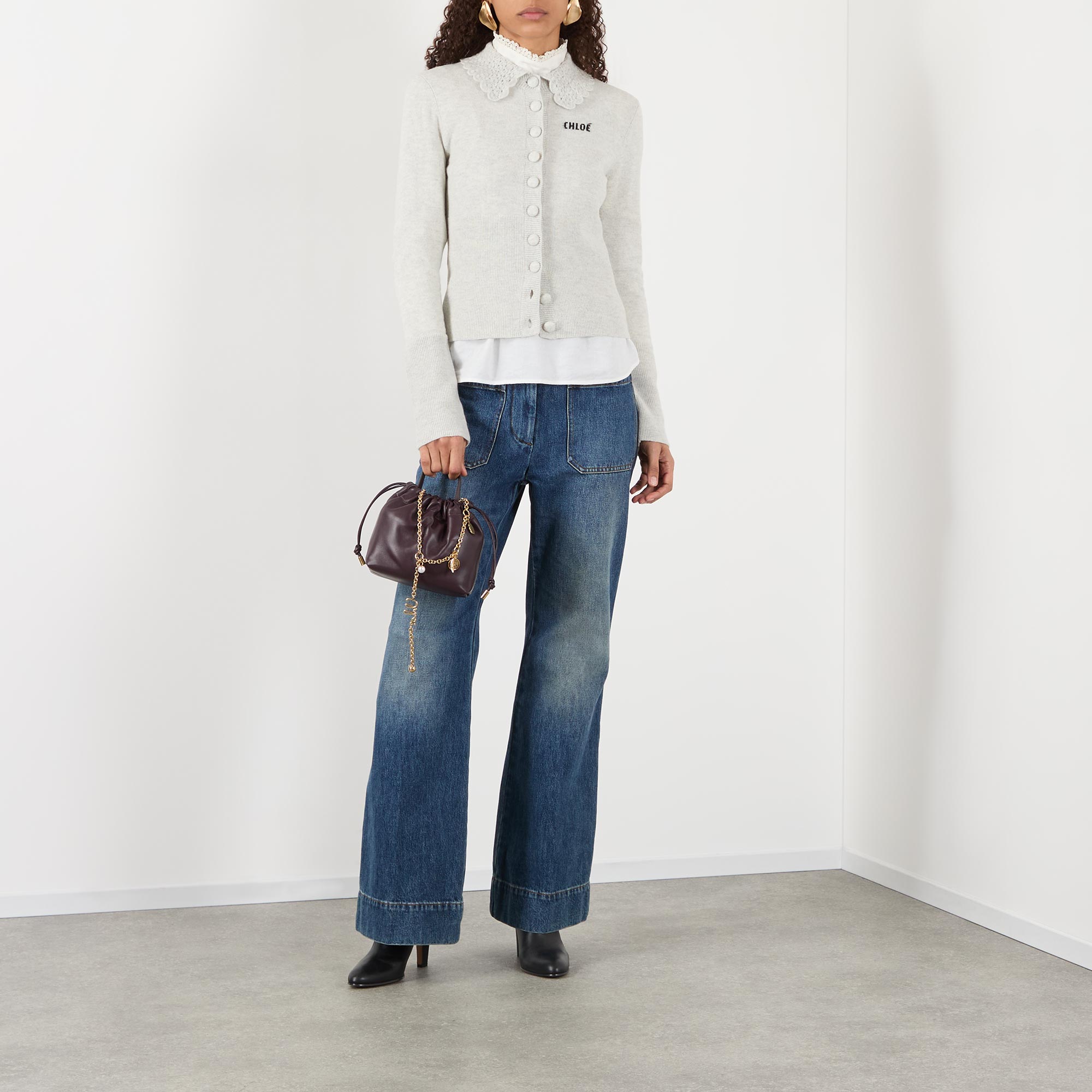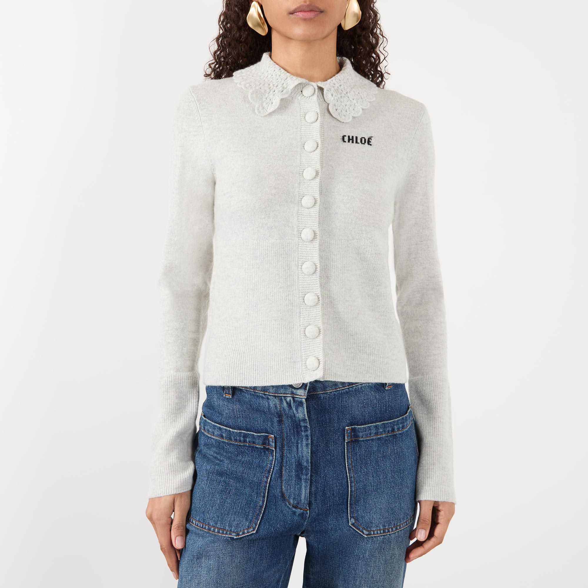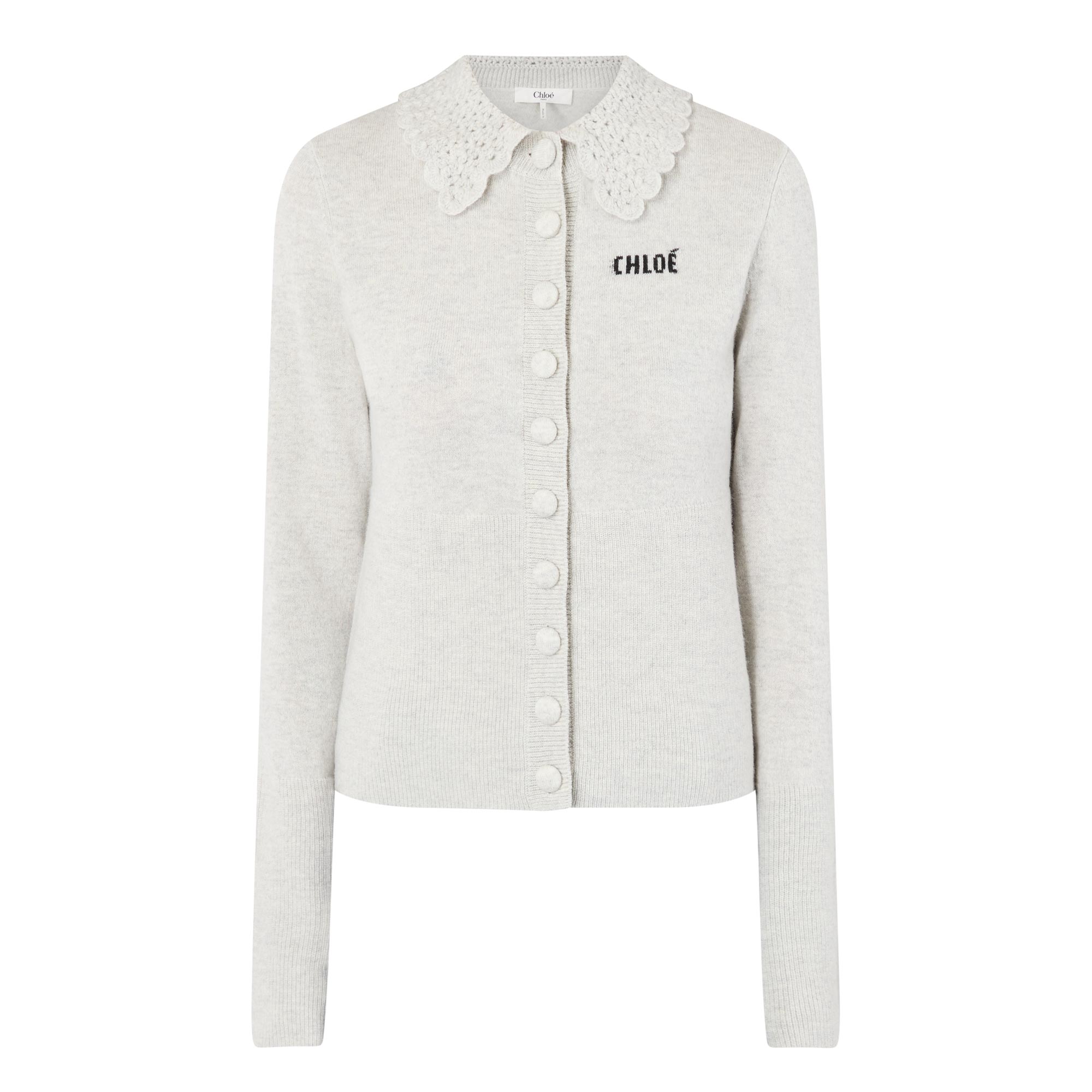 CHLOÉ Eyelet Collar Logo Knit Cardigan