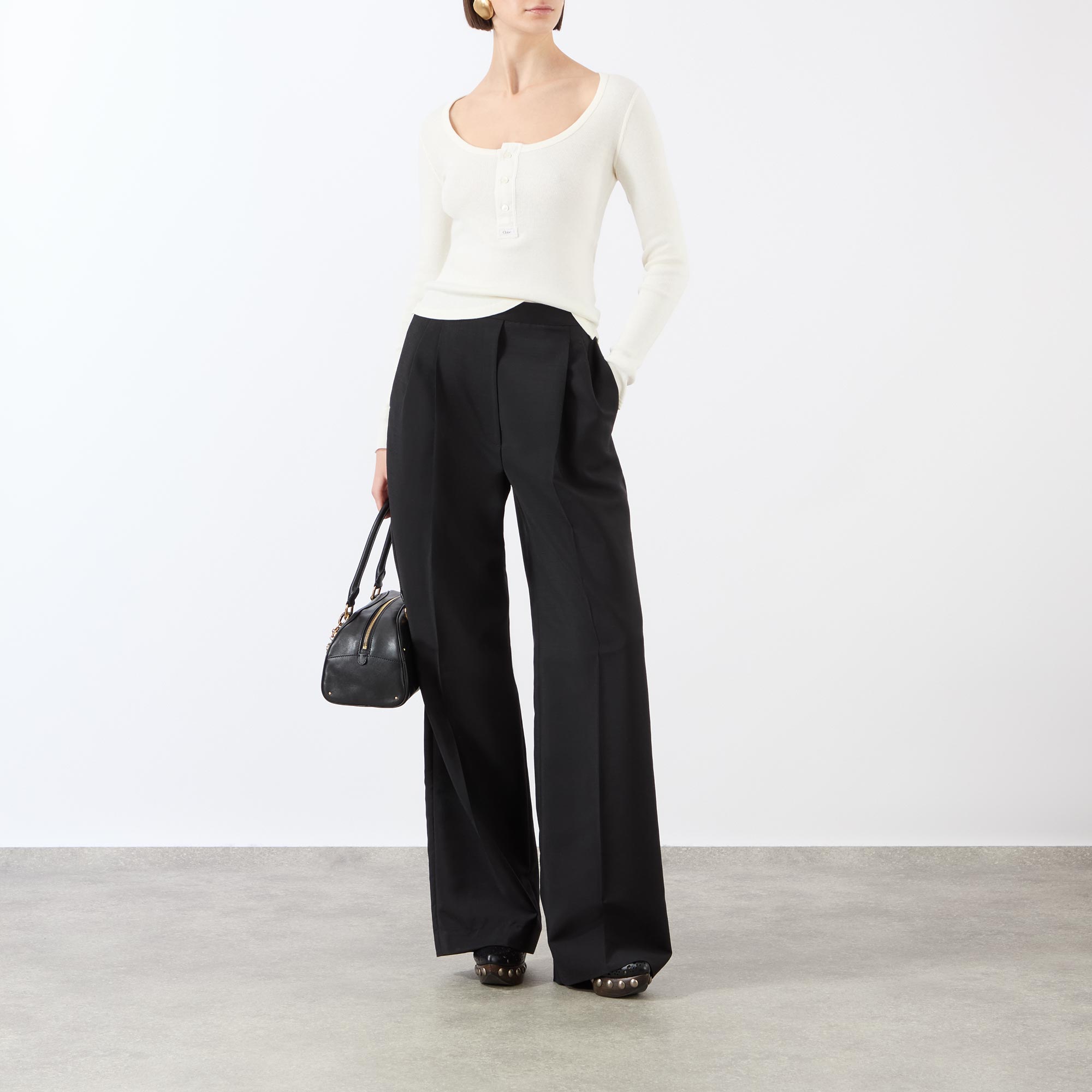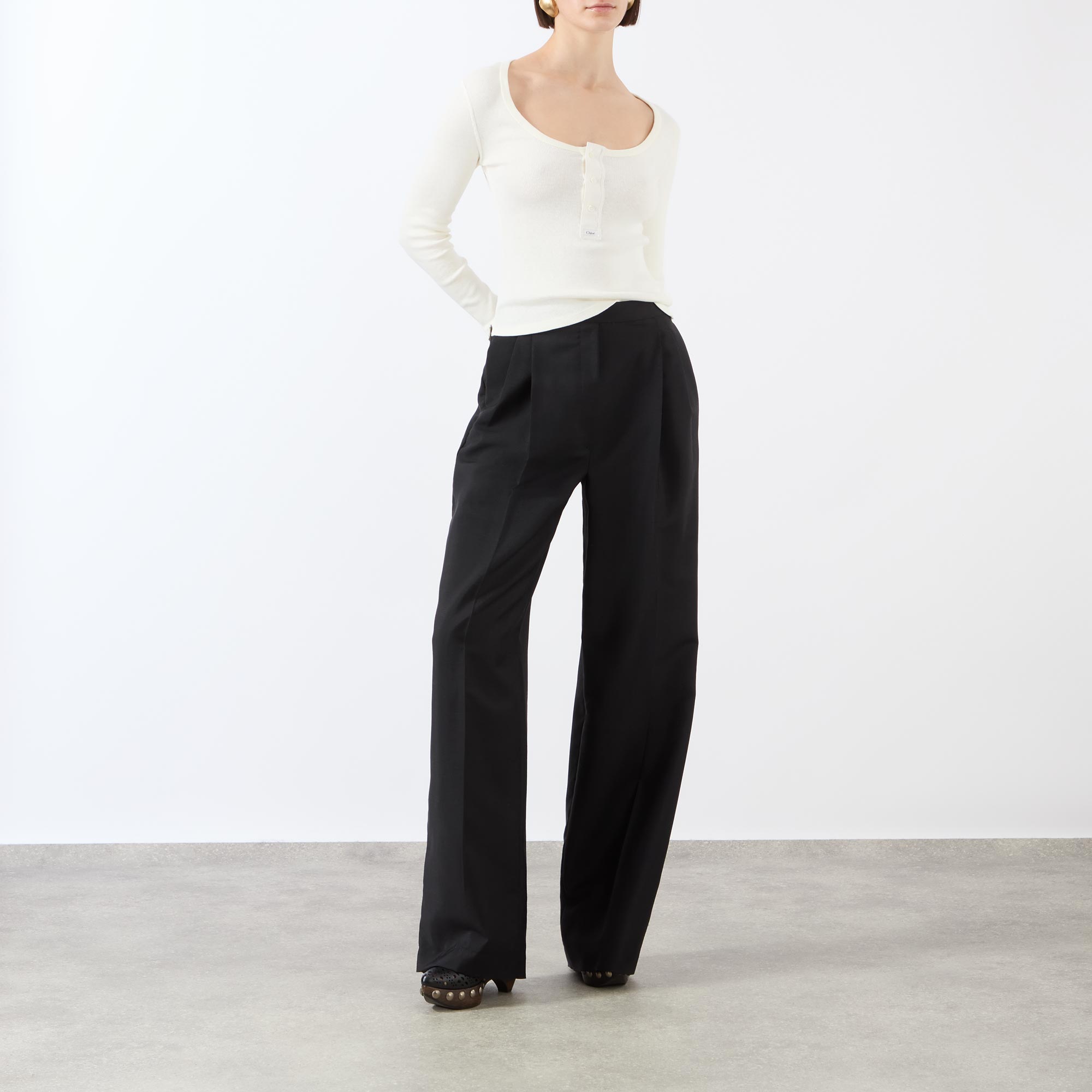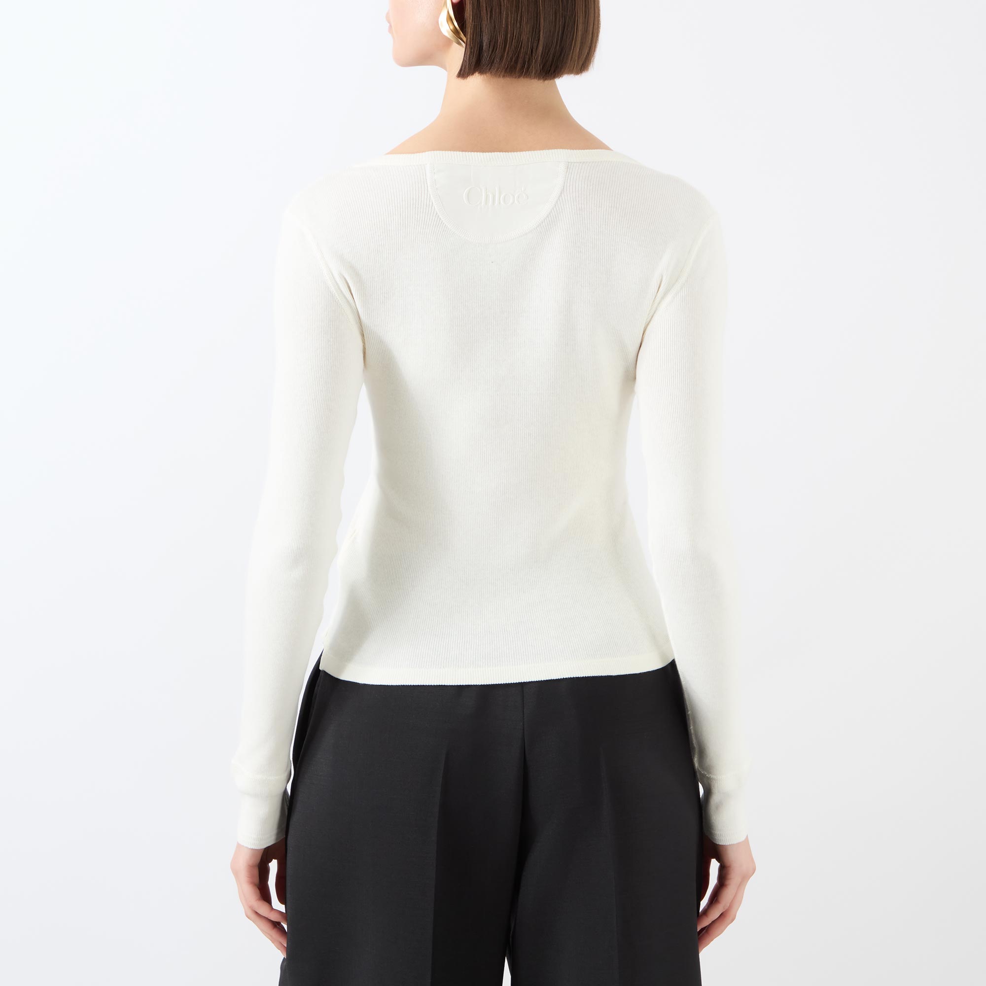 For SS26, Chloé explores the balance between intricate craftsmanship and everyday wearability. This top embodies that ethos with an understated design, featuring a classic scoop neckline, long sleeves, and a three-button placket, complemented by a subtle logo patch at the chest. Crafted from soft, breathable cotton, it’s woven with the brand’s logo lettering at the back and finished with a clean, straight hem for a sleek silhouette.