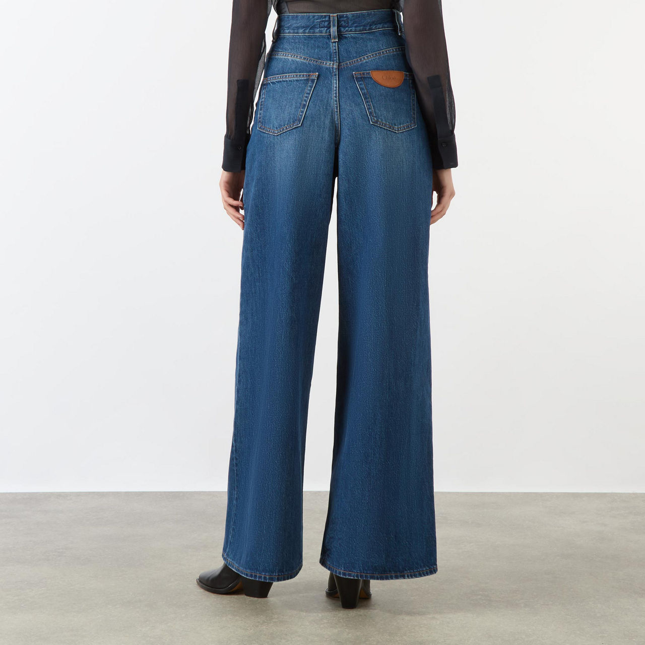 - High-rise, wide-leg, belt loops, concealed zip fly with engraved button fastening, five-pocket styling, rear half-moon logo tab, soft denim, vintage wash