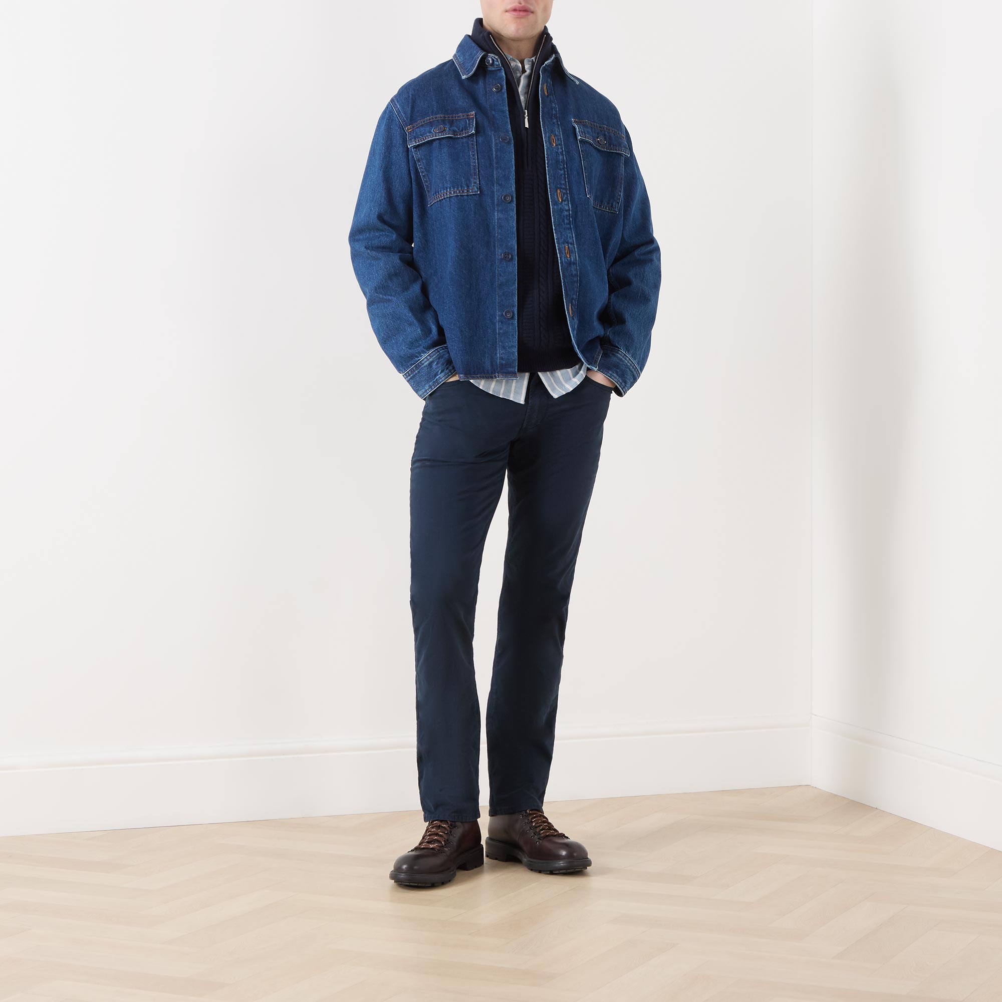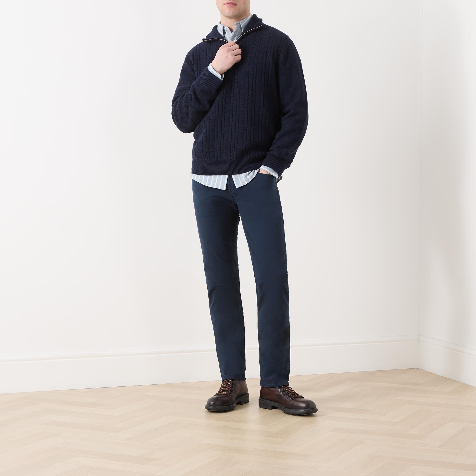 - Composition and Care: 98% cotton 2% elastane. Machine wash
