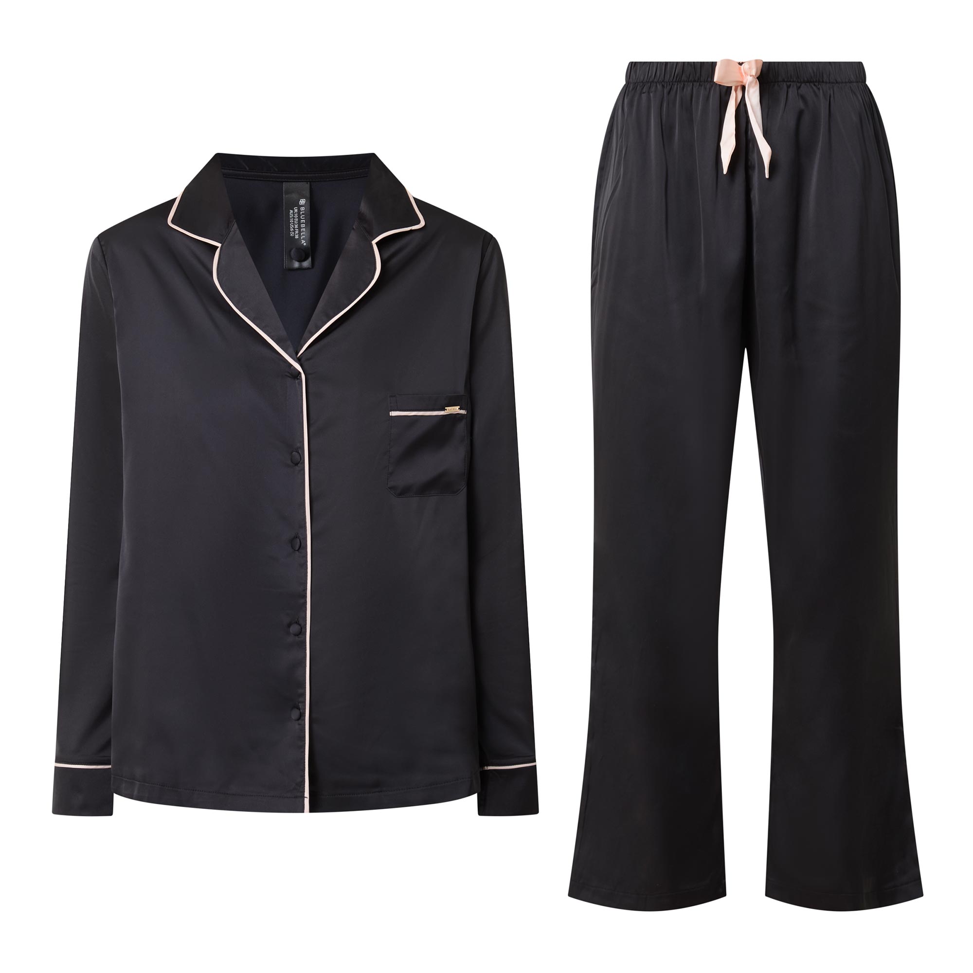 Channel your inner Coco Chanel in this classic pyjama trouser set from Bluebella, with a modern twist. This sweet pyjama trouser set is timeless in style, with a nod to the elegant pyjamas worn by Coco Chanel. The soft satin shirt is trimmed with contrast satin piping along the collar, pocket and cuffs, while the trouser is finished with a large satin bow for a modern take on a classic pyjama look.