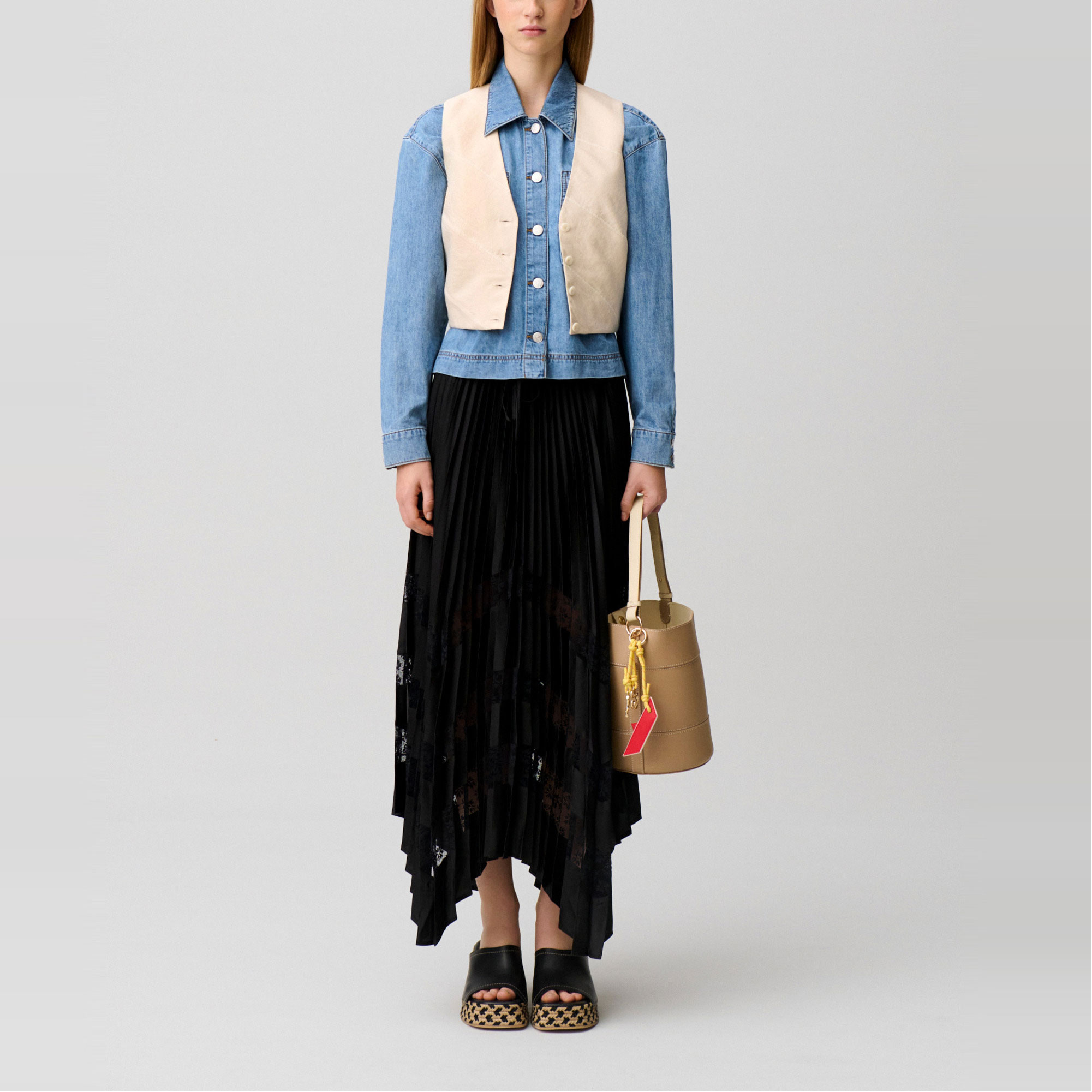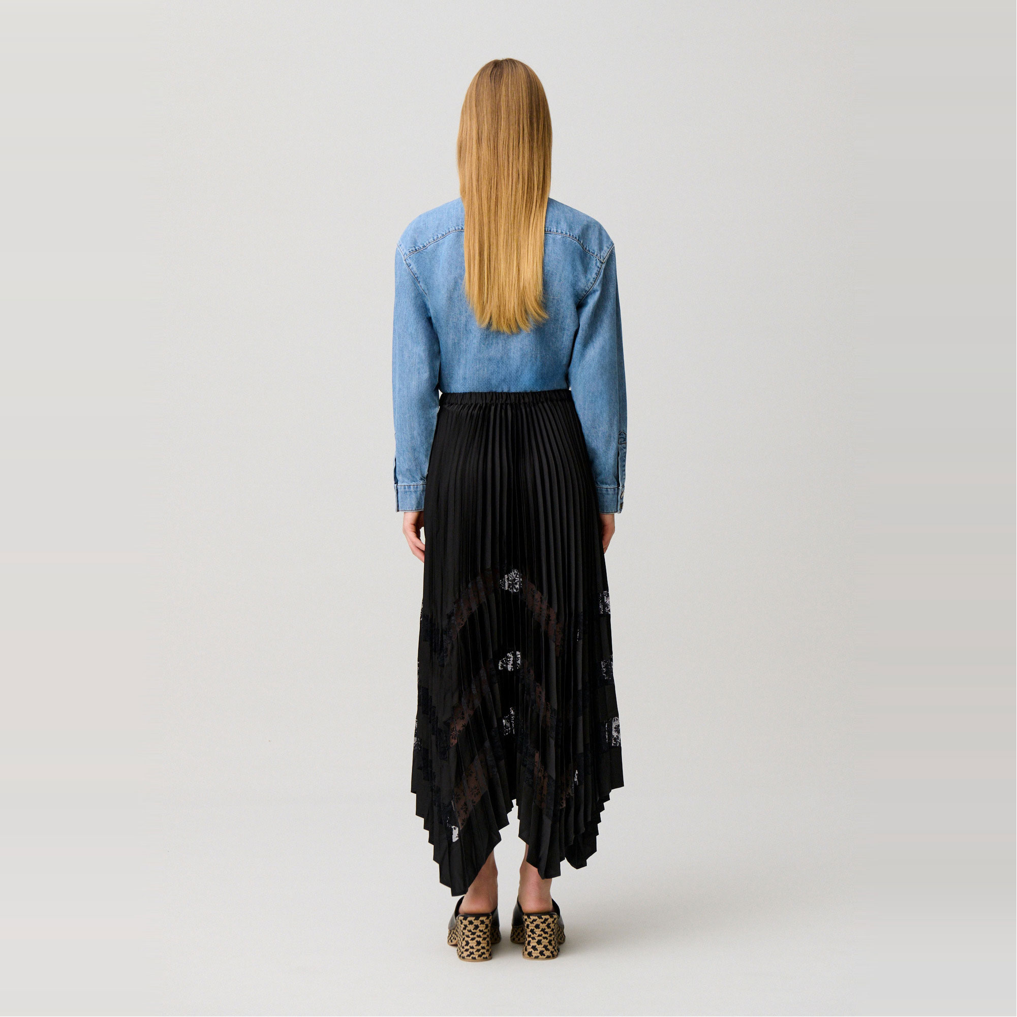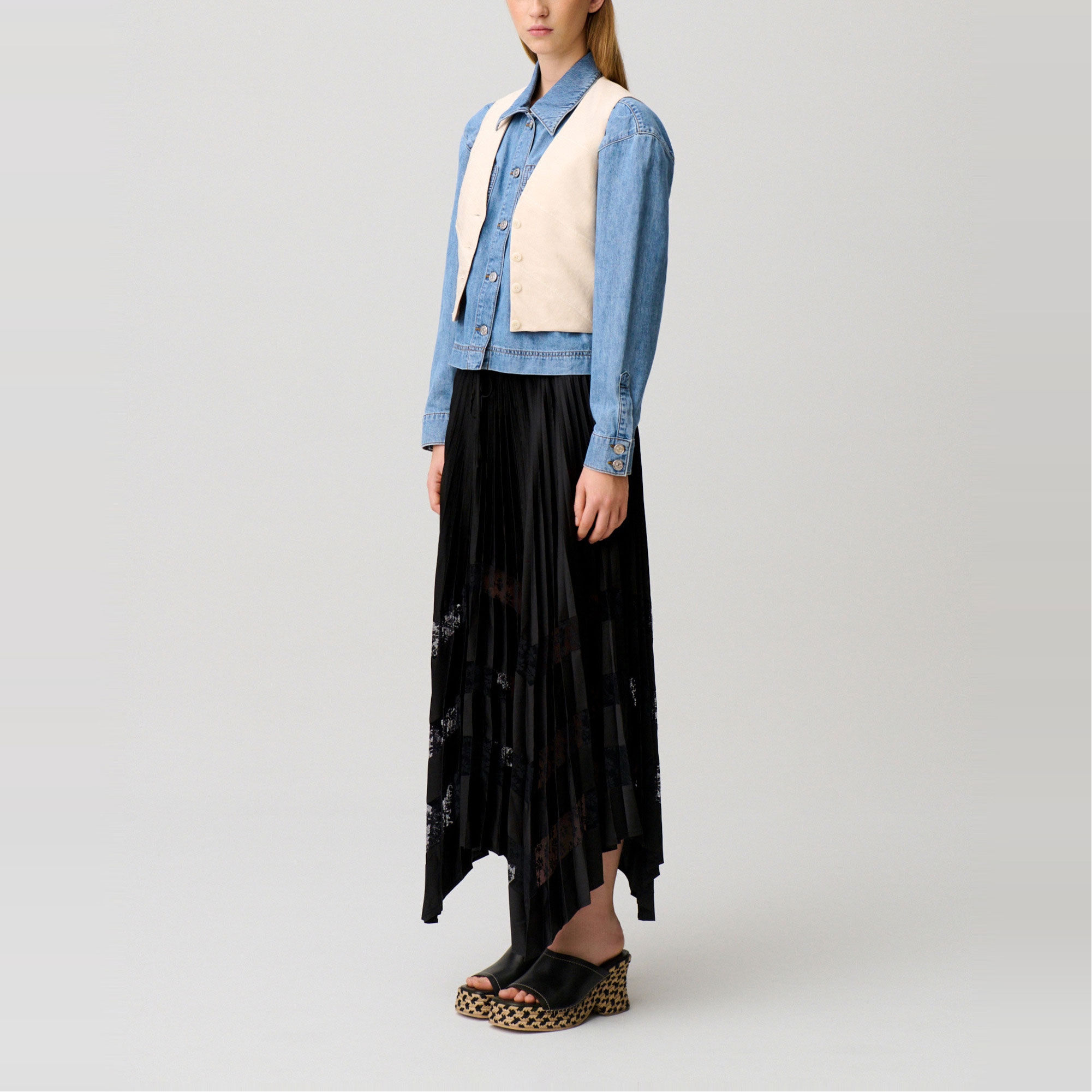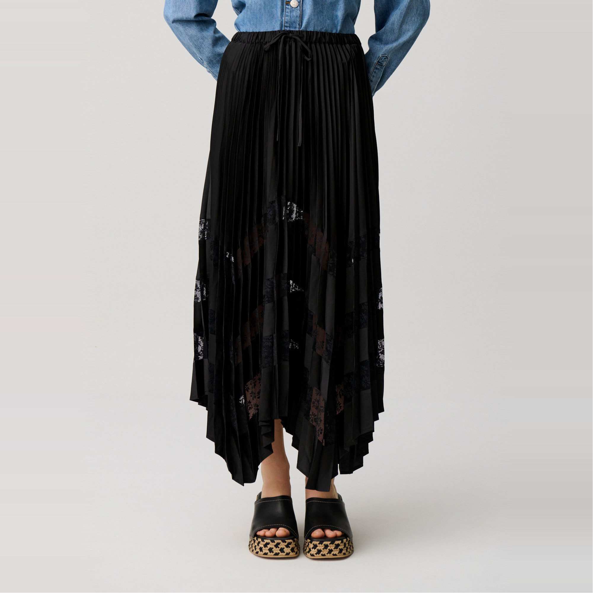 CLAUDIE PIERLOT The Sustainable Edit Lace Insert Asymmetric Pleated Skirt