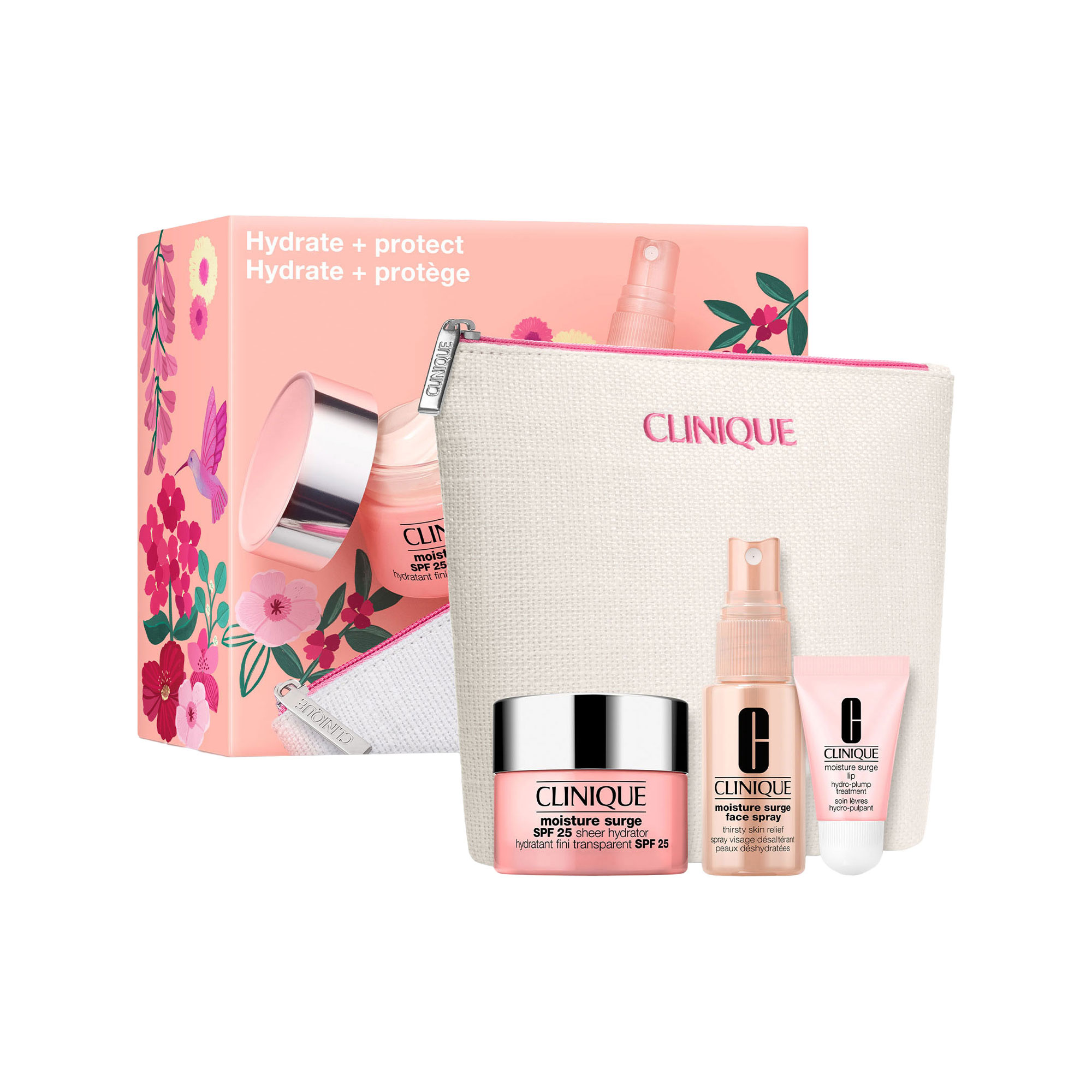 Description: This most-loved Moisture Surge™ trio delivers hydration and sun protection for a glowing look, complete with an exclusive bag.