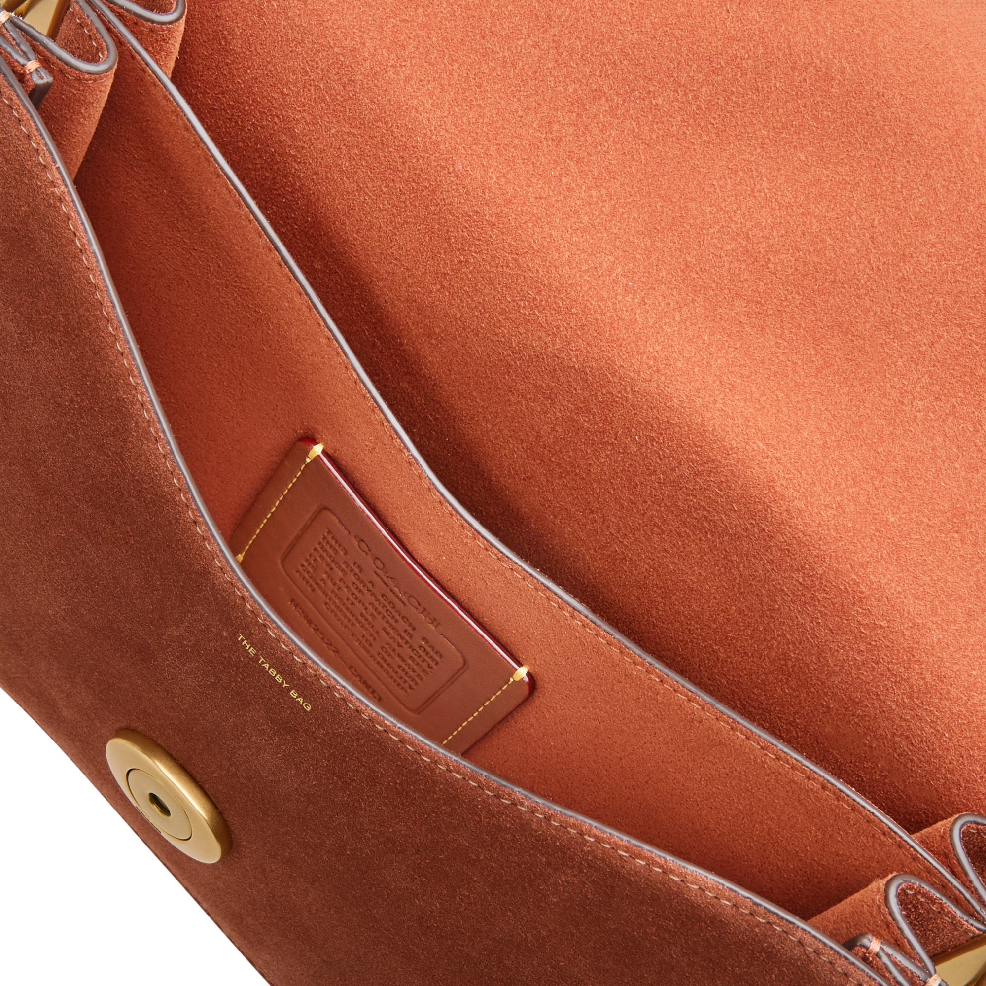 - Detachable shoulder strap, detachable chain strap, detachable and adjustable crossbody strap, removable key tag, flap closure with magnetic snap fastening, one rear zip pocket, signature C-logo hardware, gold-tone finishes, suede design, contrast stitching