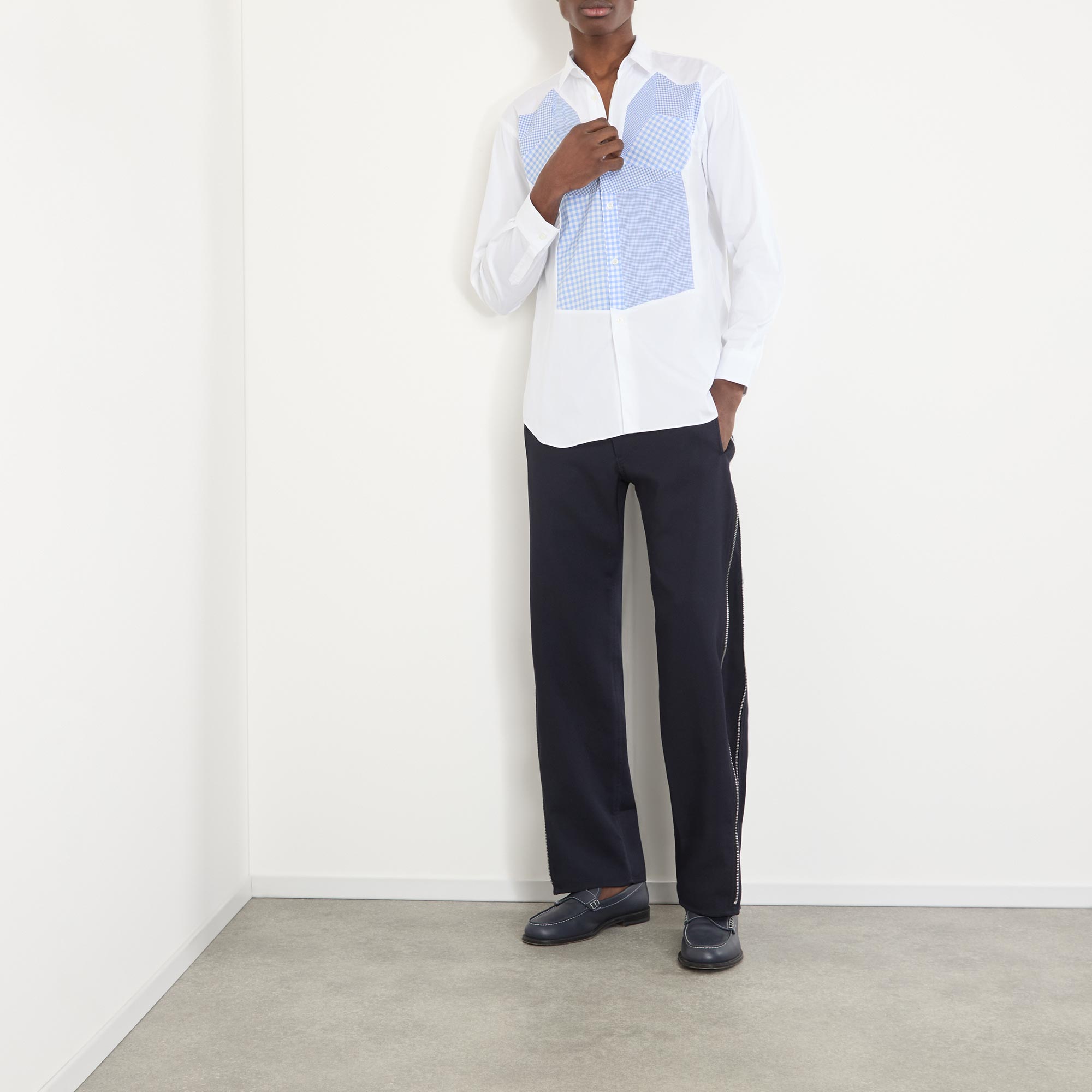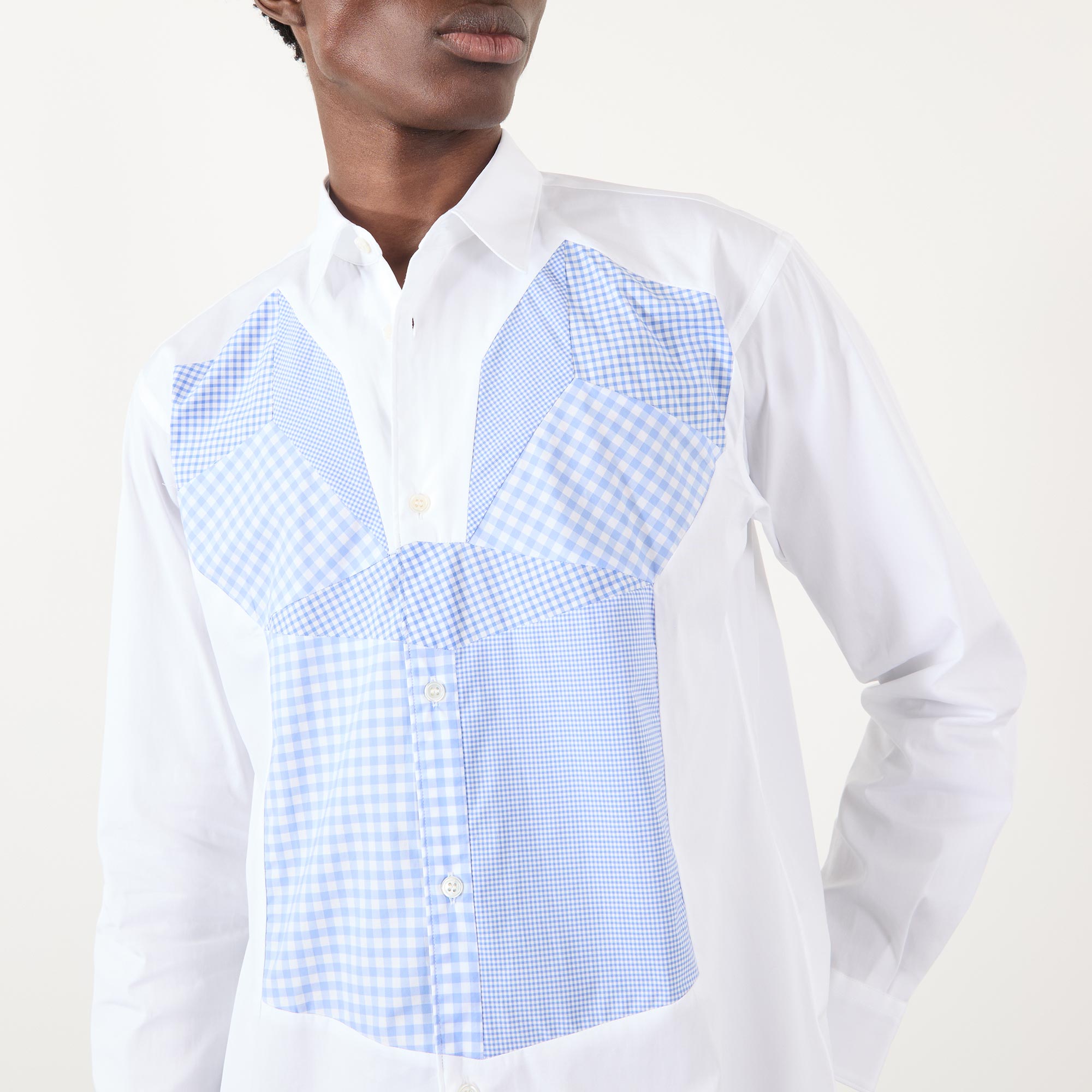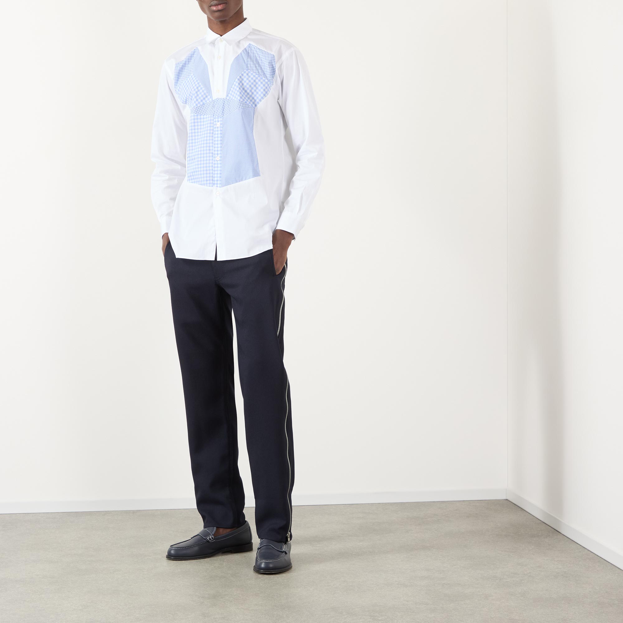 Japanese fashion house Comme Des Garçons Shirt, offers collections with unexpected twists on men's shirting. Scaled up or downsized, printed with patterns of ginghams or collegiate stripes, there's a design suited to everyone.