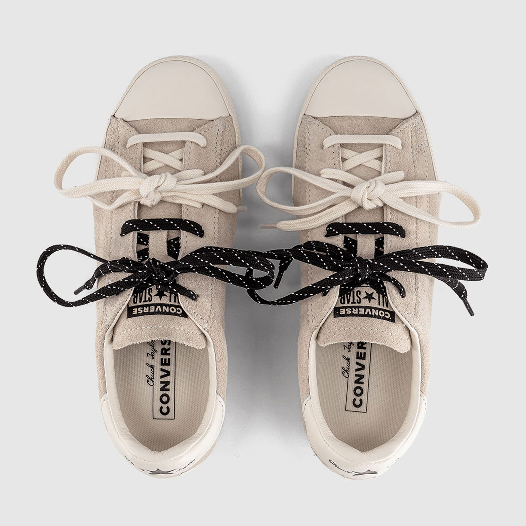 - Low‑top silhouette, suede fabric, contrast stitching, rubber toe cap, lace-up fastening