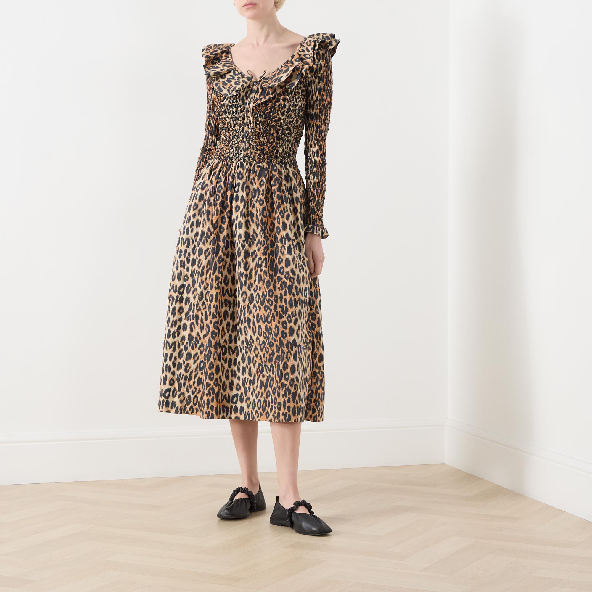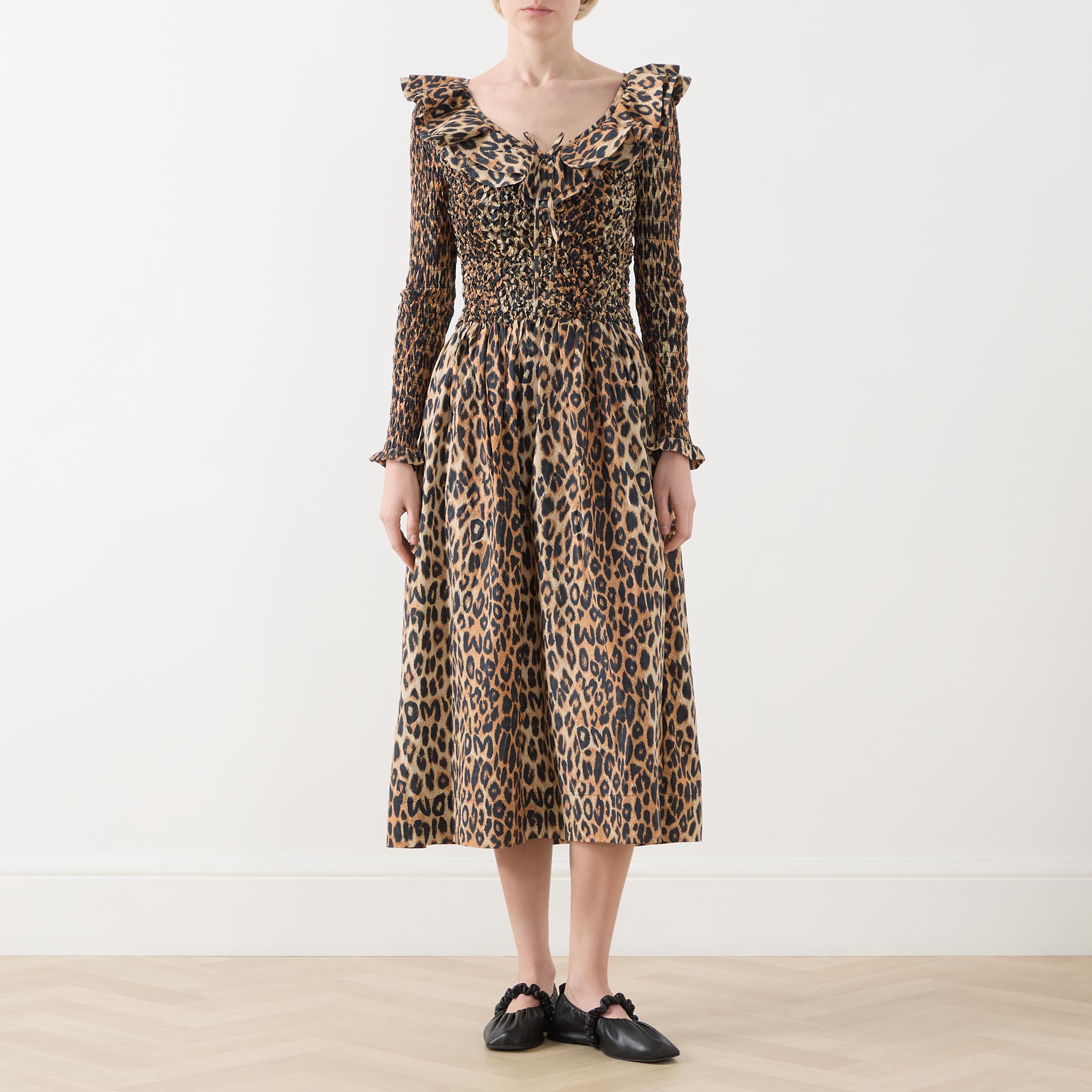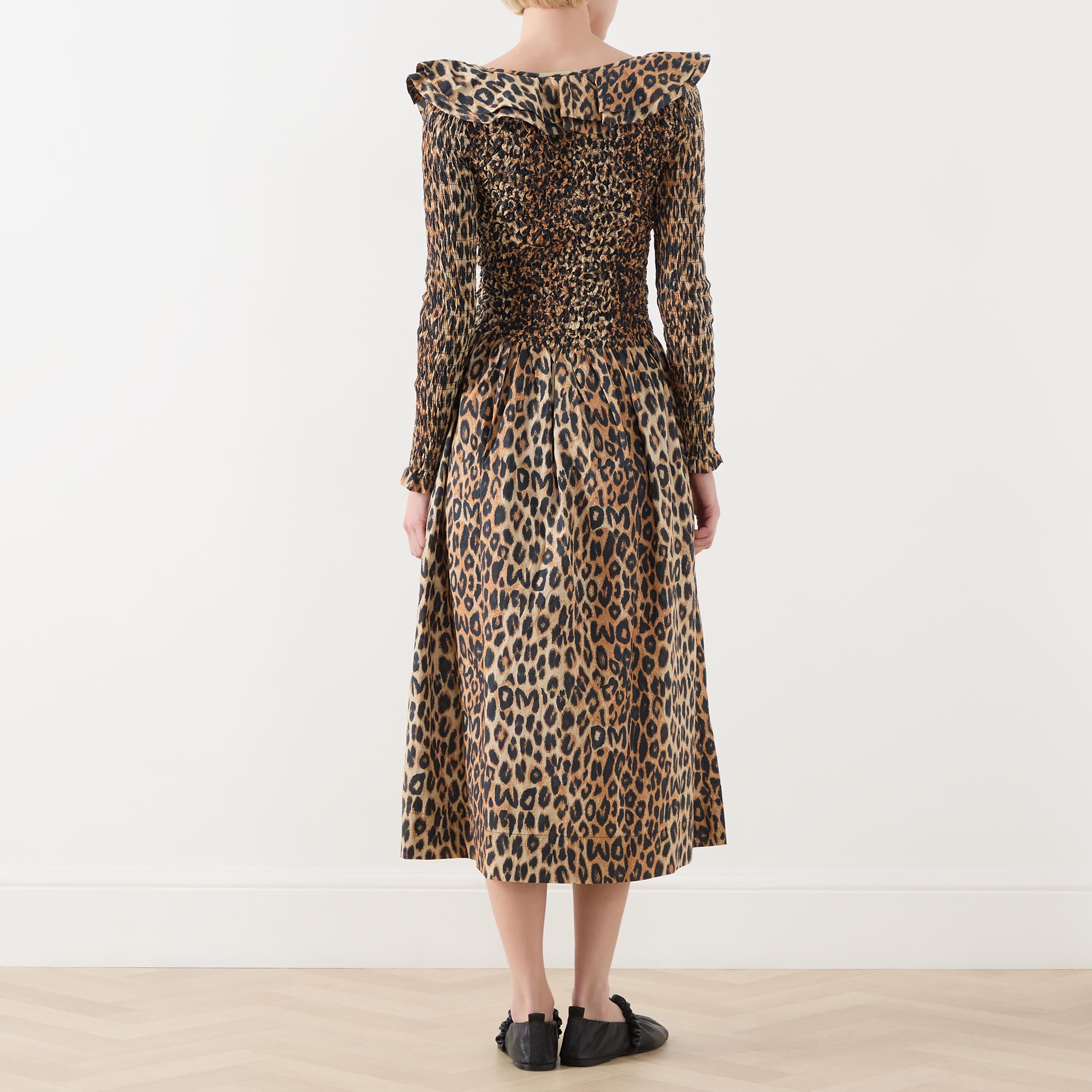 DAMSON MADDER Harper Shirred Leopard Print Dress