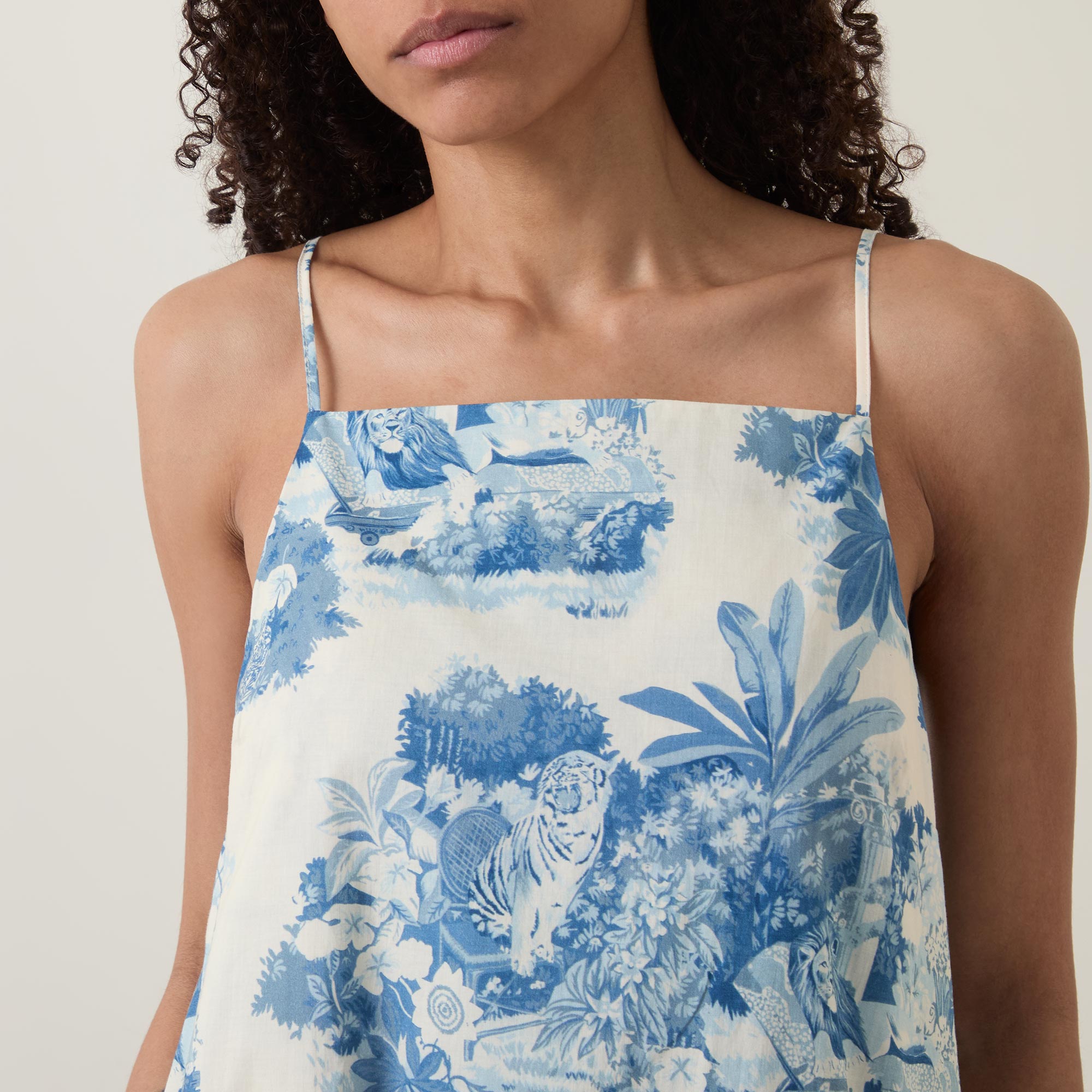 - Square neckline, dropped back, double-lined, long length, adjustable straps, hand-drawn luxodonta print