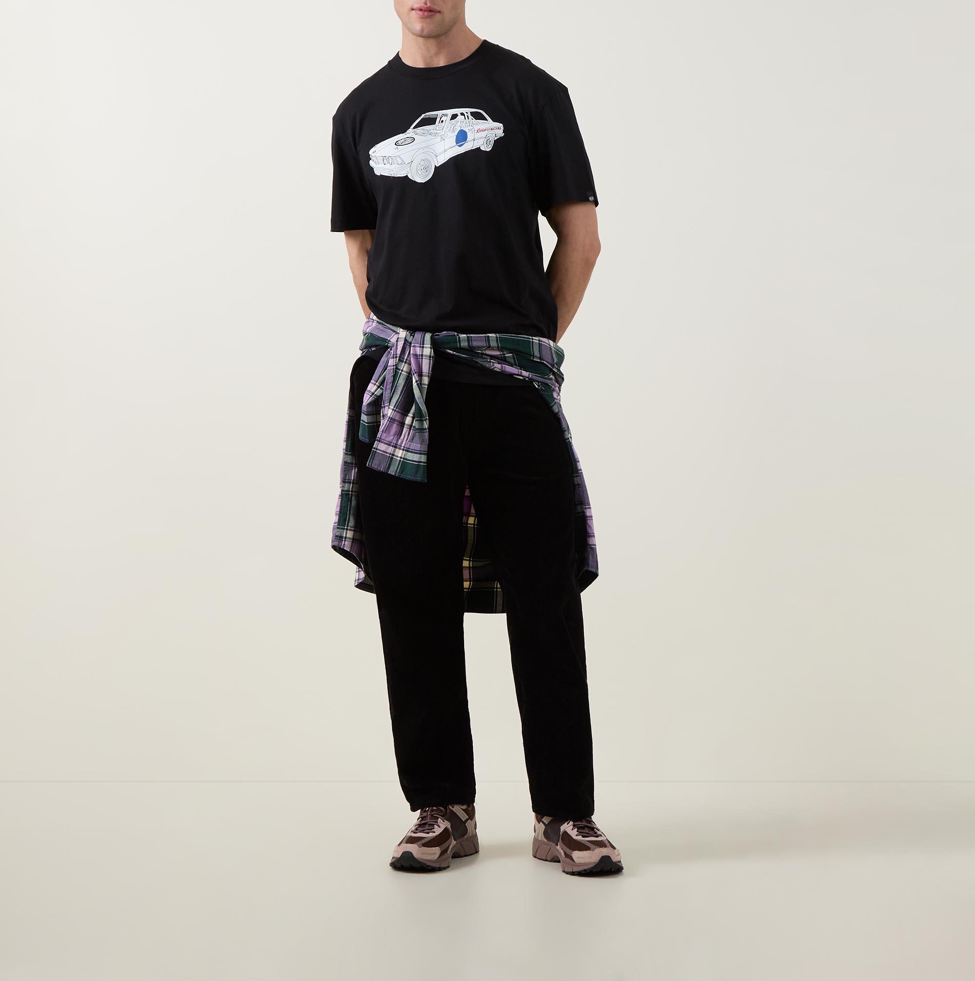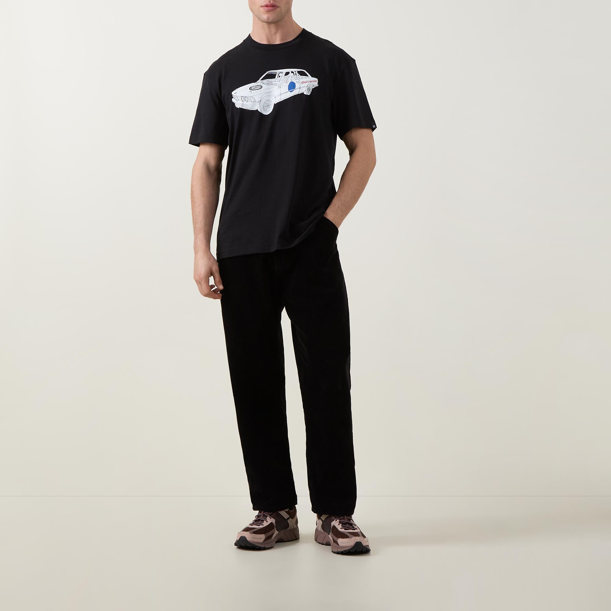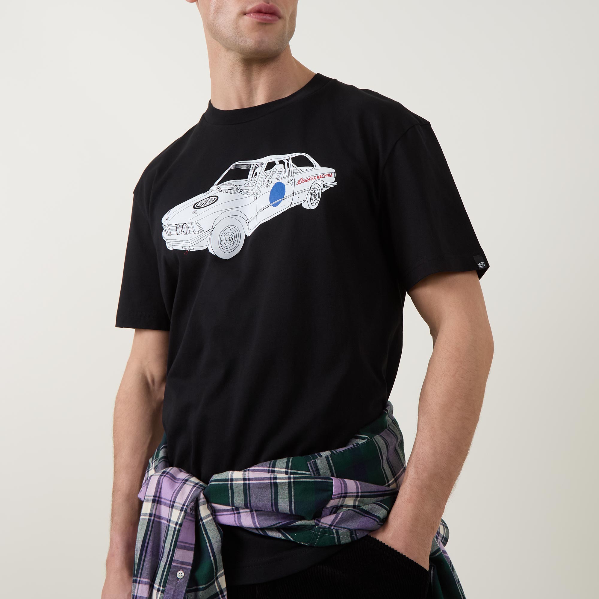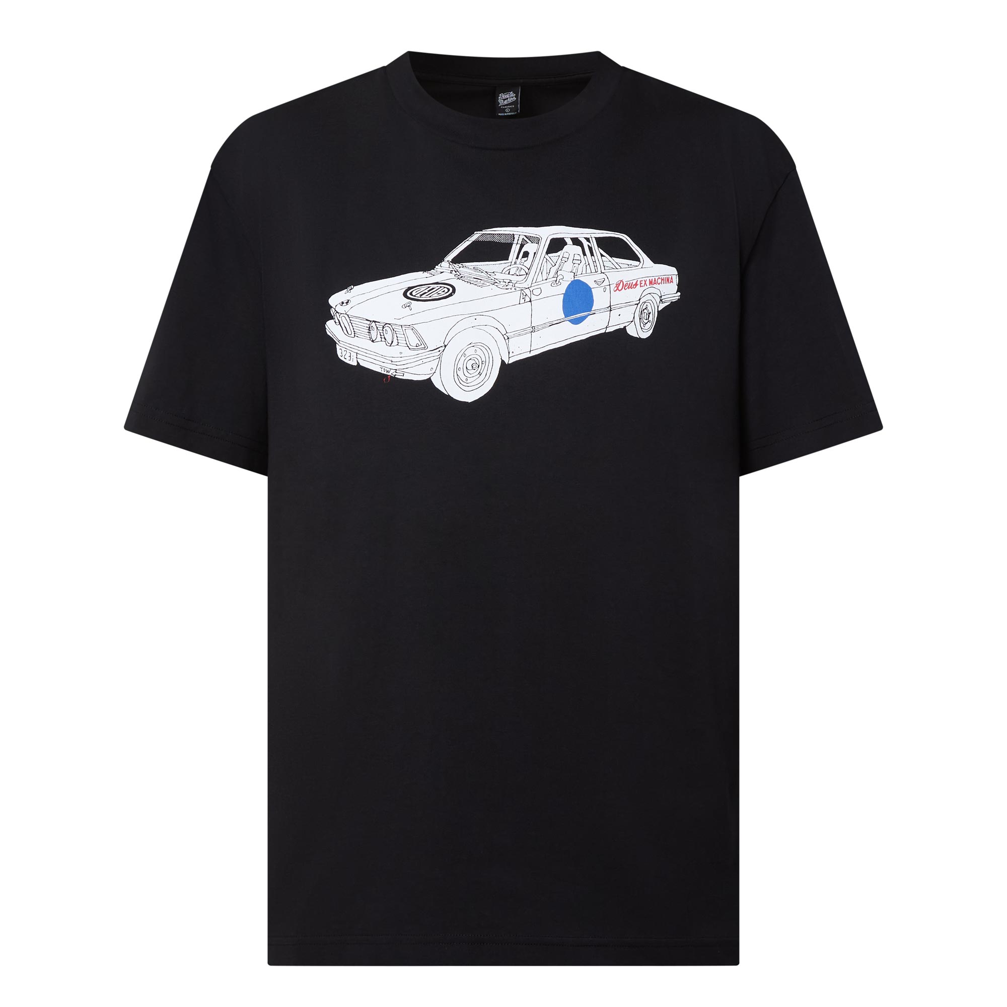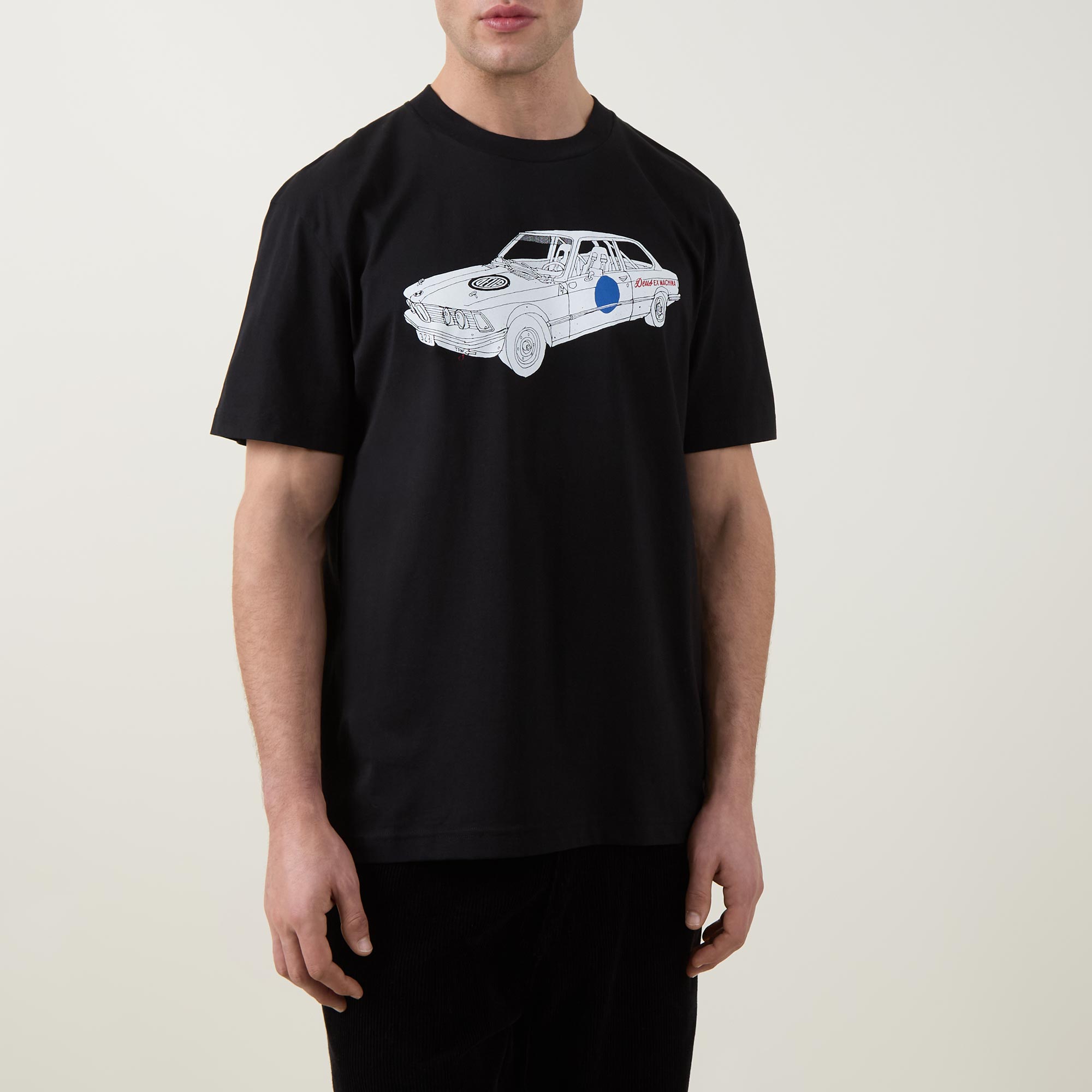 - Crew neckline, short sleeves, straight hem, tonal stitching, car graphic print on the front, rear logo design on the back