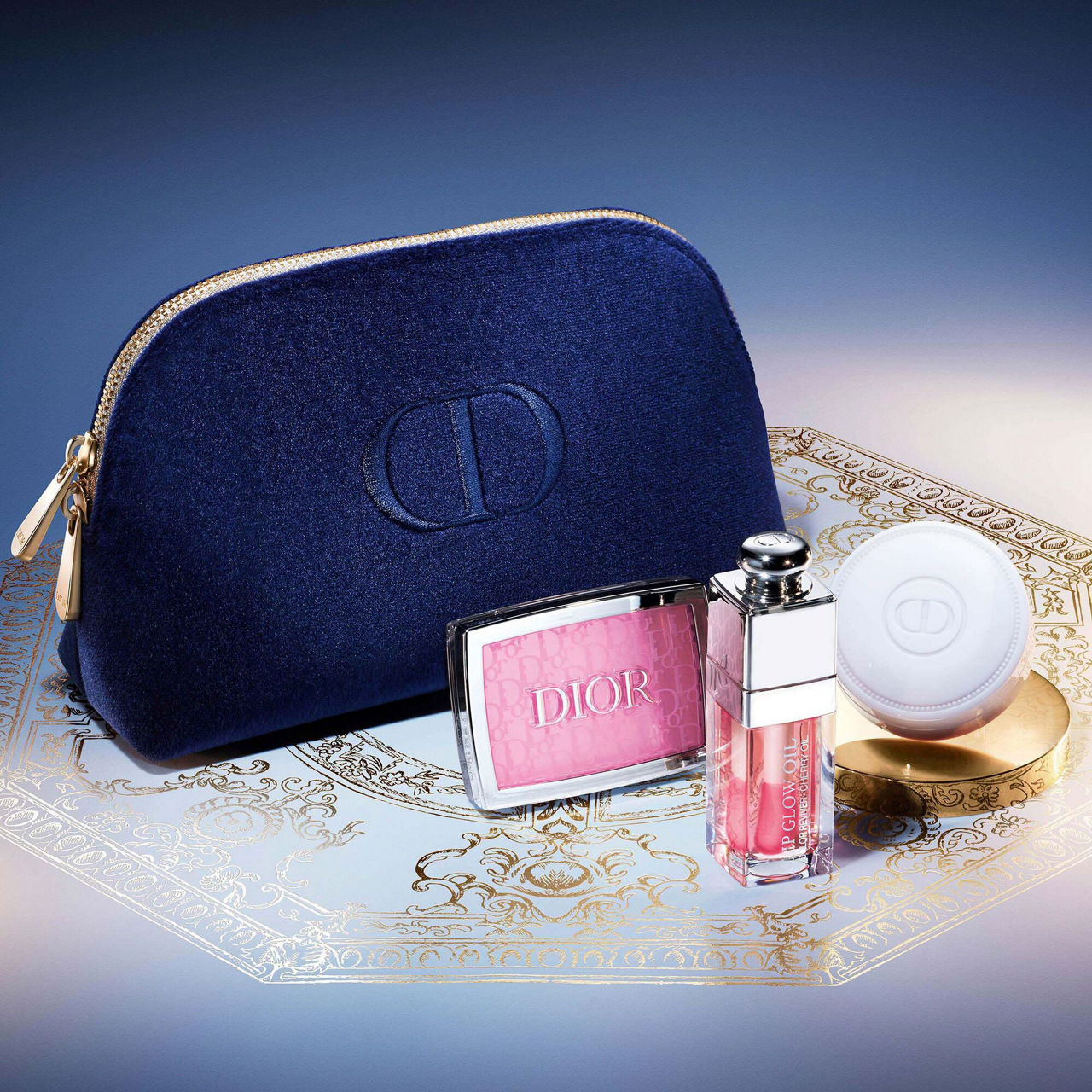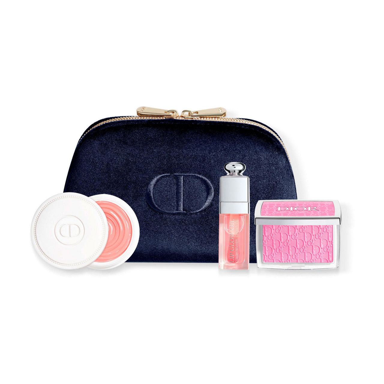 Give the holidays a Dior signature with this pouch of 3 makeup products by the House of Dior. Inside, the selection of creations for the lips, cheeks and nails was designed to compose a natural glow ritual: