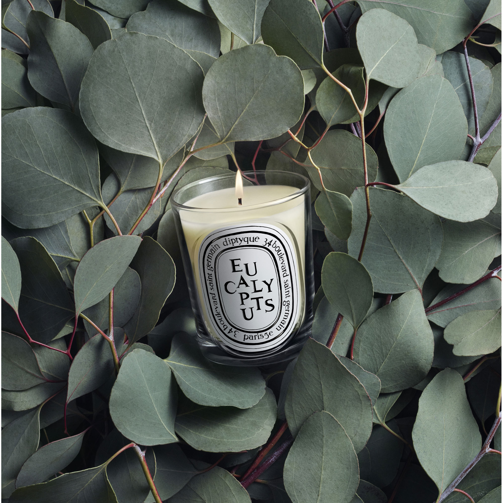 Description: A thicket of eucalyptus trees, their trunks stretching skywards. Leaves crushed gently in the hand, silvery and aromatic. Green and lively, subtly camphorous and endlessly invigorating. The Eucalyptus candle releases the full fragrance of an uncommon freshness into the space.
