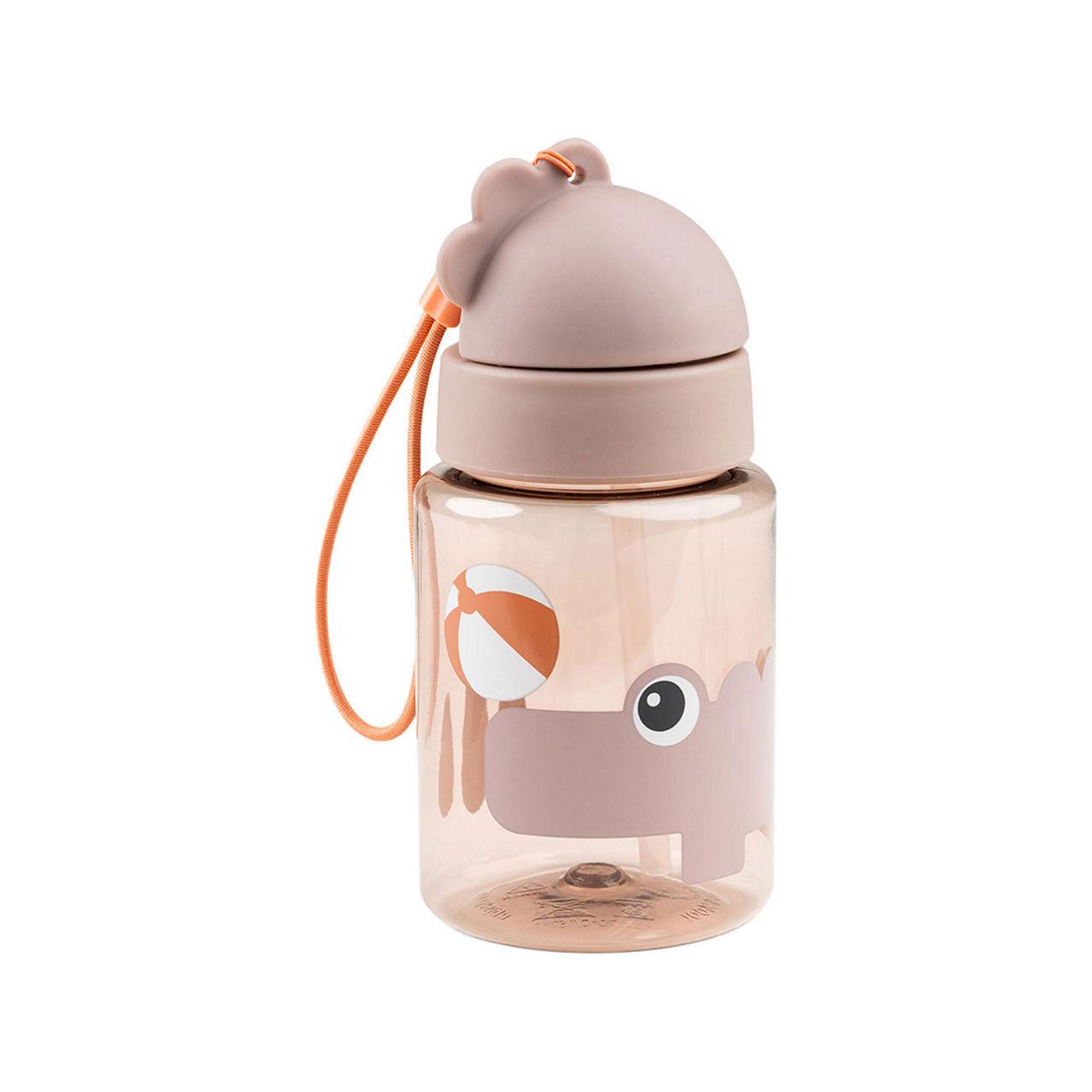 The powder transparent bottle has a practical, foldable straw, close the lid and the straw hides safely inside stopping the liquid from spilling, the durable bottle is perfect for preschool, school and outdoor adventures, the bottle is a cool green colour with a motif of croco playing with a ball.
