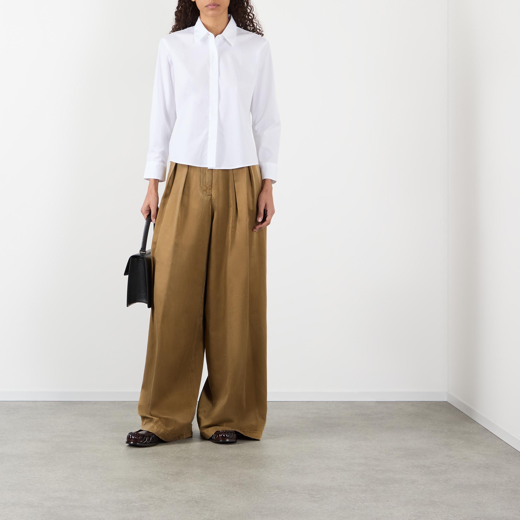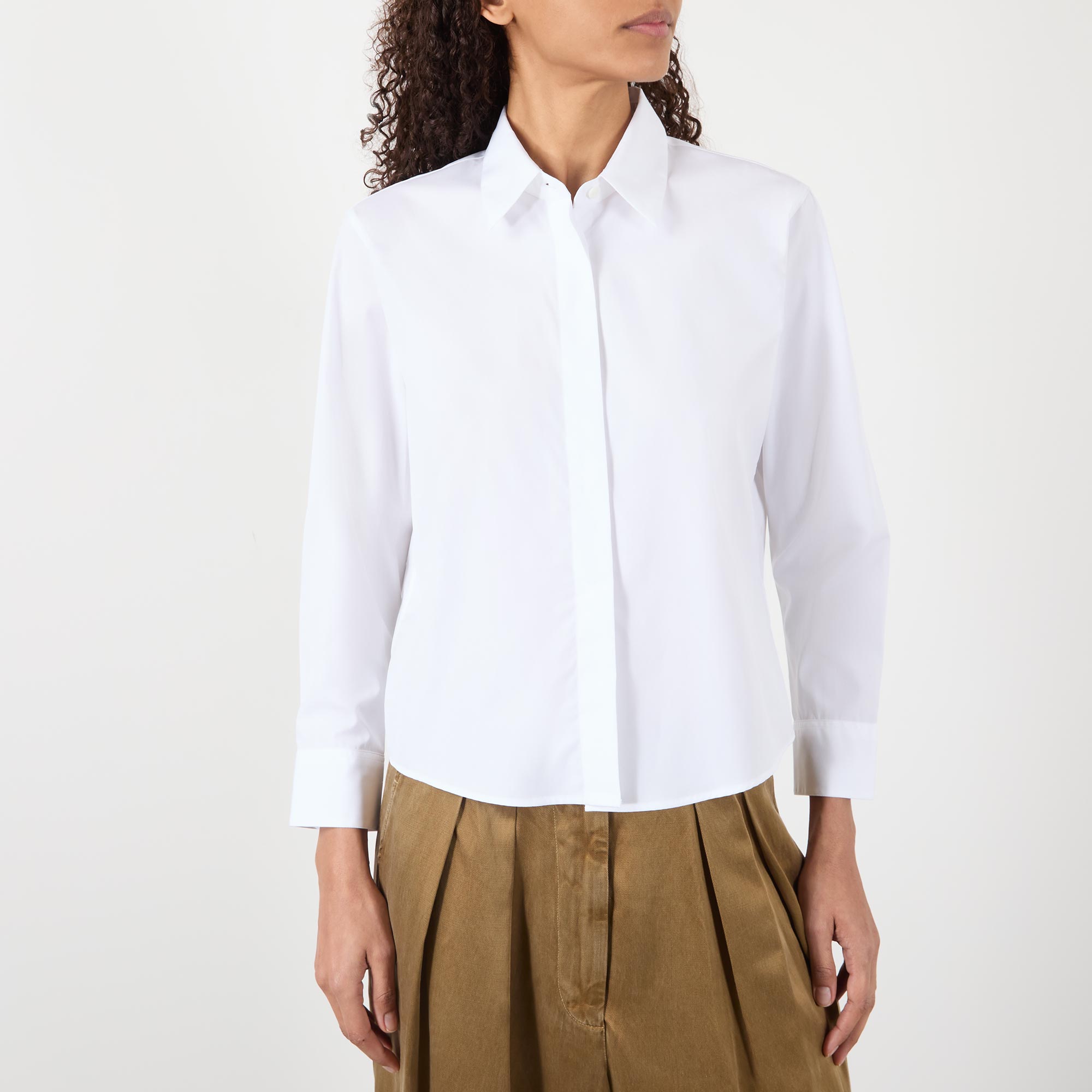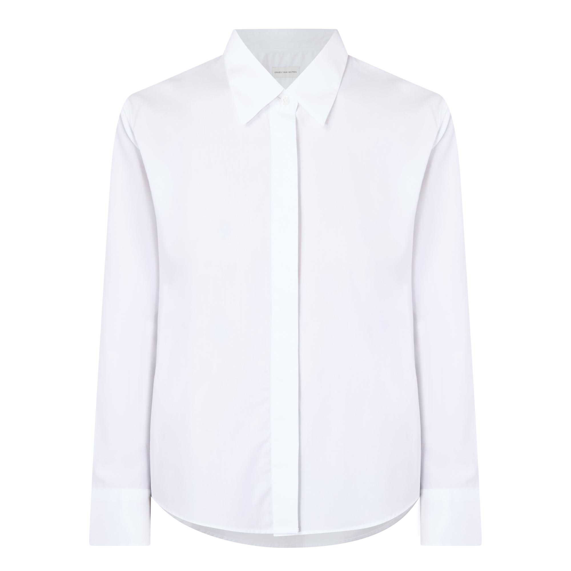 Dries Van Noten is celebrated for its relaxed silhouettes, and the SS26 collection continues this signature approach. This shirt, crafted from breathable cotton in a relaxed fit, features a classic point collar and long sleeves, with a concealed button placket for a sleek, polished finish. Single-button cuffs and a curved hemline complete the design, making it ideal for tucking into your favourite skirt or trousers.