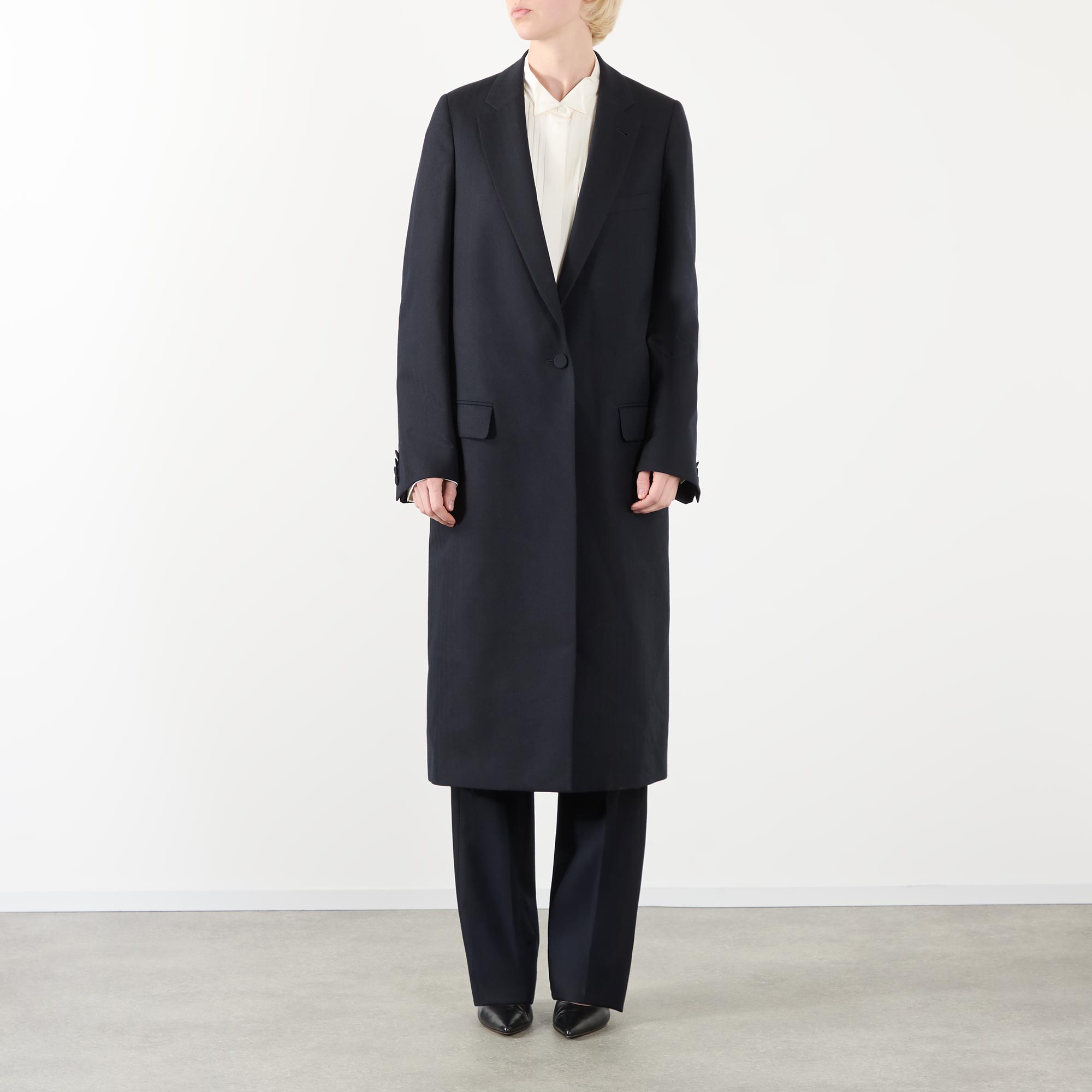 - Mid-length, long sleeves, button fastenings, single-breasted, notched lapels