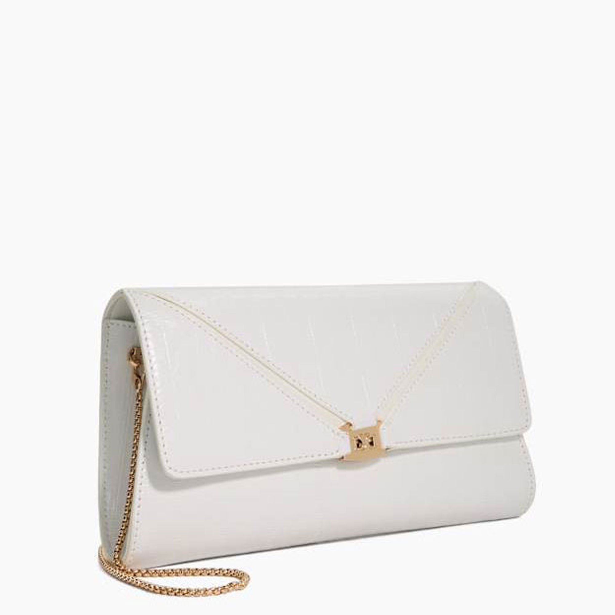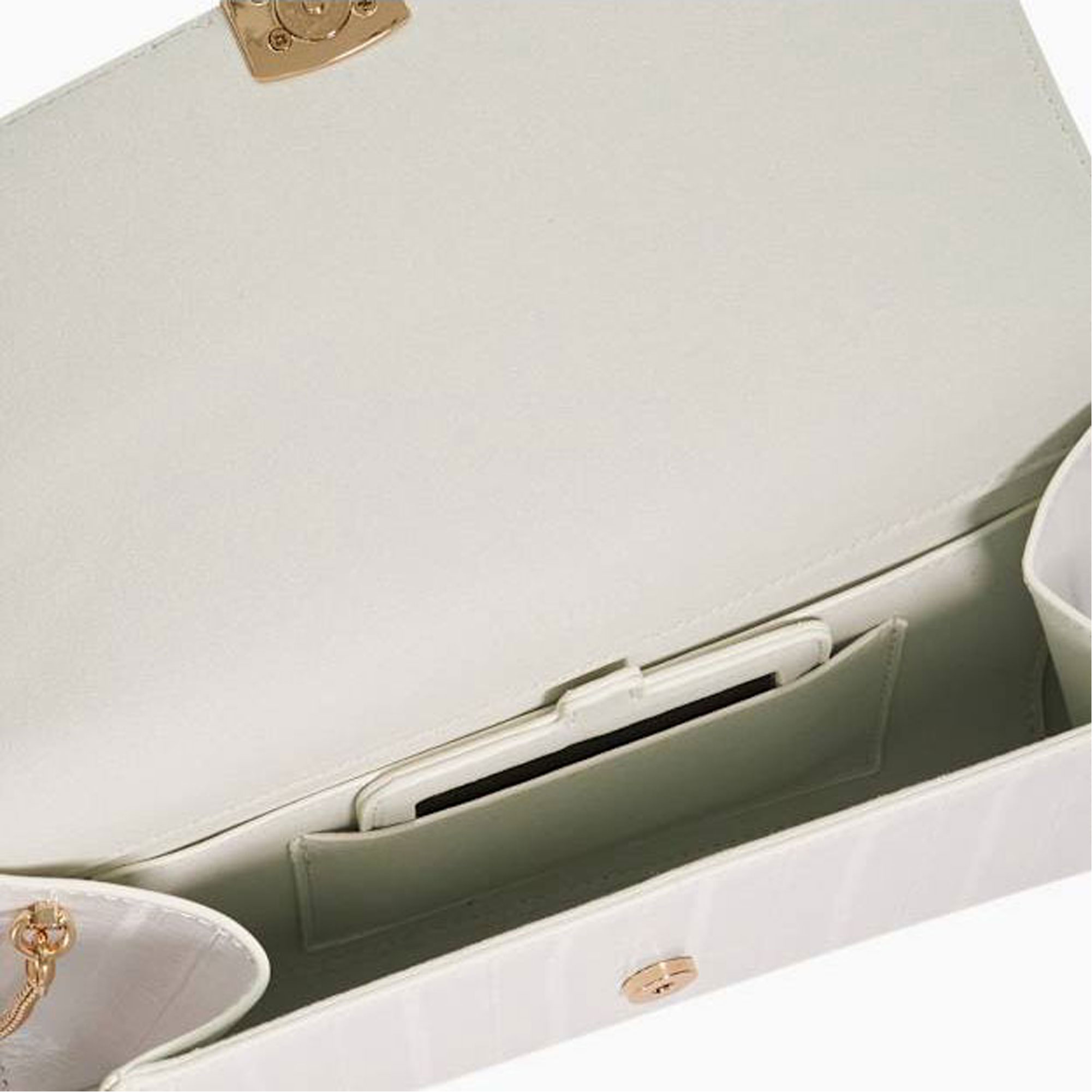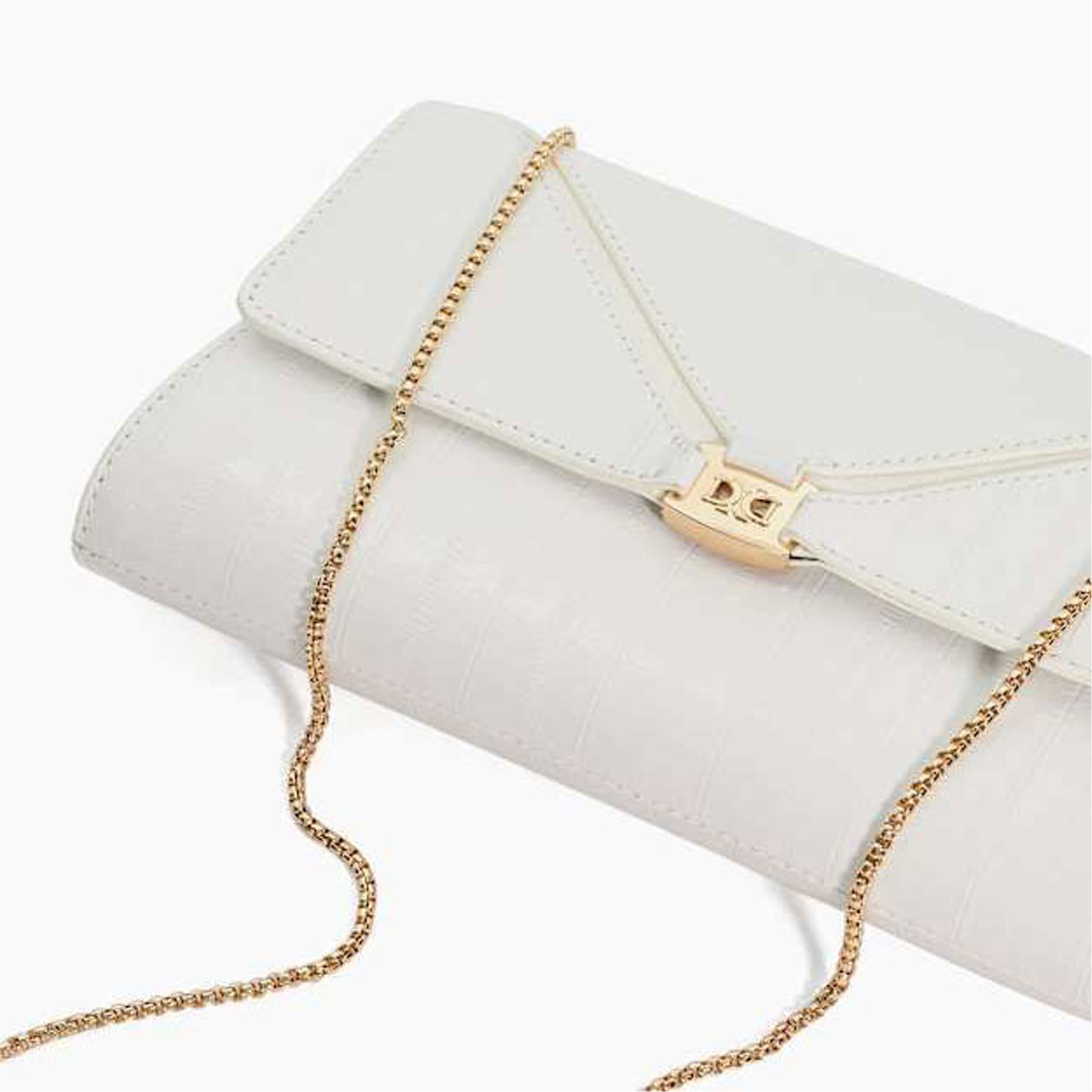 - Logo-embossed magnetic clasp, detachable gold-tone chain handle