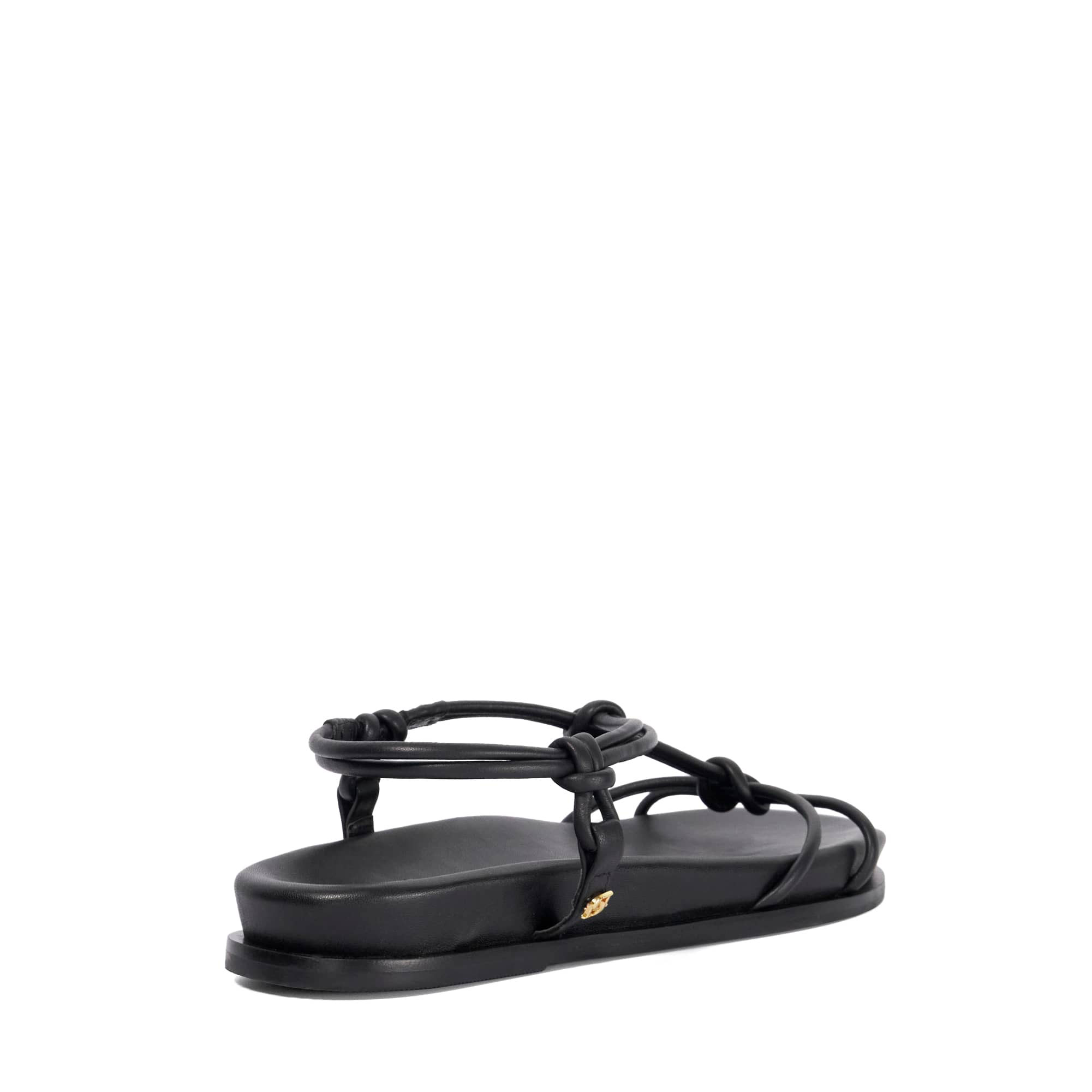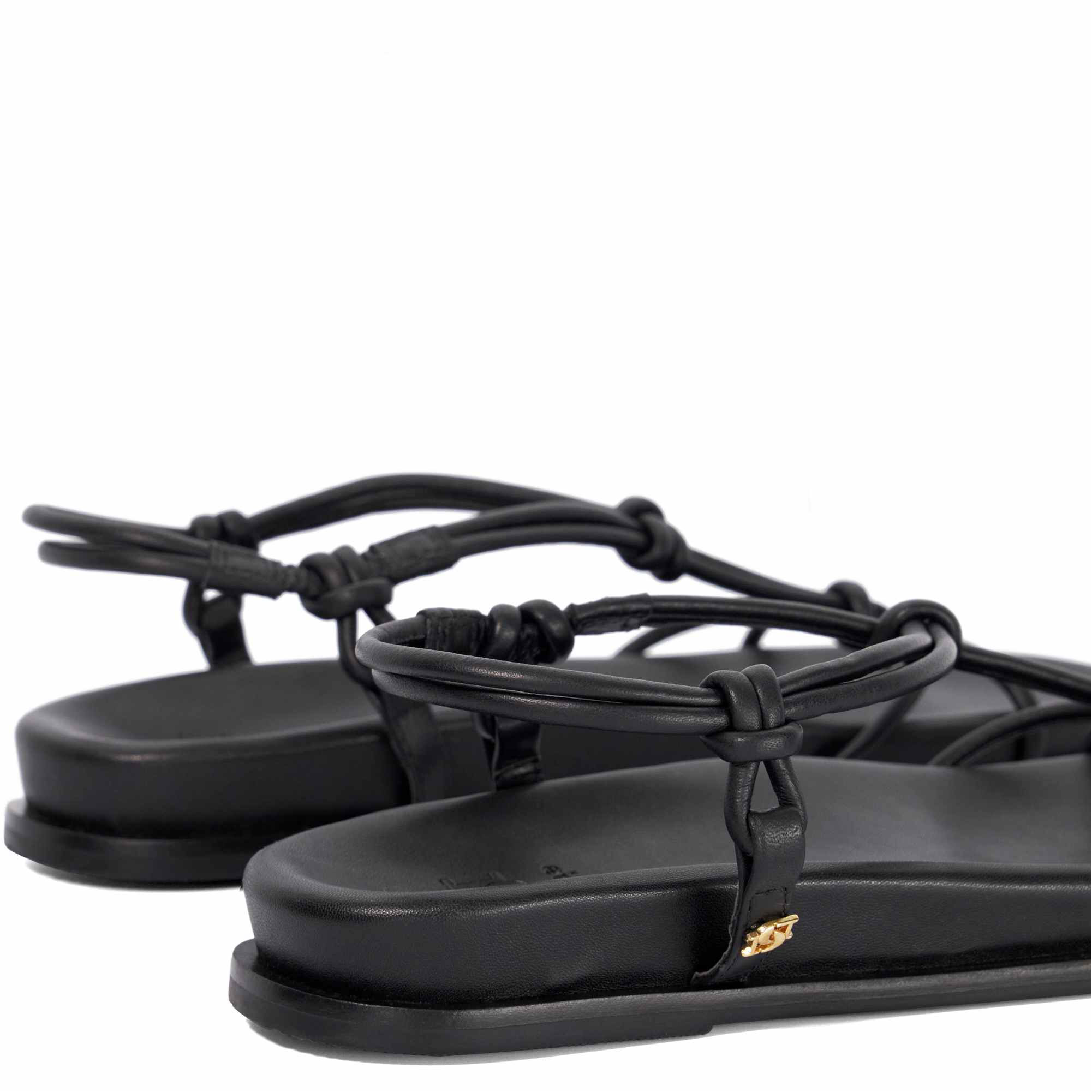 - Leather upper, knotted strap design, ergonomic footbed, flat heel, sandal toe