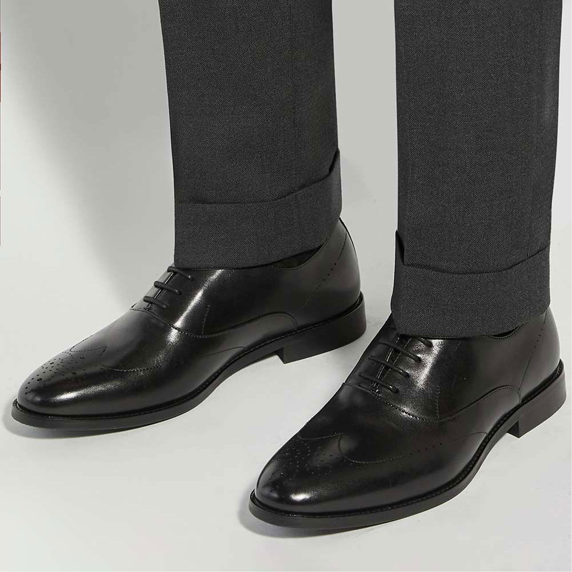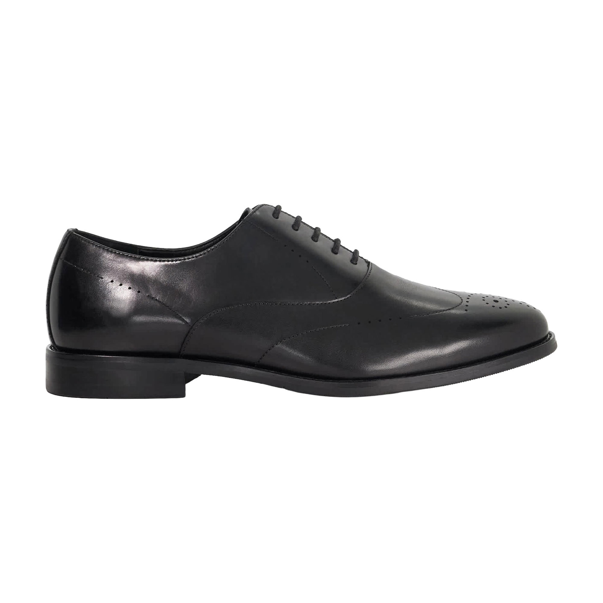 - Lace-up fastening, leather, round toe, stacked heel, brogue detailing, hybrid silhouette