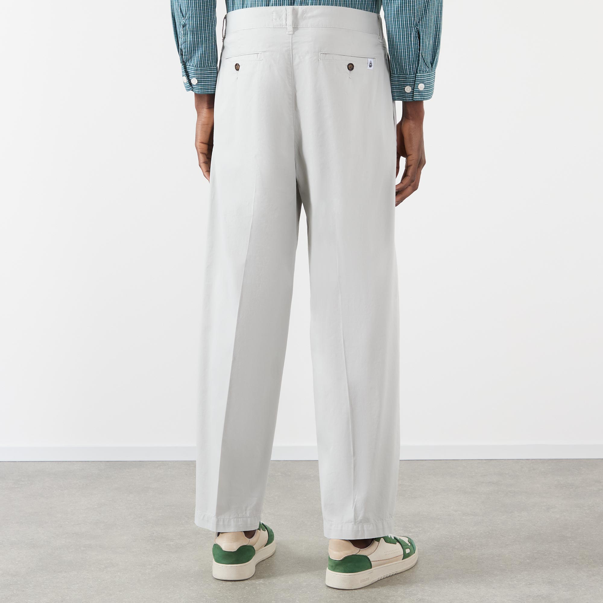 - Button and fly zip fastening, belt loops, side entry pockets, buttoned rear jet pockets, pleated detail to the front, logo detail