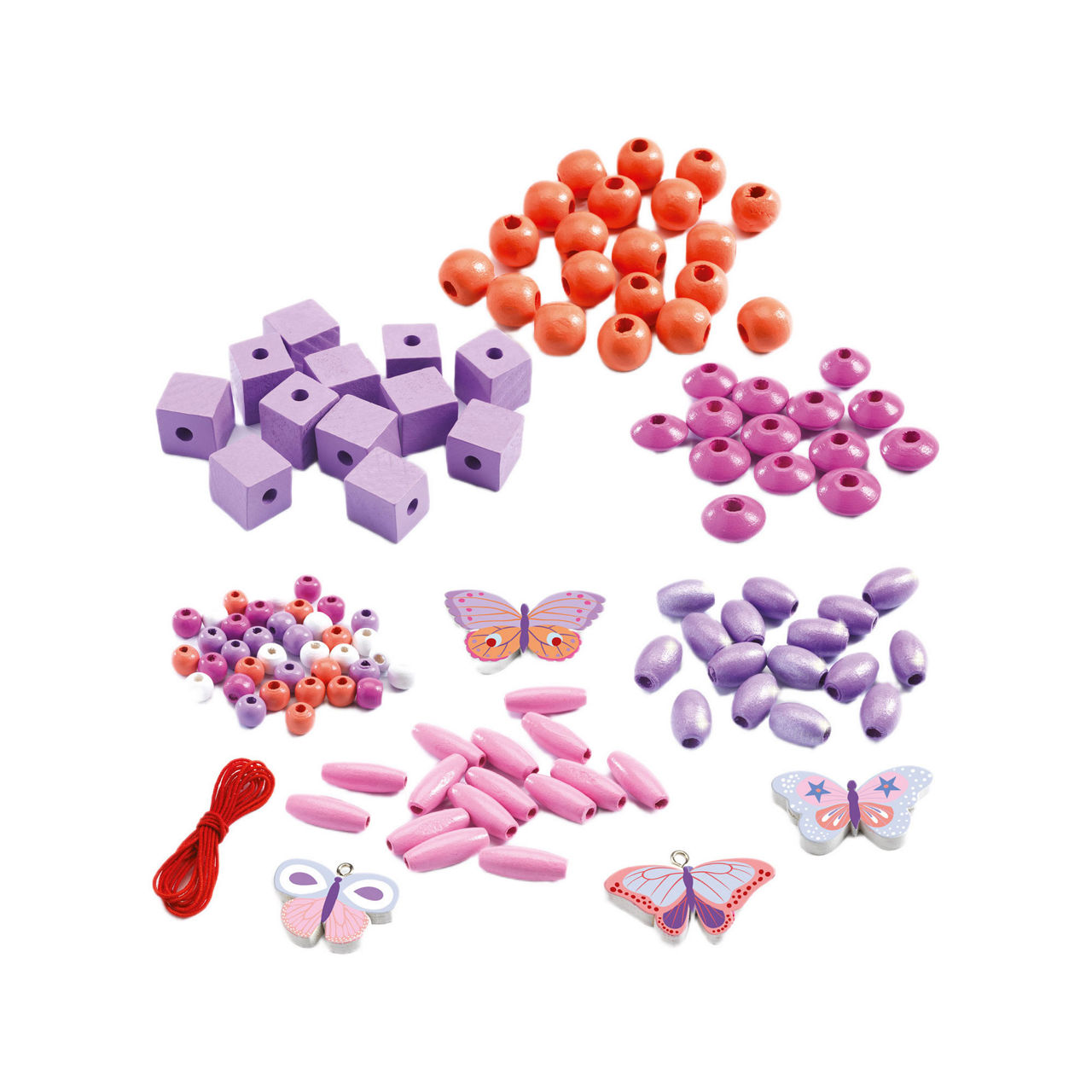 The “Wooden beads, butterflies” set contains over 450 beads that are perfect for making pretty jewellery. They come in all sorts of colours and shapes, carefully designed to produce amazing results every time. Children thread the beads onto the cord however they choose to make pretty necklaces and bracelets.
