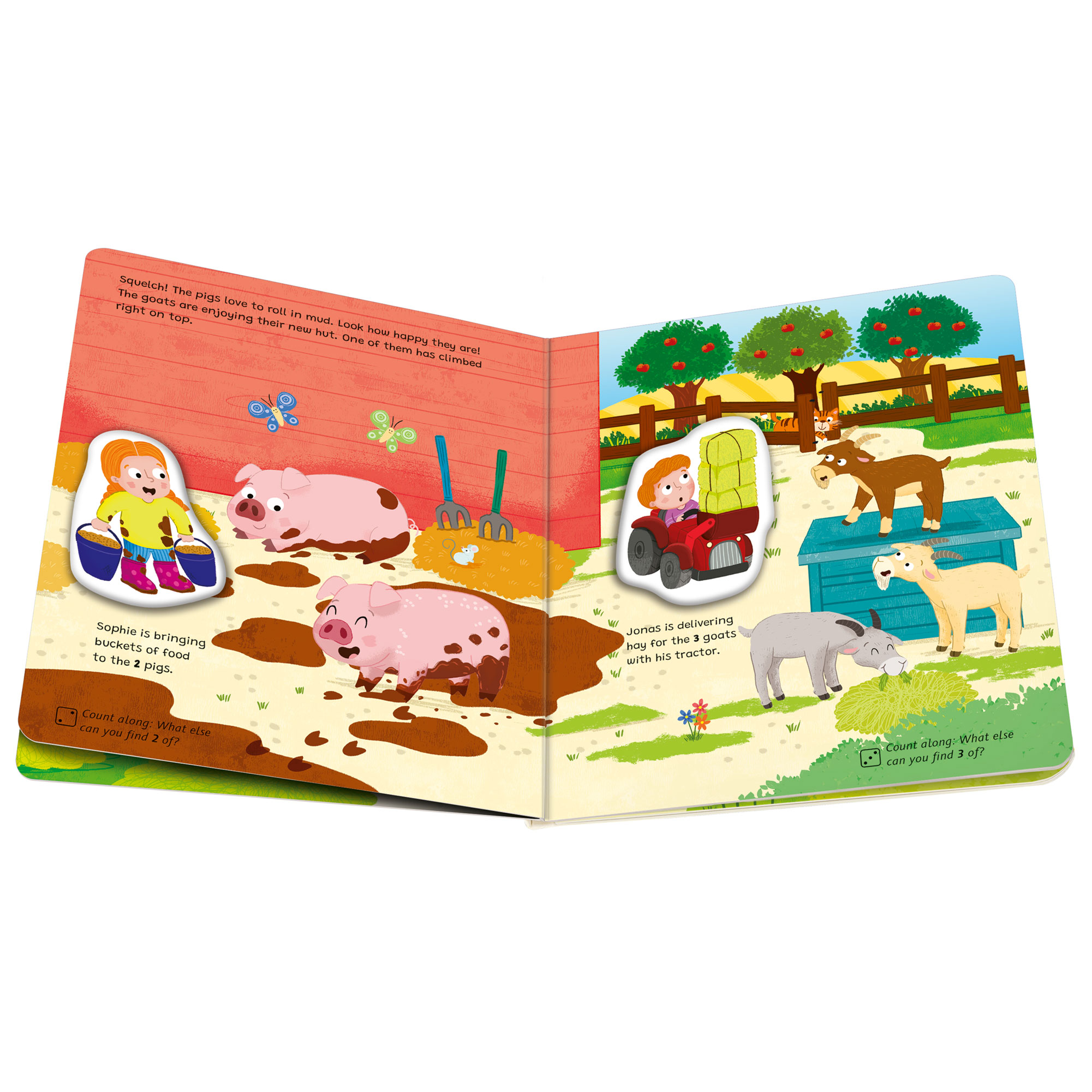 - Magnetic pages, six large magnets, numbers theme, learning activity, practical compartment to keep the magnets safe