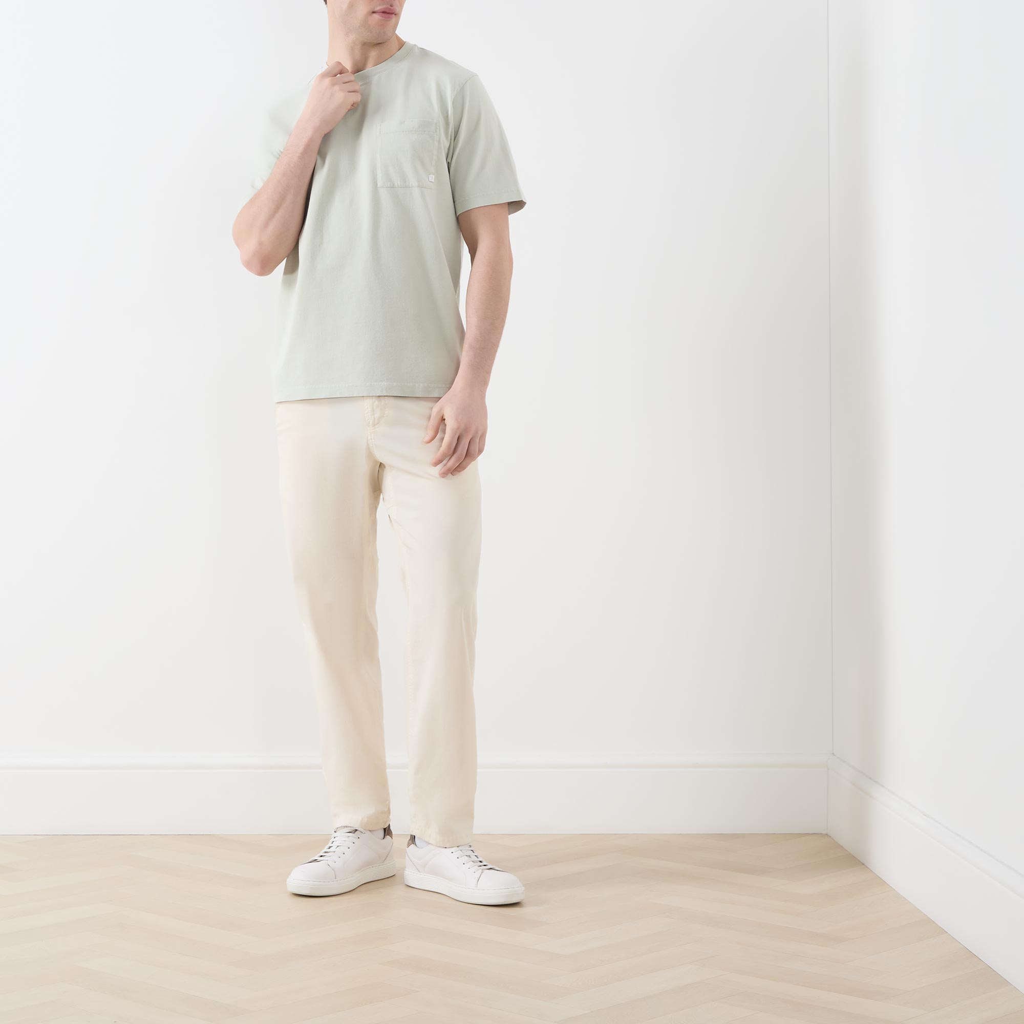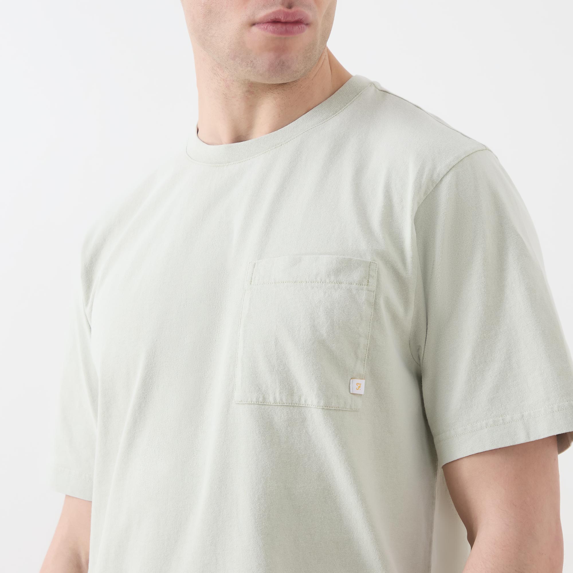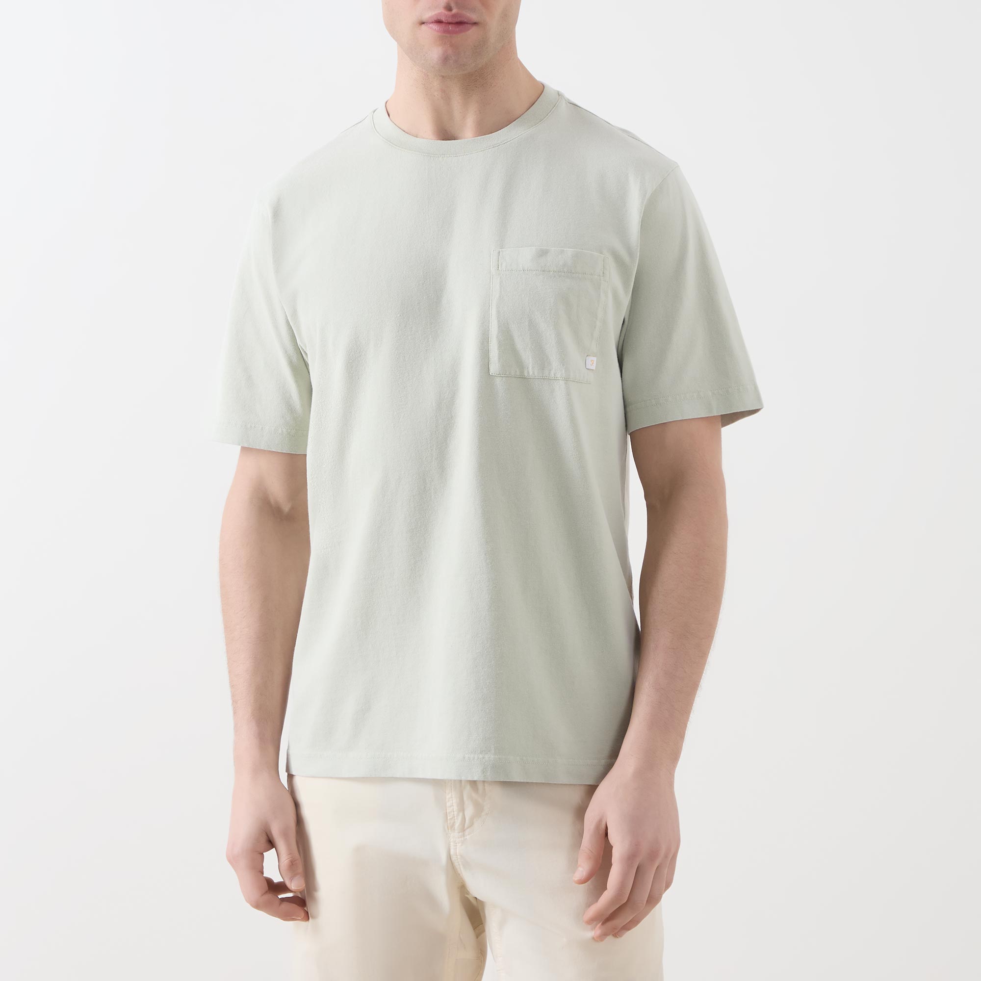 • Garment-dyed, round neck, short sleeves, straight hemline, logo detail, chest pocket