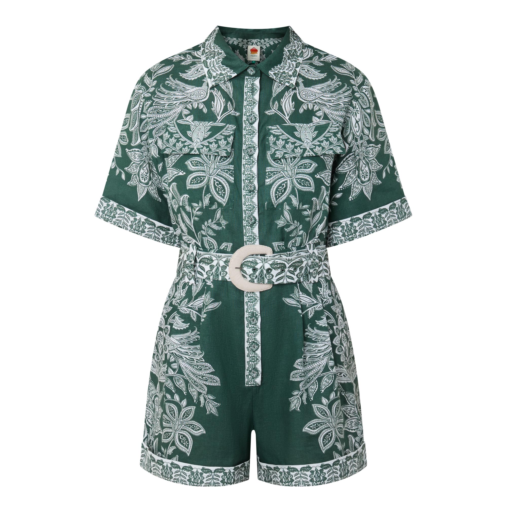 FARM RIO Miranda Embroidered Linen Playsuit