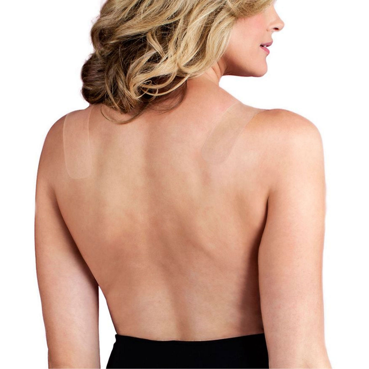• Lift and create cleavage with this full busted, backless, plunge adhesive bra. Transparent and convertible straps provide over the shoulder or halter styling options.