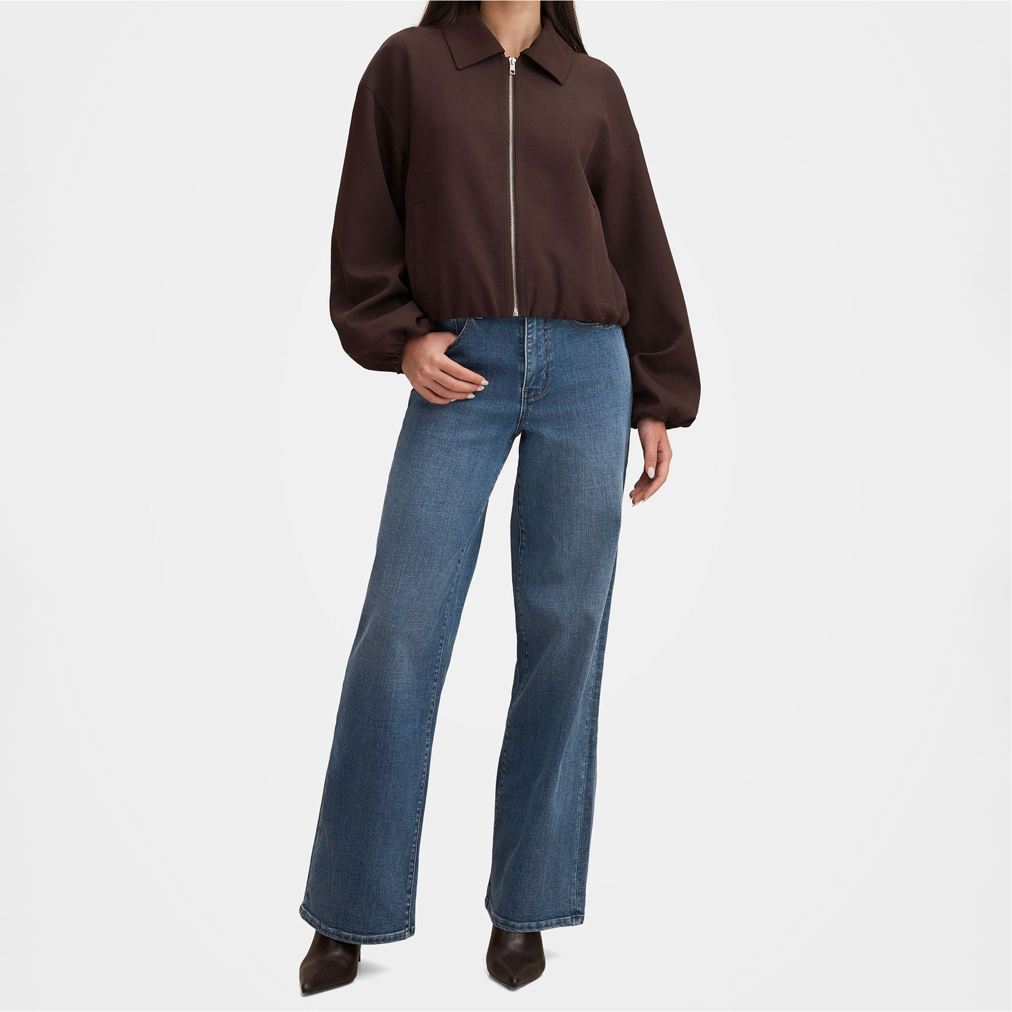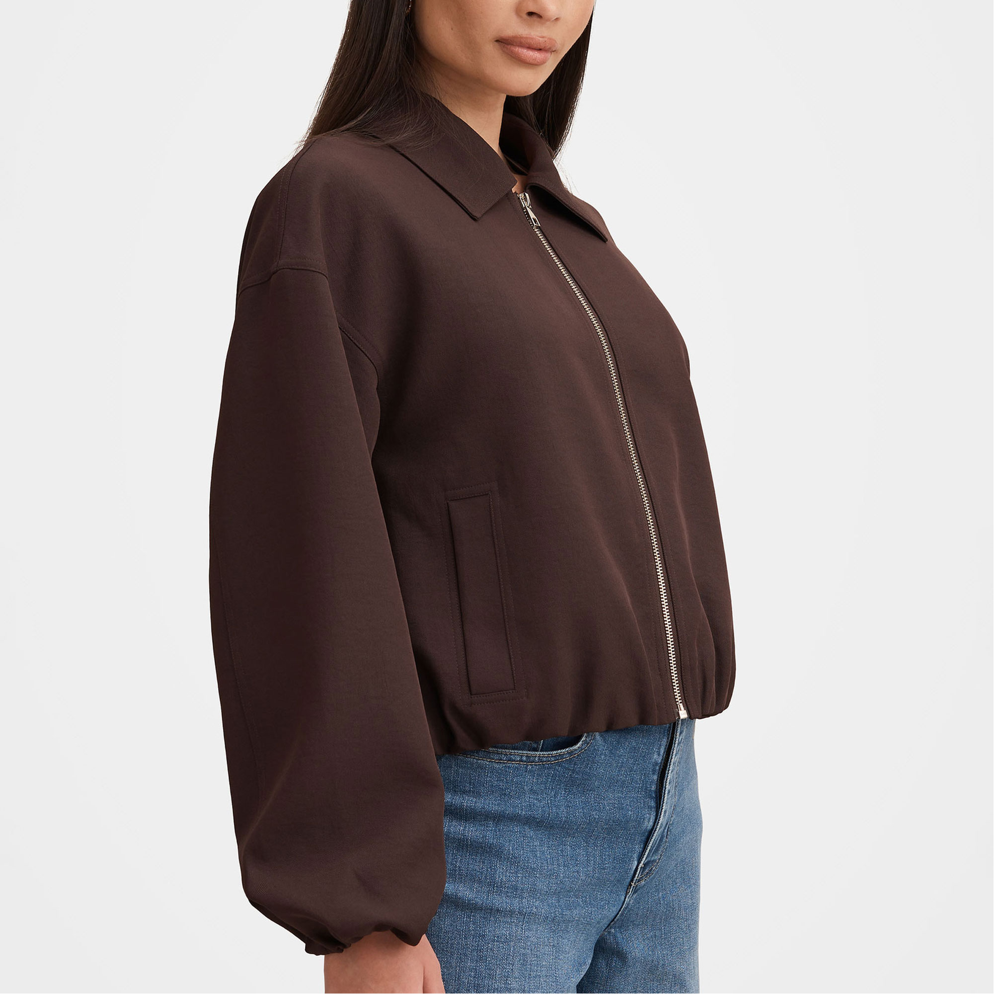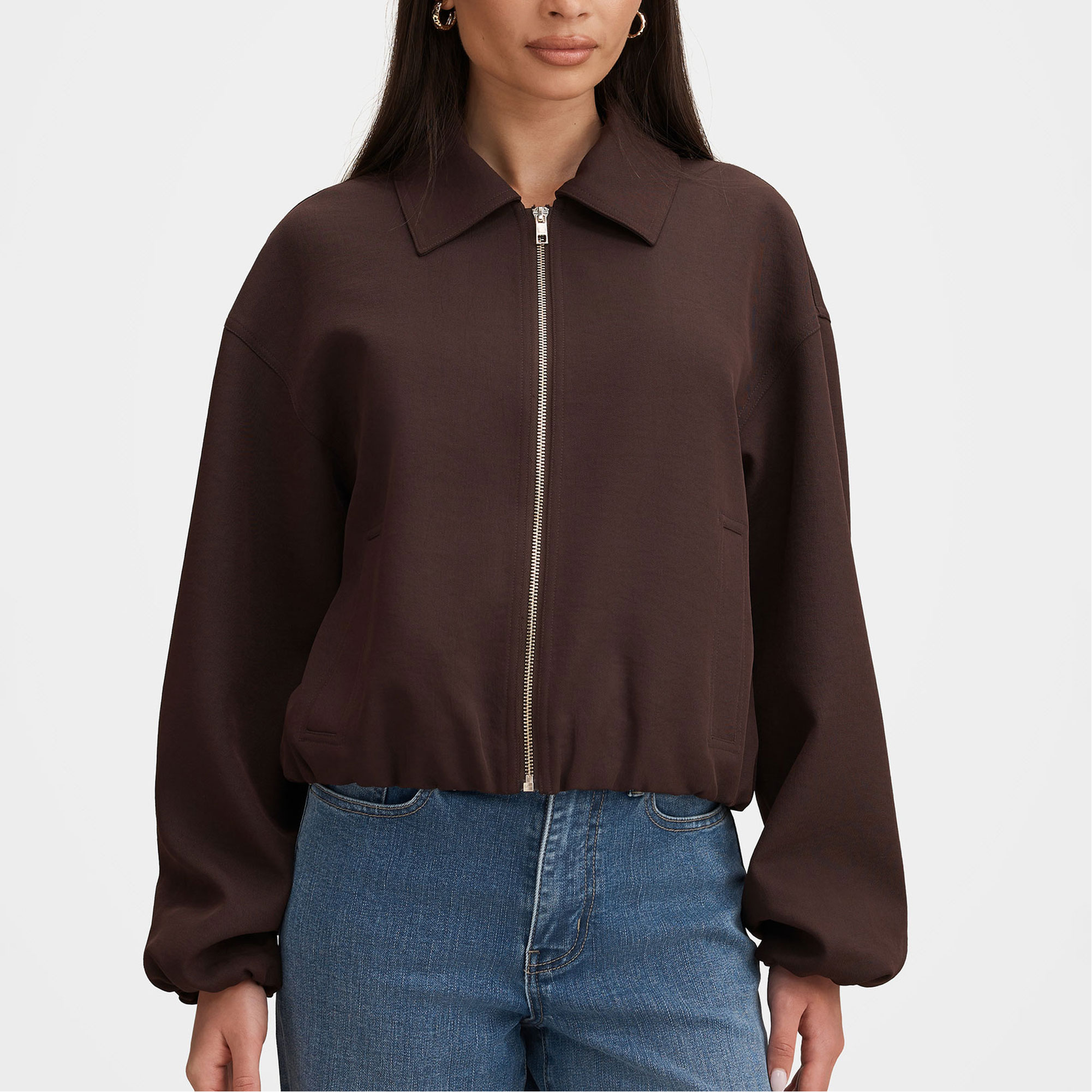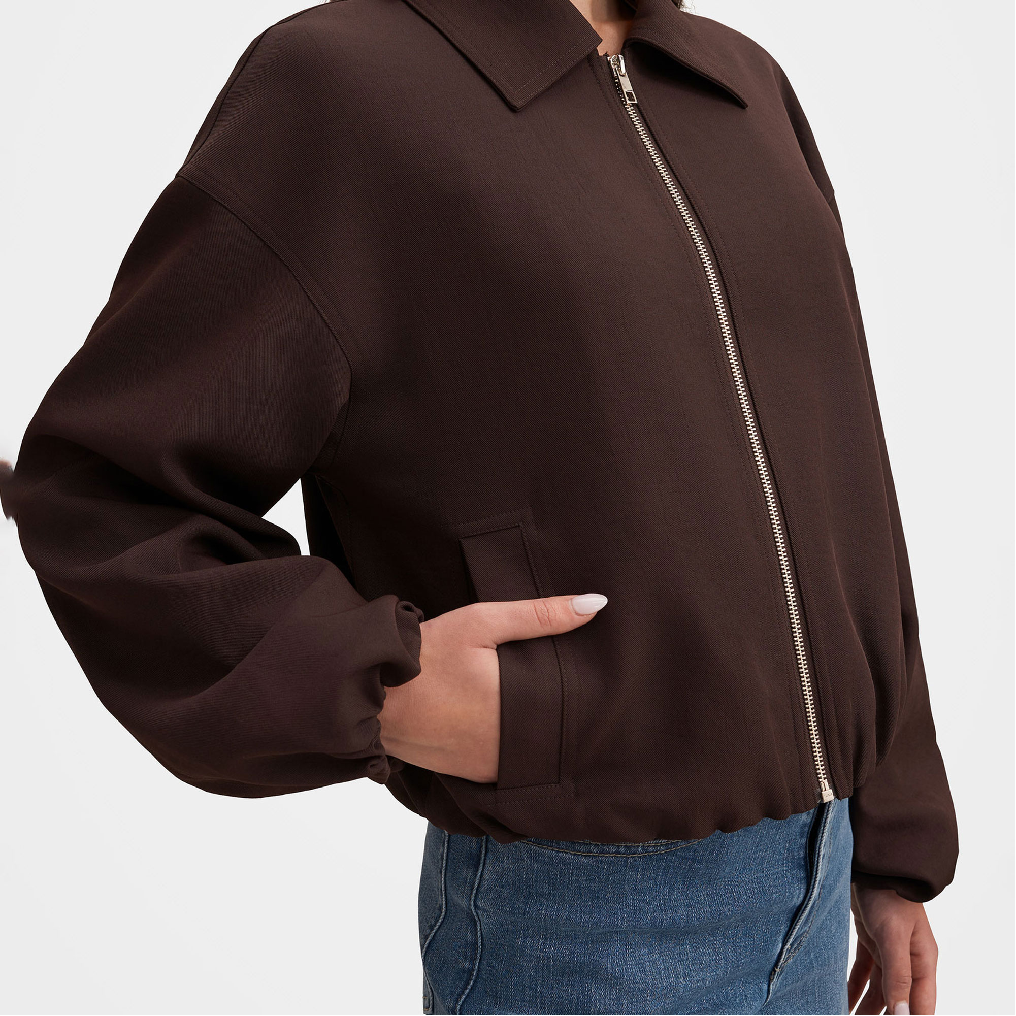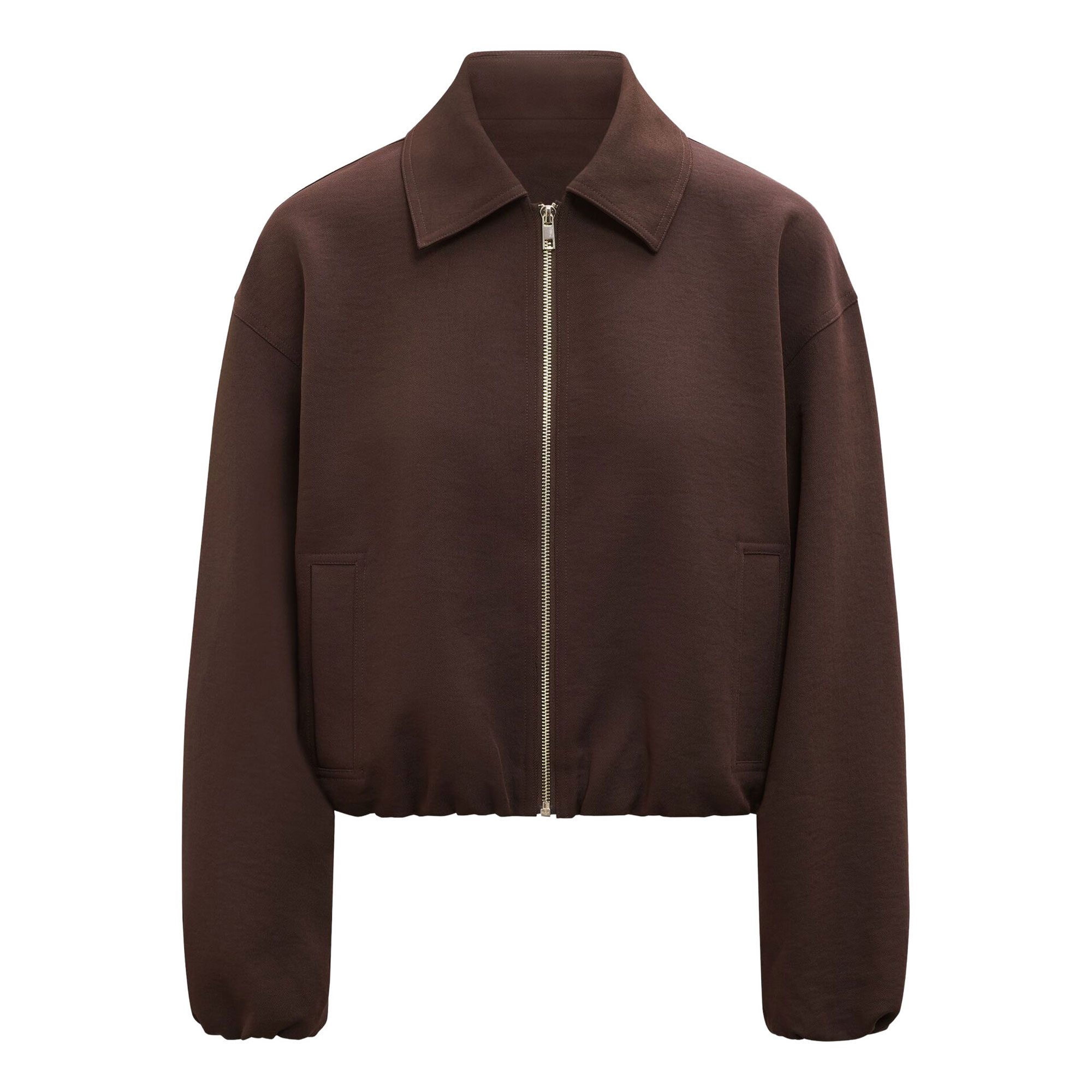 - Regular fit, classic fold-down collar, relaxed sleeves with elastic cuffs, slip-in hand pockets at sides, elasticated hemline, zip-up front, lined