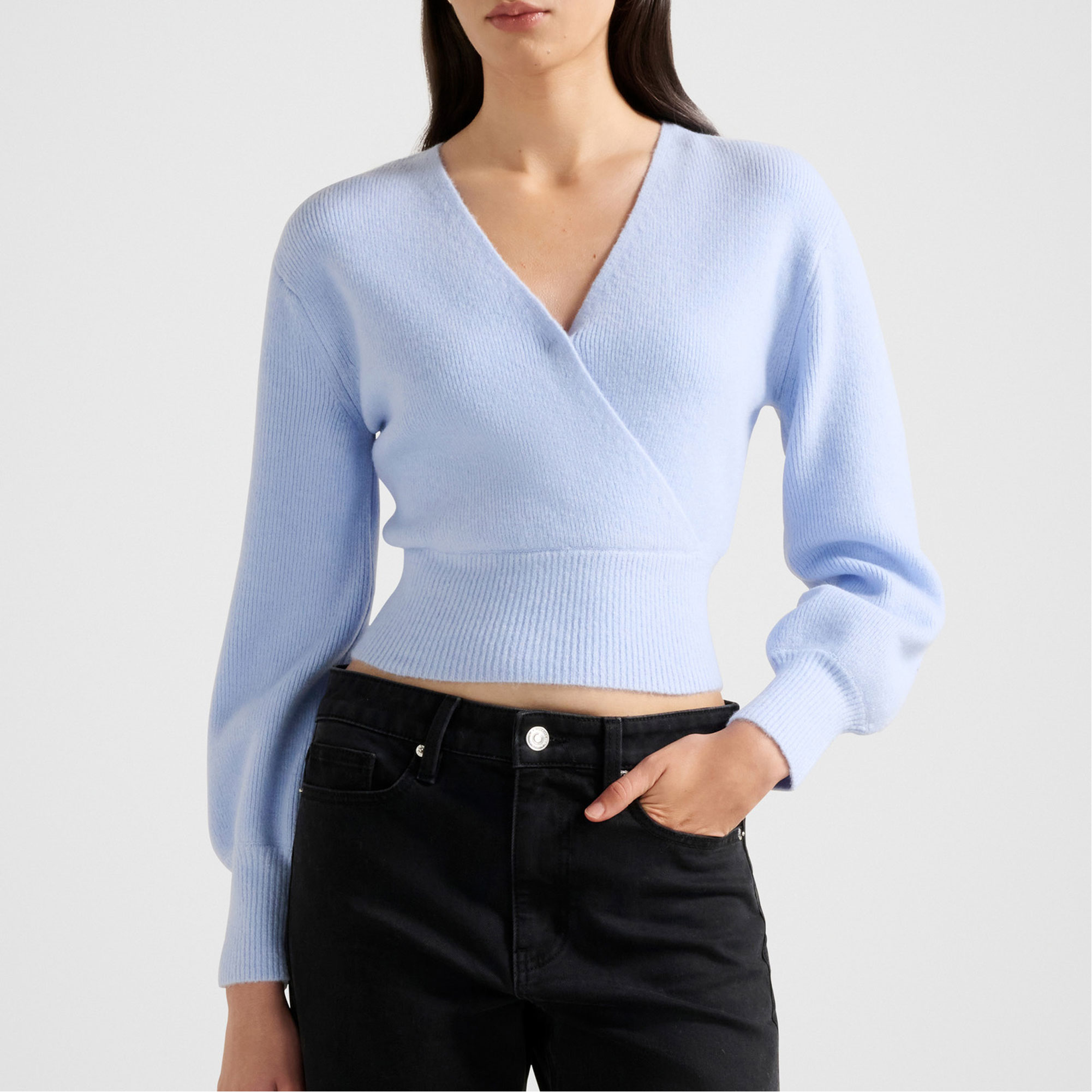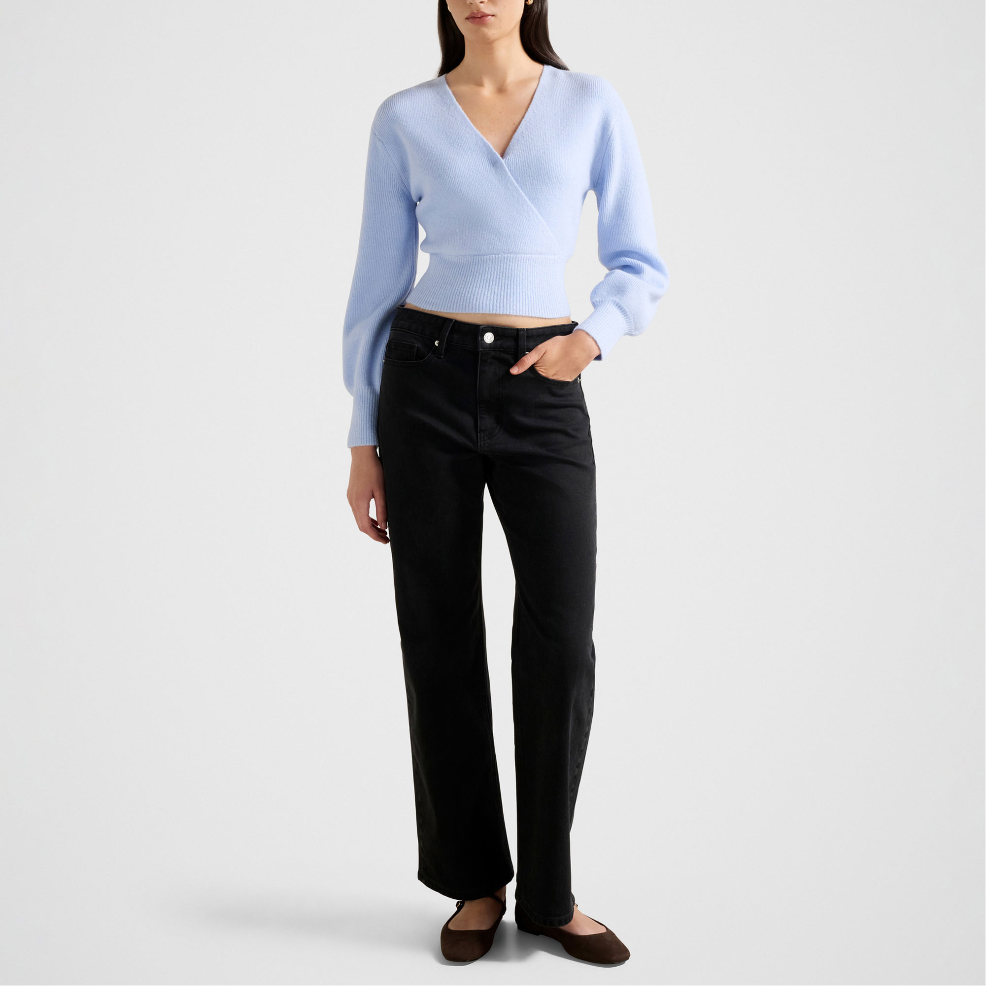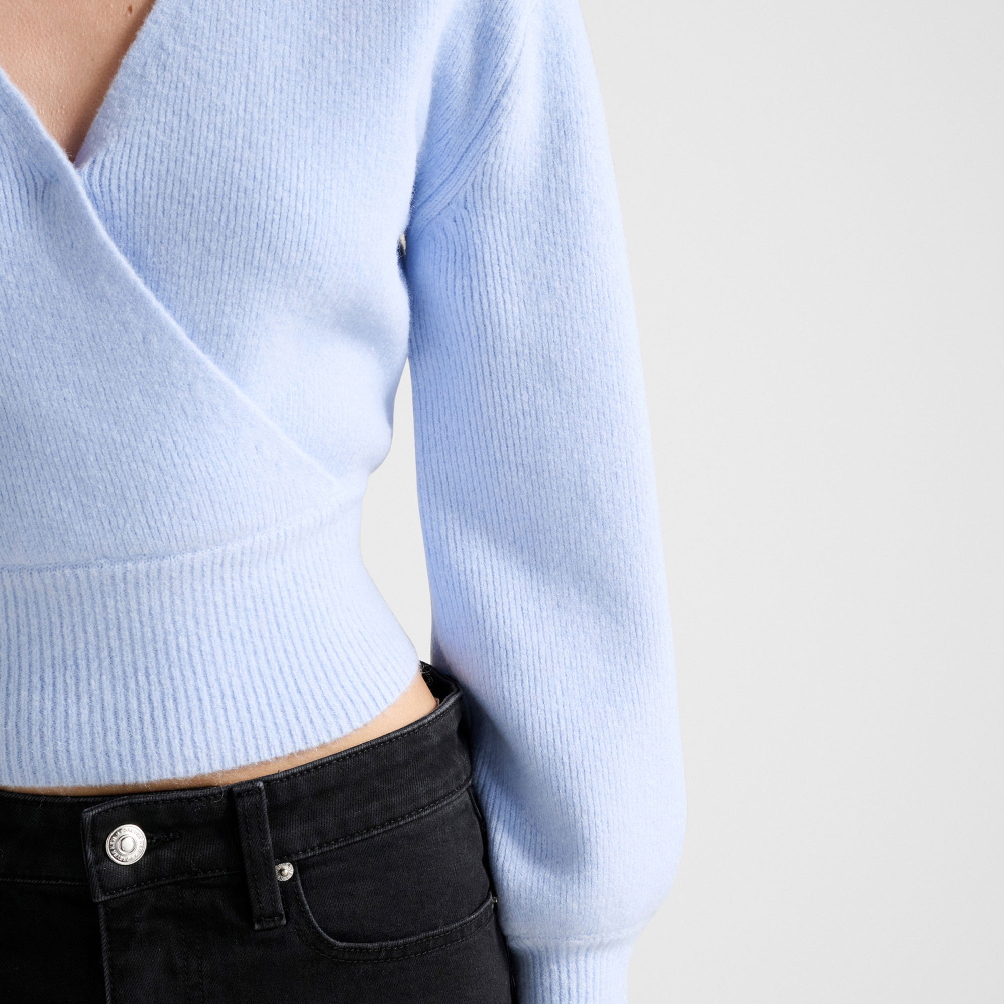 - Regular fit, deep V-neck with crossover front, relaxed sleeves with ribbed cuffs, thick ribbed hem, slip-on style