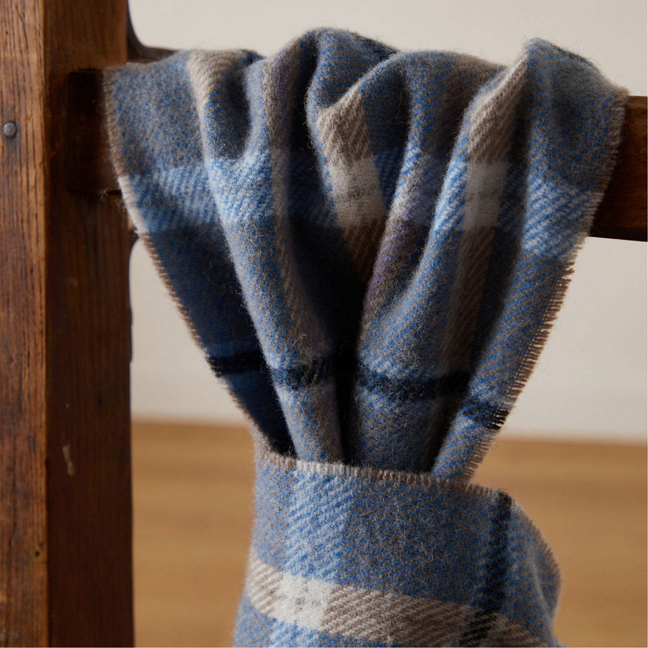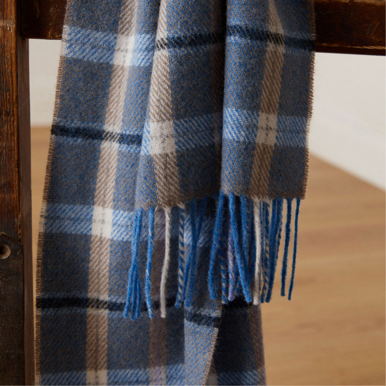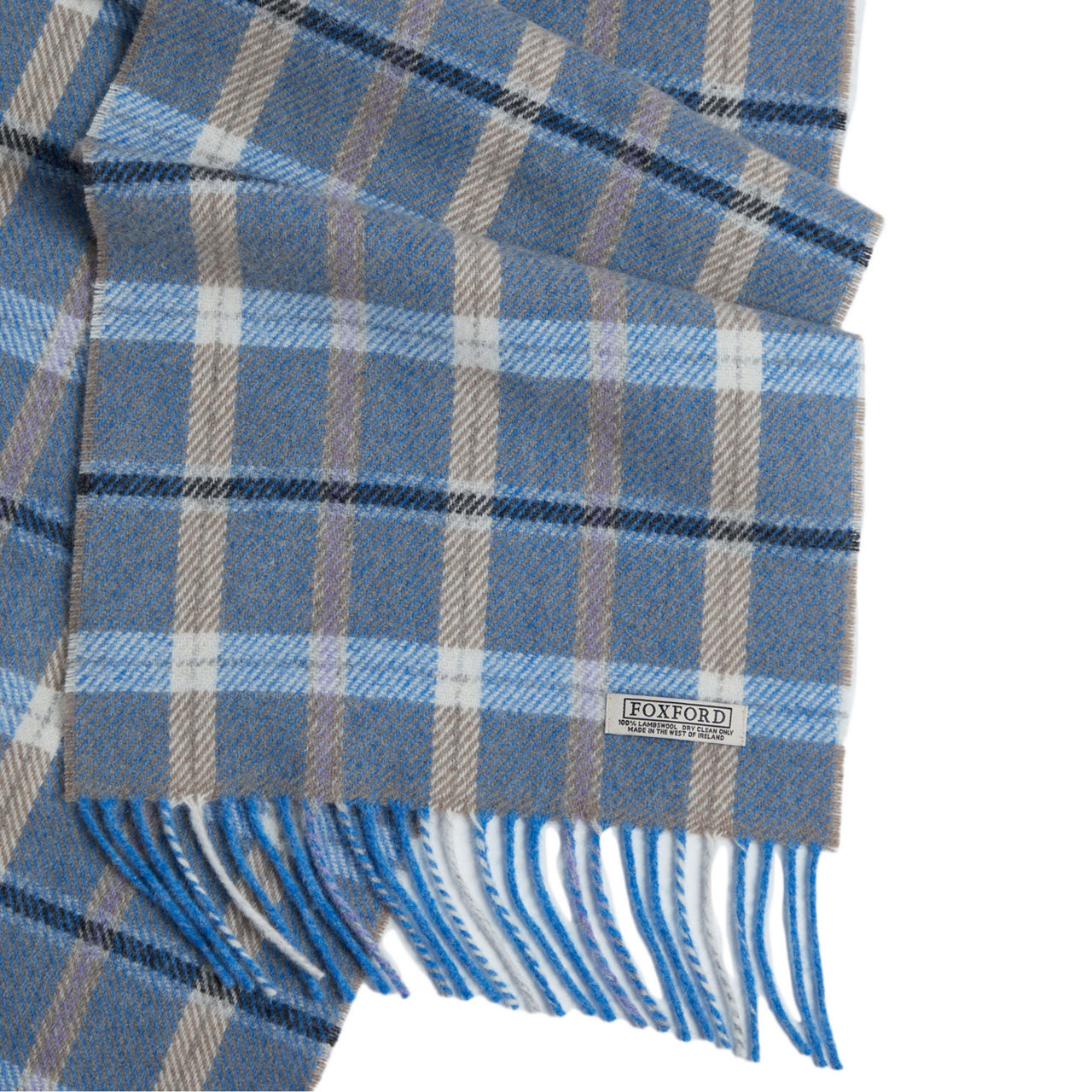 FOXFORD Online Exclusive Blue & Mink Check Lambswool Scarf