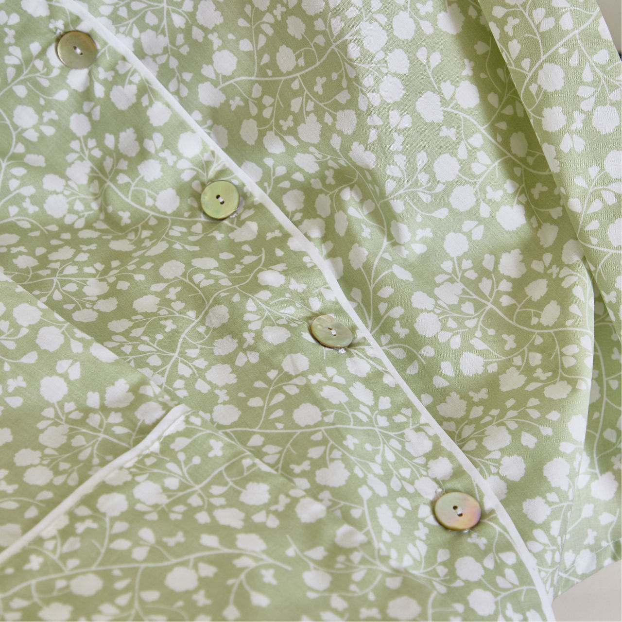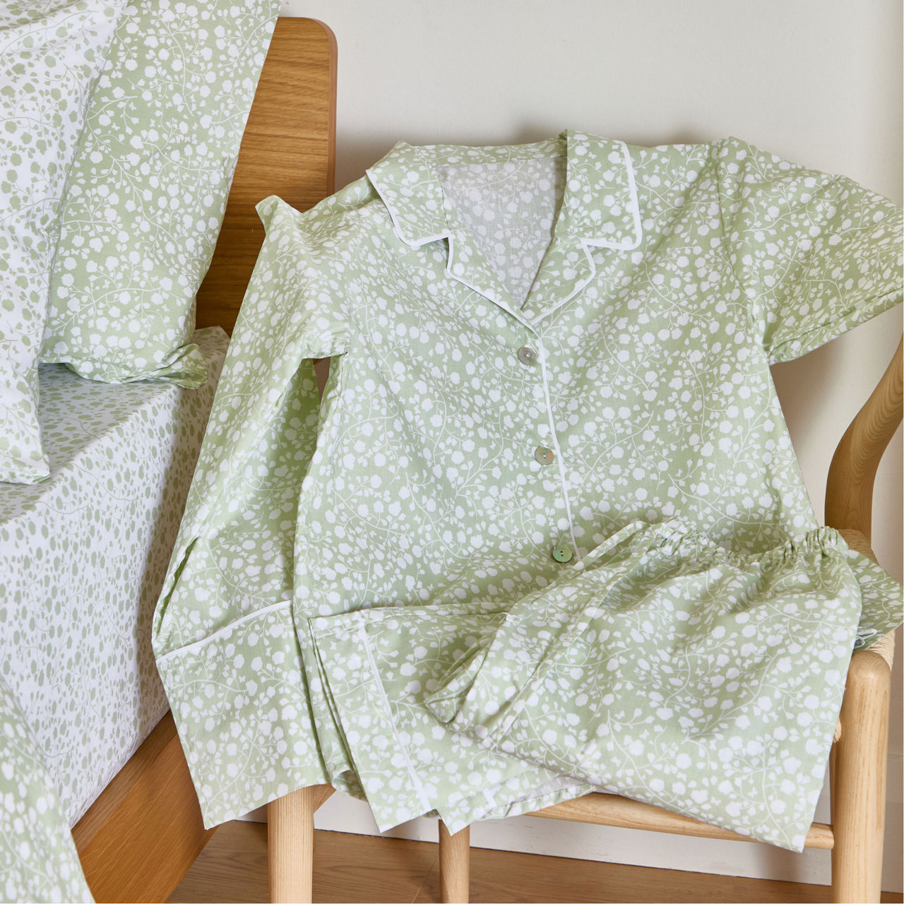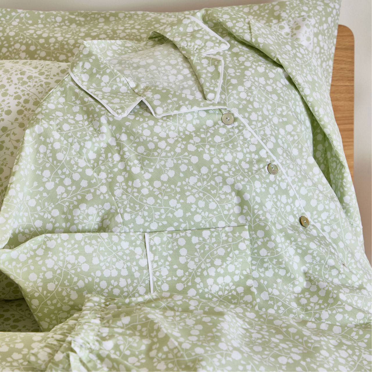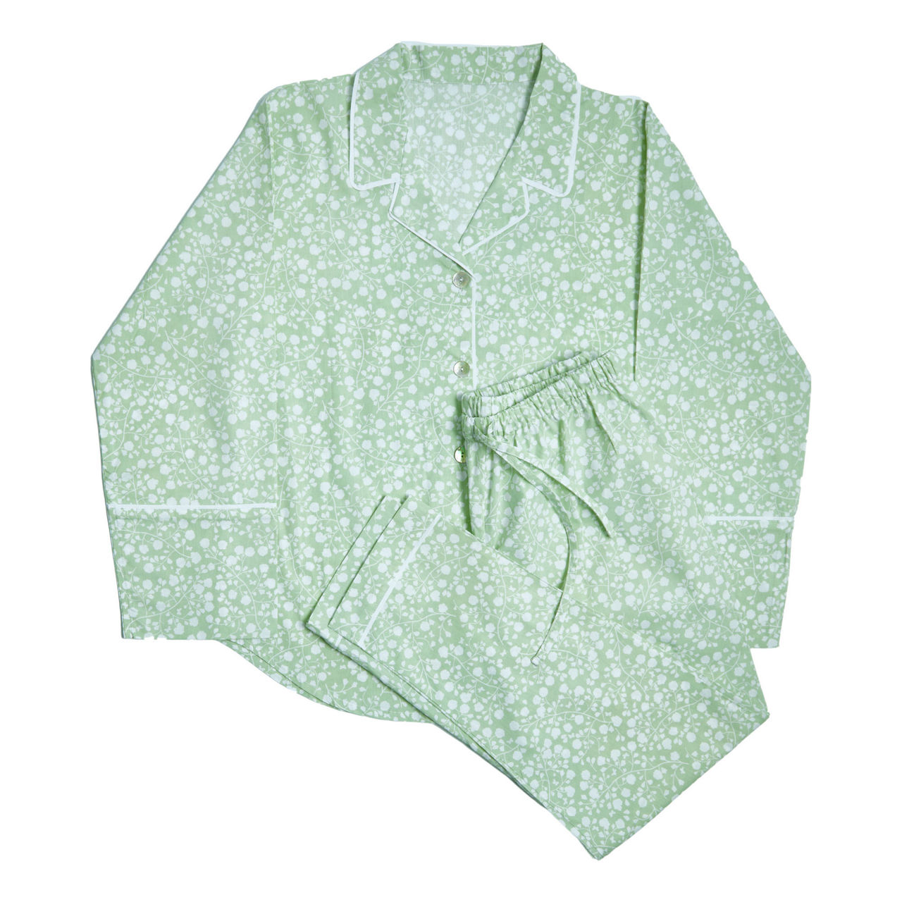 Experience ultimate comfort and timeless elegance with the Lucy Pyjamas from FOXFORD. Designed in Ireland, these sage green long-leg pyjamas feature crisp white piping, offering luxurious everyday wear. Made with soft, breathable fabric, they provide comfort for restful nights and relaxed mornings. Combining classic style with modern functionality, a must-have addition to your loungewear collection.