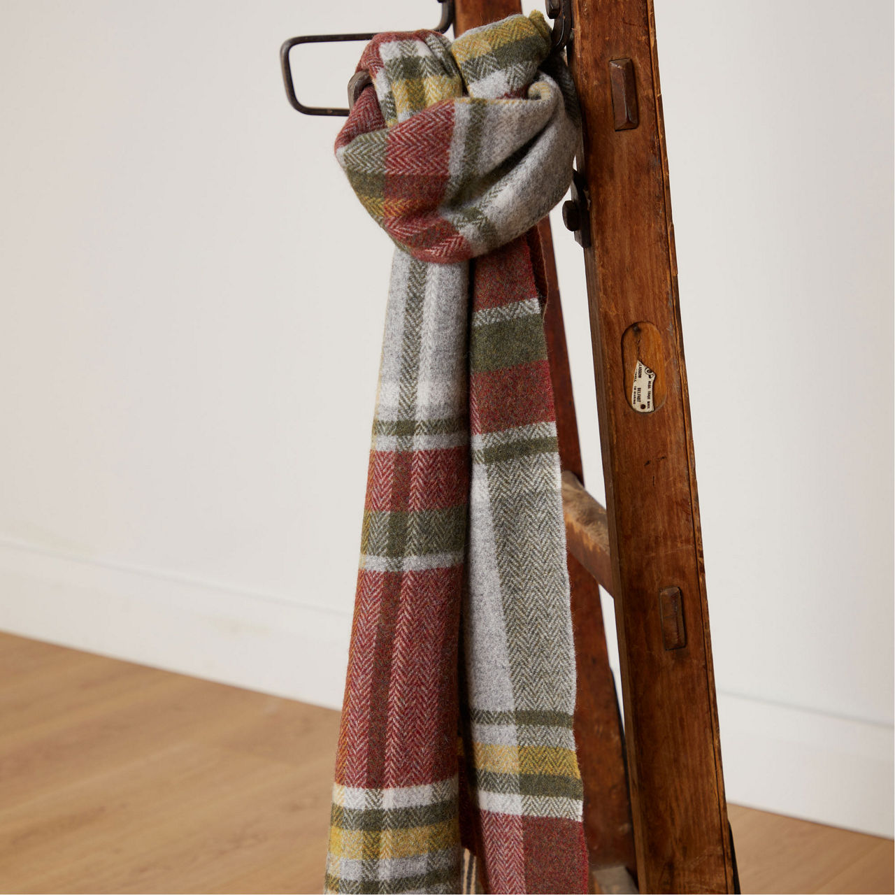 - Wrap-around style, classic tartan pattern, fringed edges, logo tag, soft finish