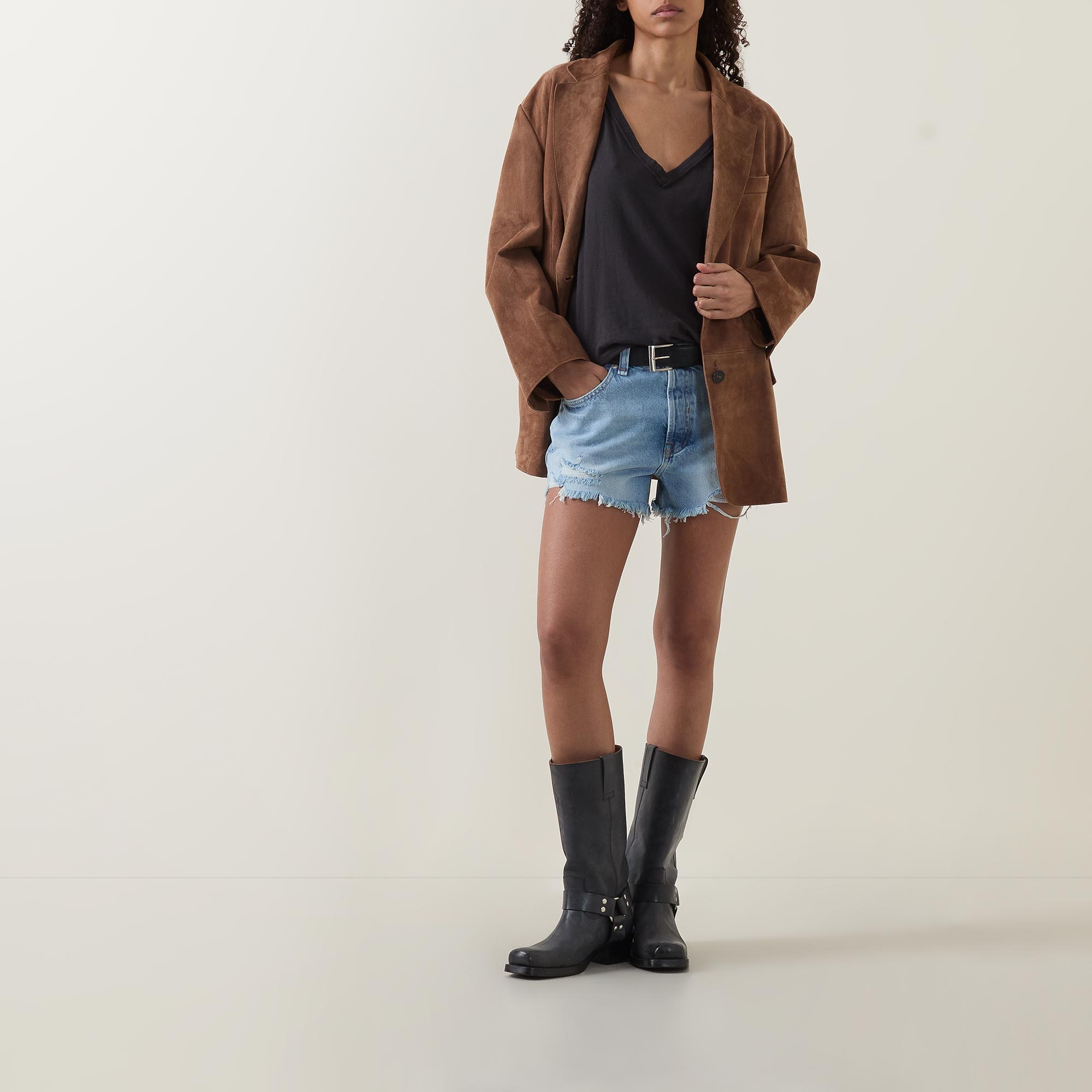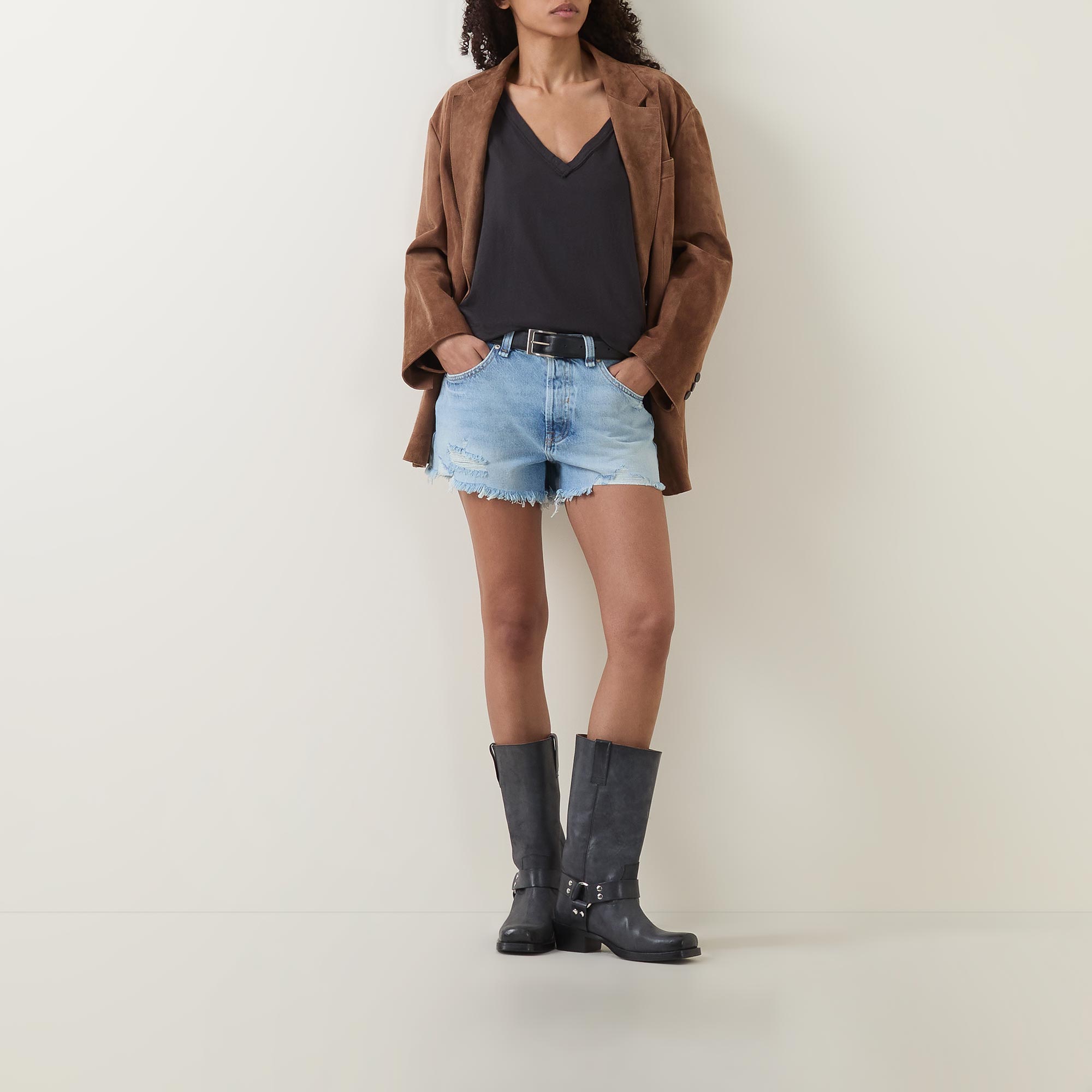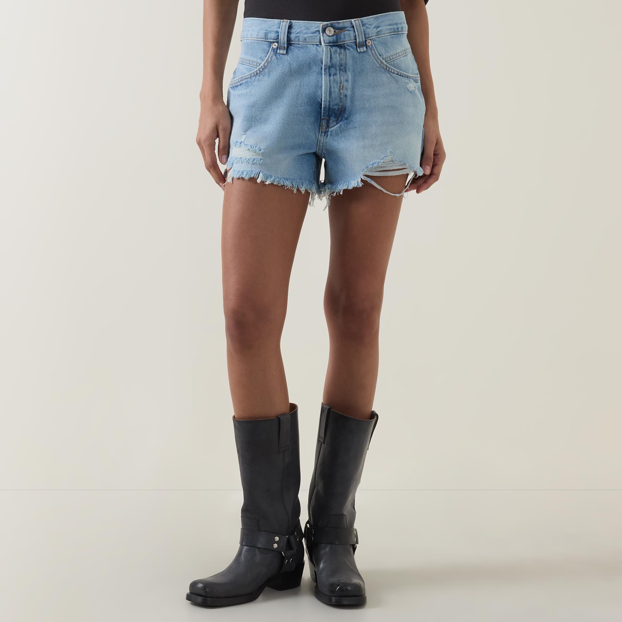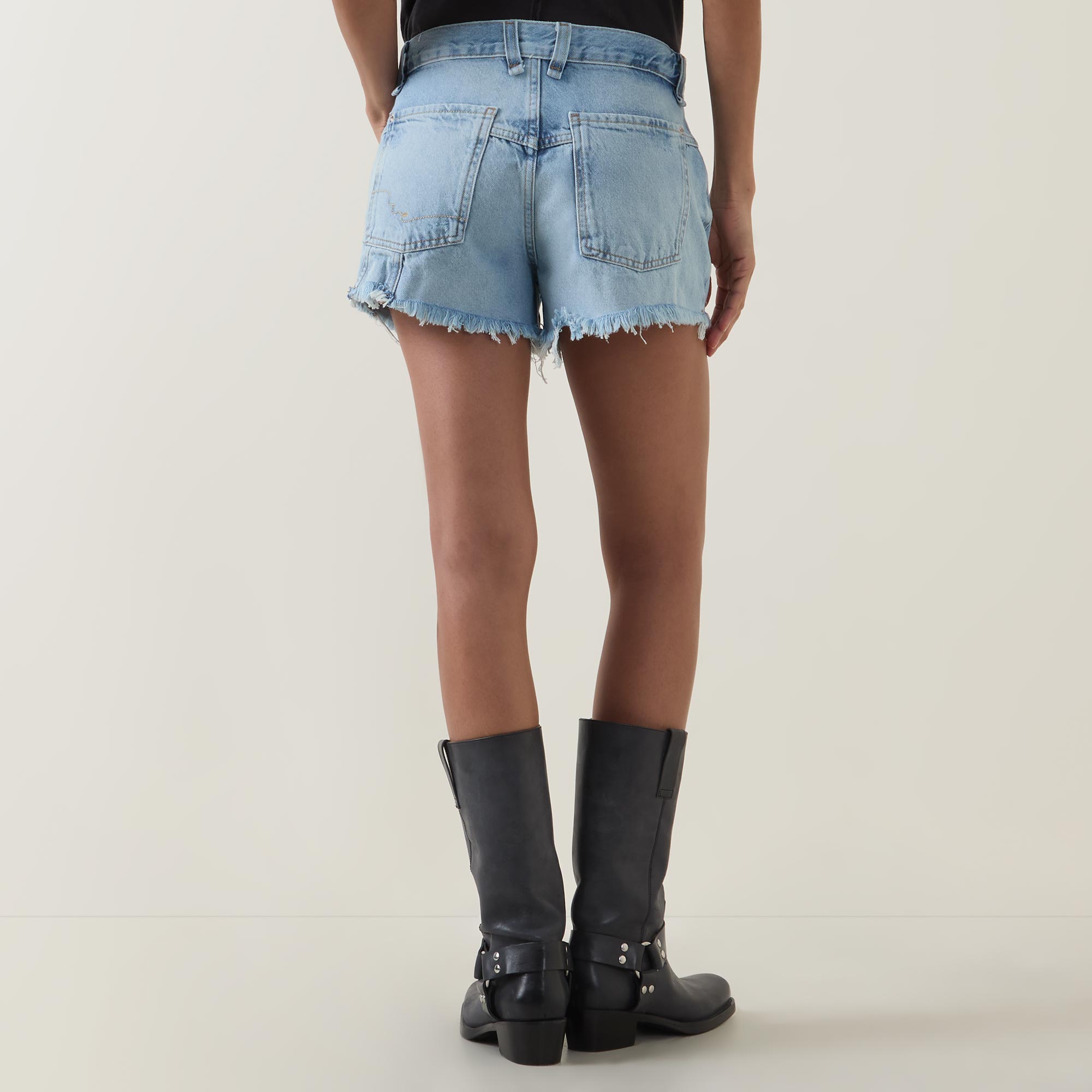 • Distressed hem, belt loops, concealed fastening, front and back pockets